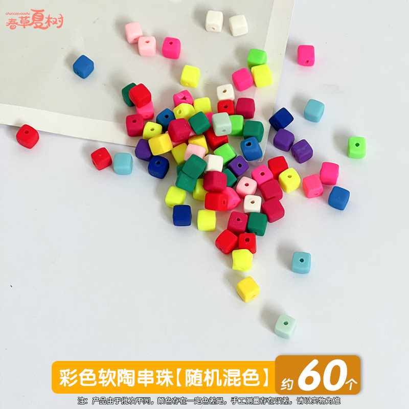 • 컬러풀한 폴리머 클레이 비즈 [무작위로 혼합된 약 60가지 색상] 끈 1개