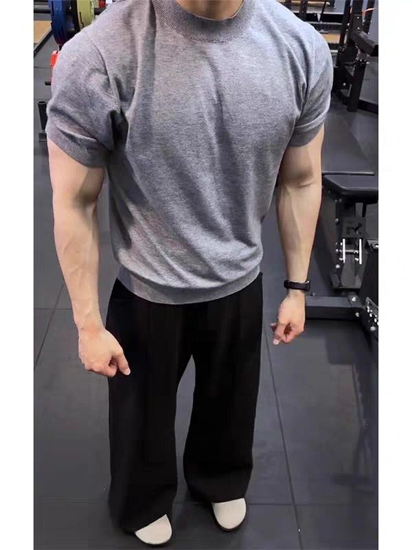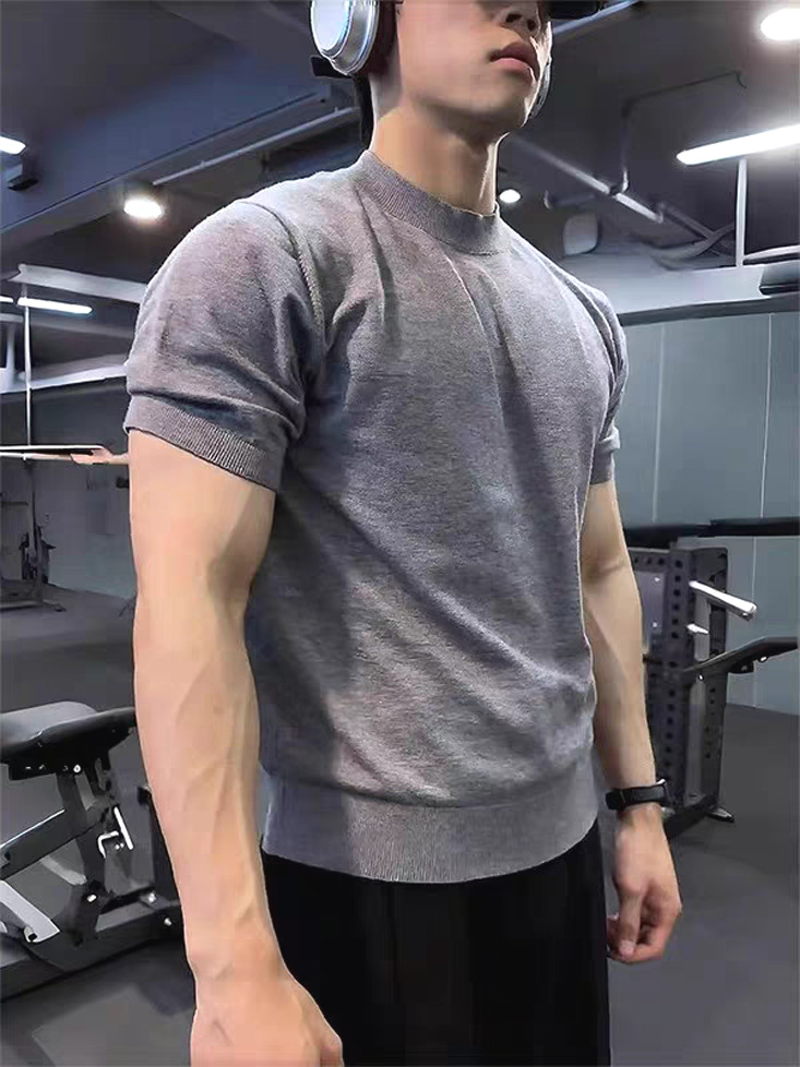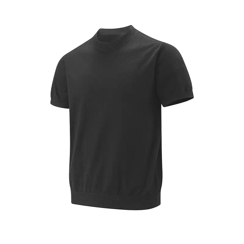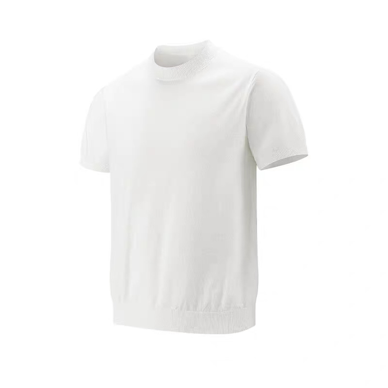 남성용 스몰 터틀넥 멀버리 실크 스웨터, 시원하고 통기성이 뛰어난 슬림핏 반팔 스웨트셔츠, 머서라이즈 코튼 아이스 실크 코어 스펀 티셔츠스토어 가기