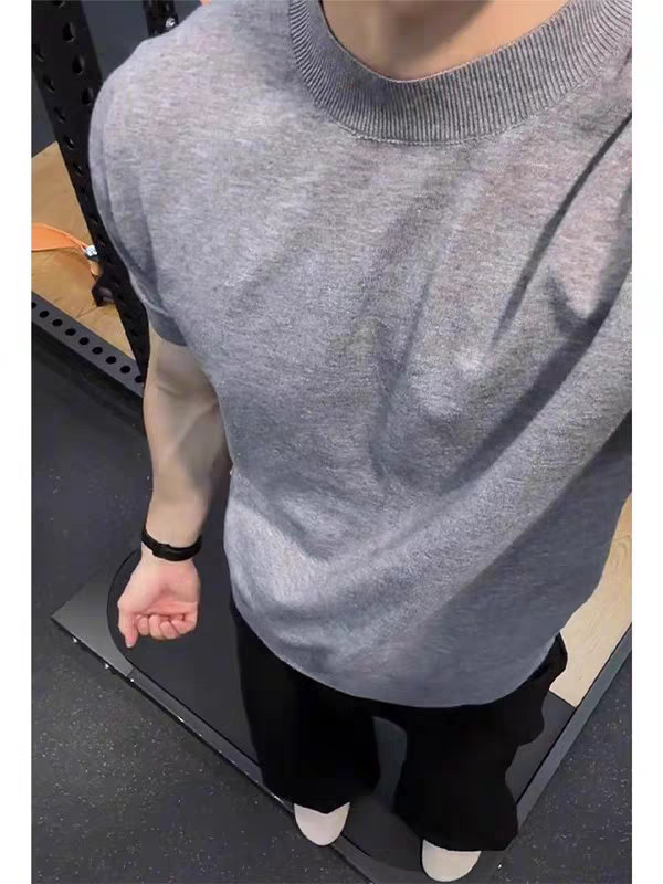• 울 혼방 쿨 실크 니트 티셔츠 다크 그레이