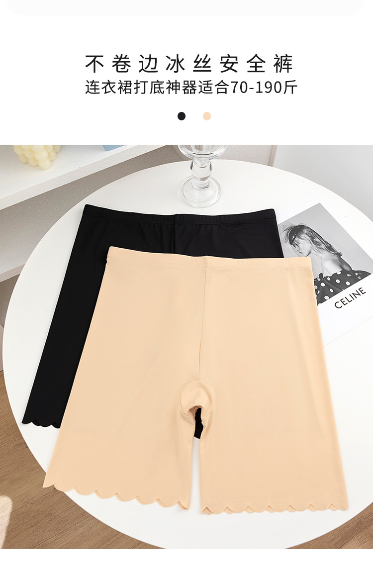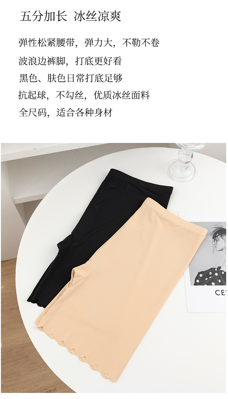 아이스 실크 뱃살 조절 안전팬츠, 신축성 있는 5부팬츠, 여름 노출방지 안전팬츠, 여성용 대형 심리스 레깅스