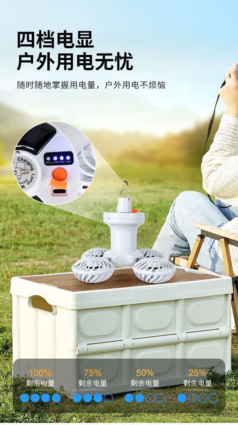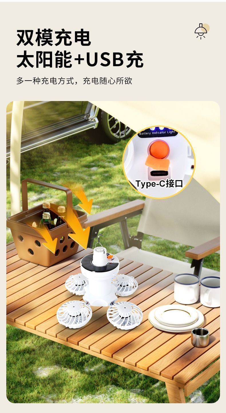 태양 접는 팬 축구 빛 충전식 거리 가로등 조명 팬 빛 야외 캠핑 텐트 교수형 빛