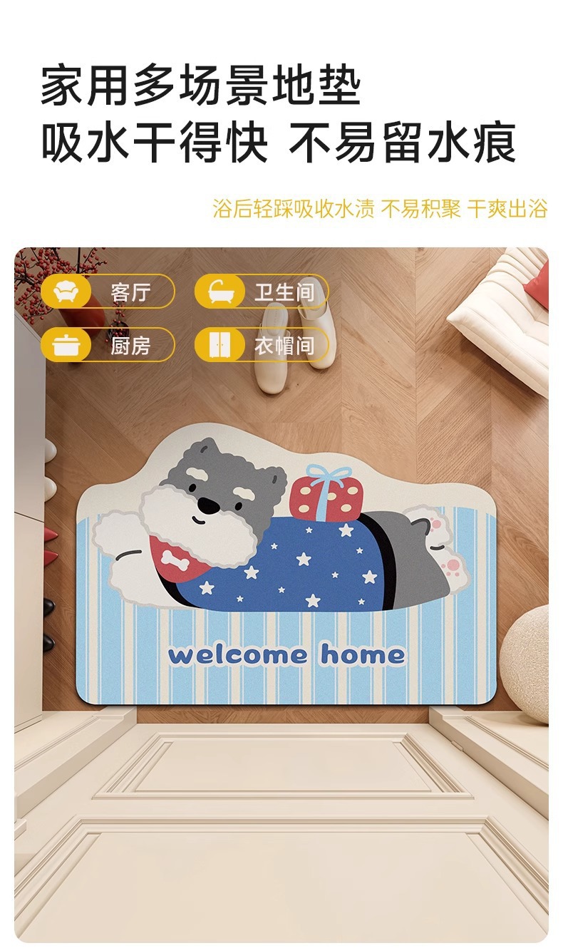 귀여운 강아지 규조토 진흙 욕실 바닥 매트, 욕실 화장실 흡수성 미끄럼 방지 발 매트, 입구 현관 내마모성 도어 매트스토어 가기