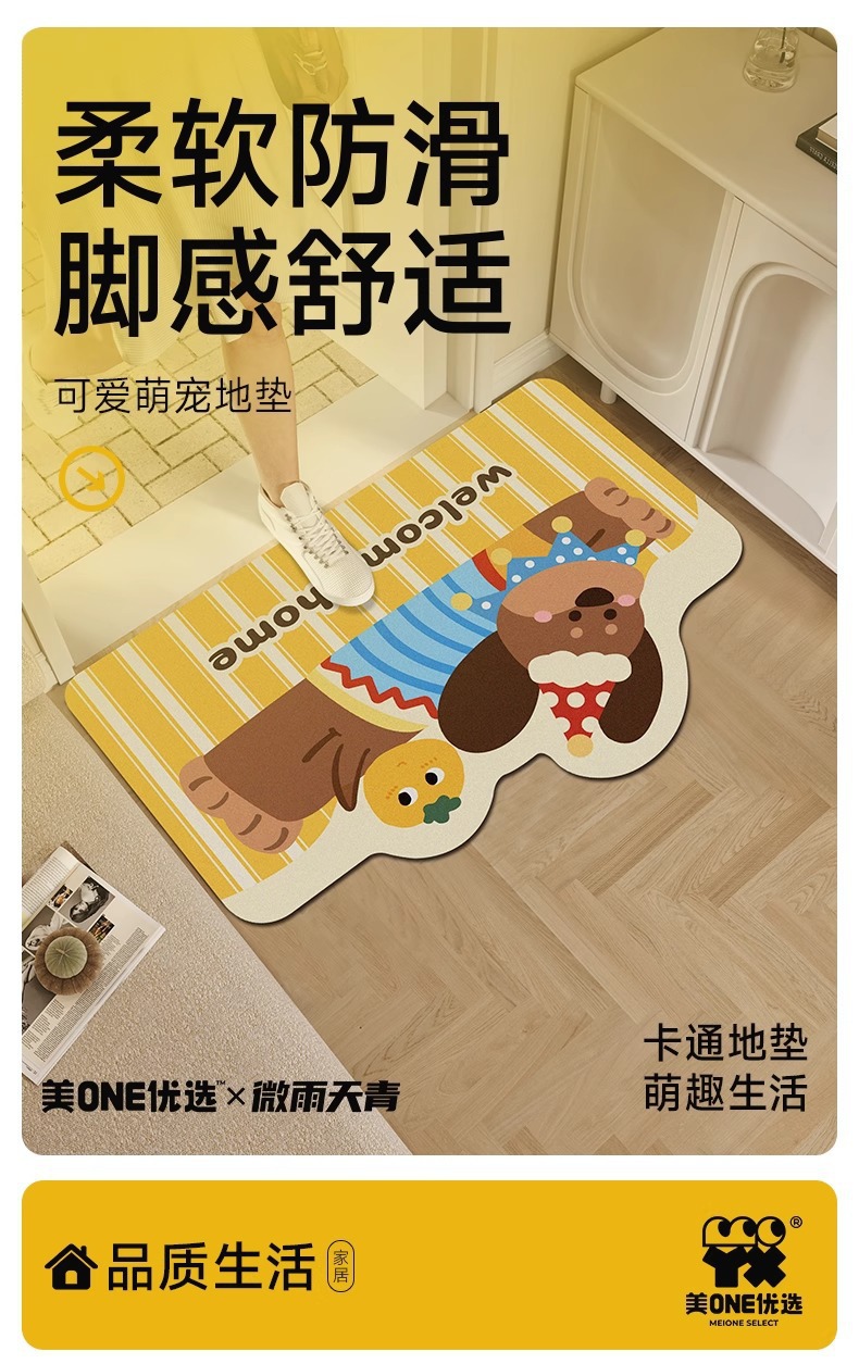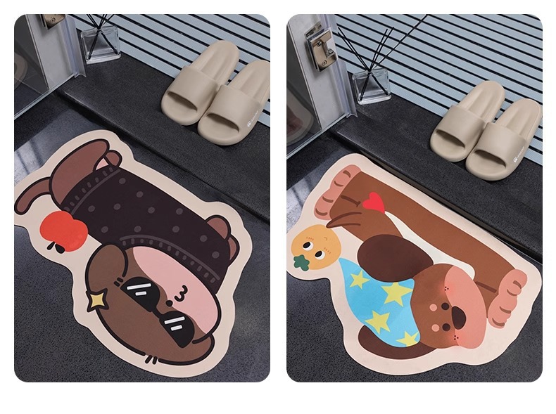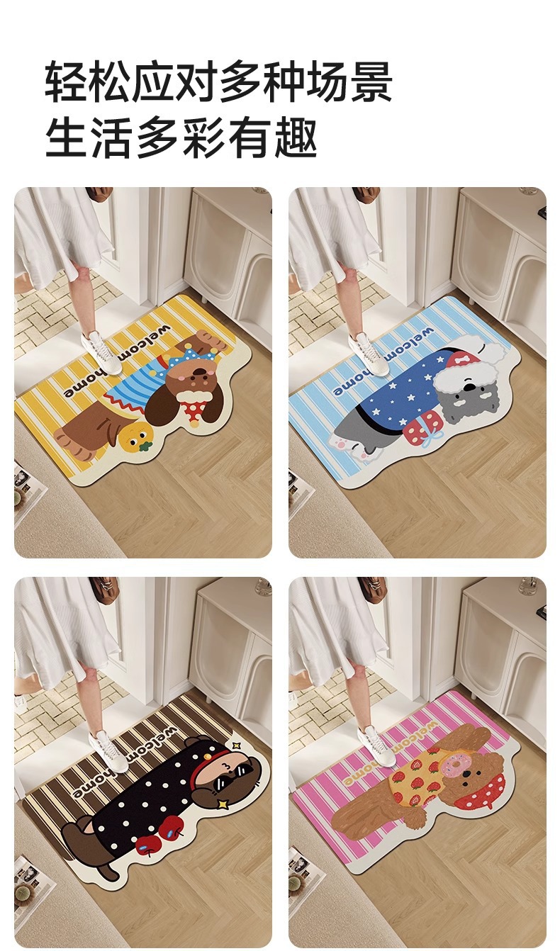 귀여운 강아지 규조토 진흙 욕실 바닥 매트, 욕실 화장실 흡수성 미끄럼 방지 발 매트, 입구 현관 내마모성 도어 매트