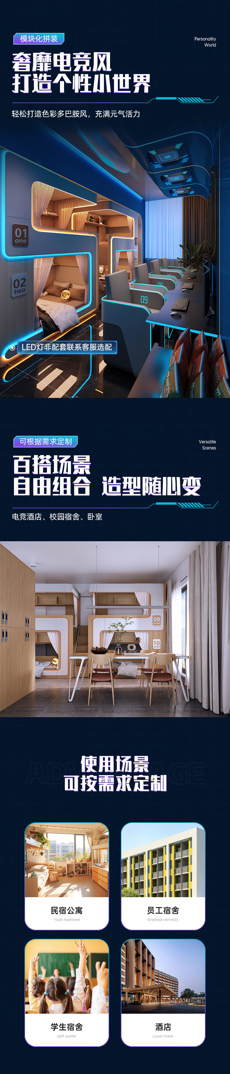 이층침대, 이층침대, e스포츠 호텔, 우주캡슐, 홈스테이, 학생기숙사, 서로 방해받지 않는 형제자매의 하이베드와 로우베드