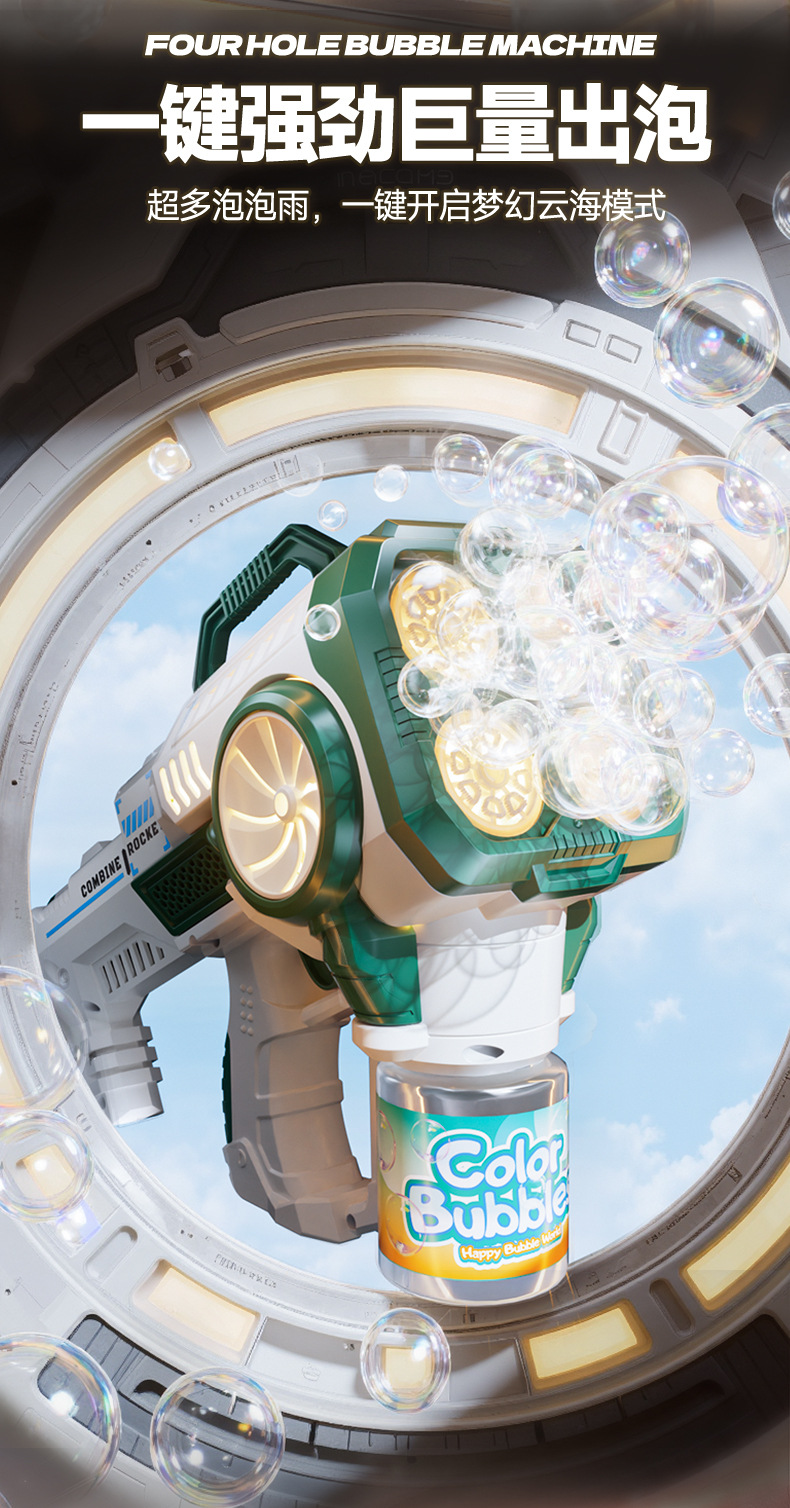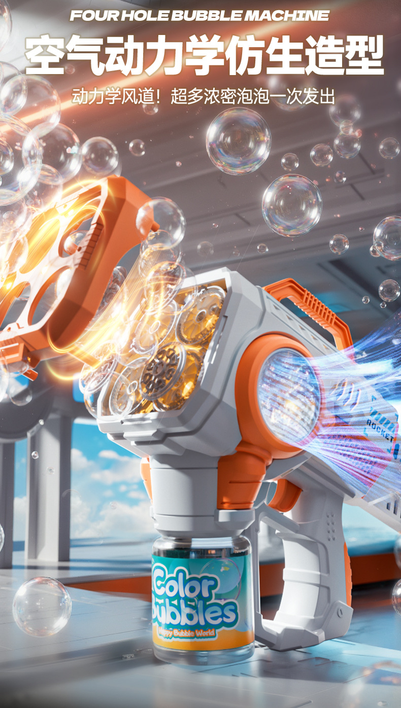 초대형 전기 버블 건 어린이 휴대용 버블 장난감 완전 자동 인터넷 연예인 개틀링 로켓 버블 머신