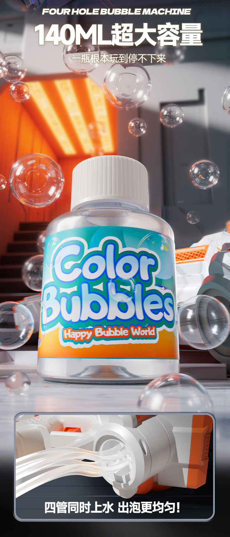 • 4기통 버블건 오렌지 [충전식 버전] + 버블 농축액 60개
