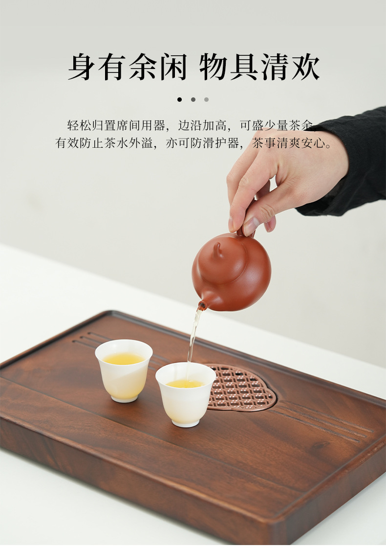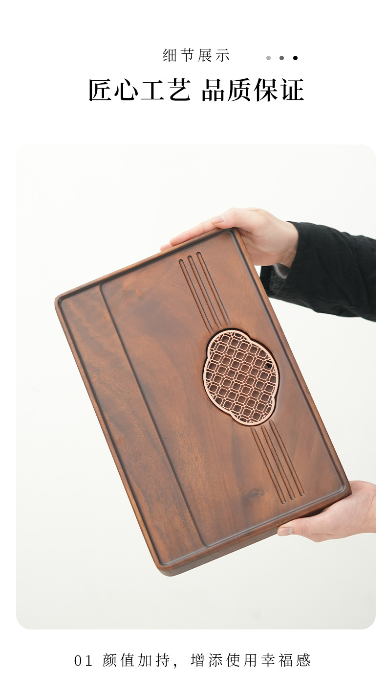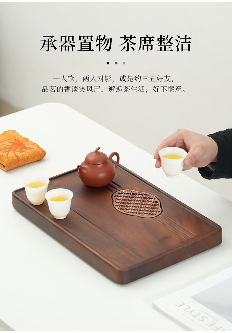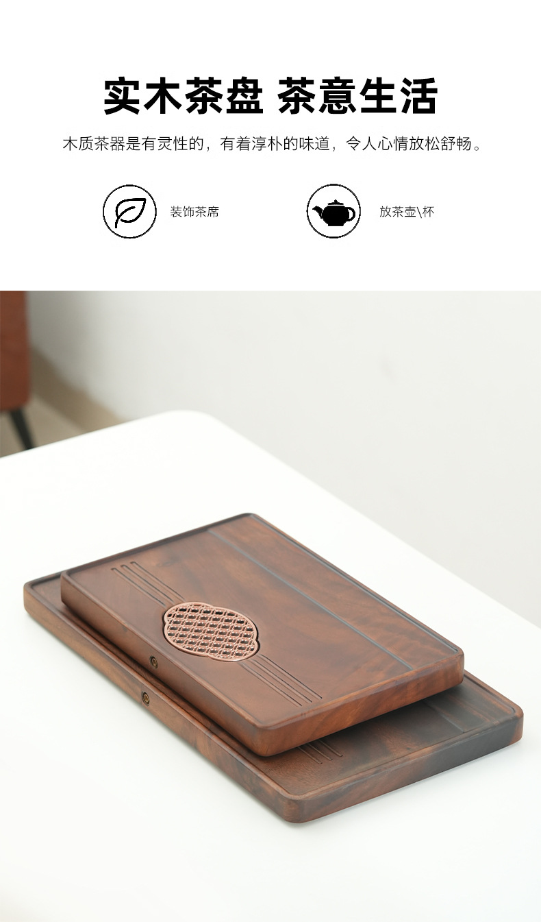 가벼운 고급 현대식 호두나무 차 트레이, 가정용 트레이, 소형 차 테이블, 원목 배수 트레이, 주전자 건조 및 배수대
