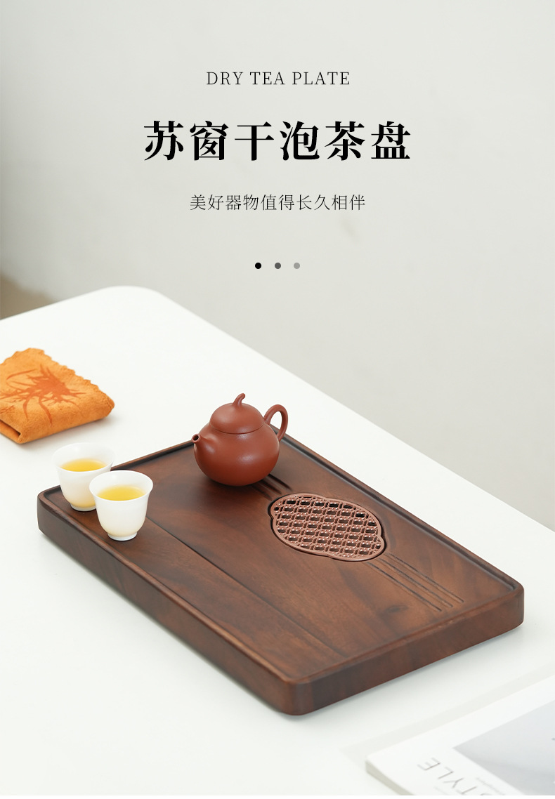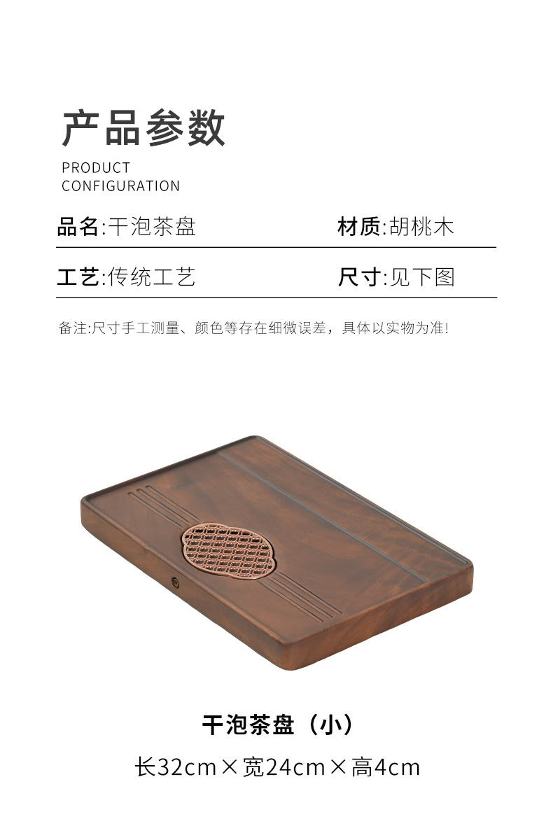 가벼운 고급 현대식 호두나무 차 트레이, 가정용 트레이, 소형 차 테이블, 원목 배수 트레이, 주전자 건조 및 배수대스토어 가기