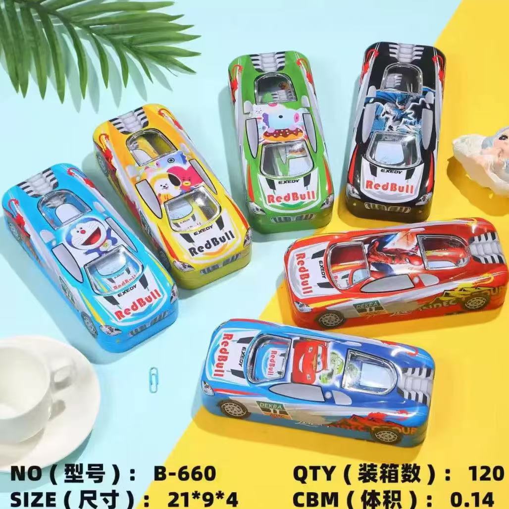 자동차 문구 상자 금속 어린이 유치원 철 상자 소년 철 펜 상자 만화 더블 레이어 연필 상자스토어 가기