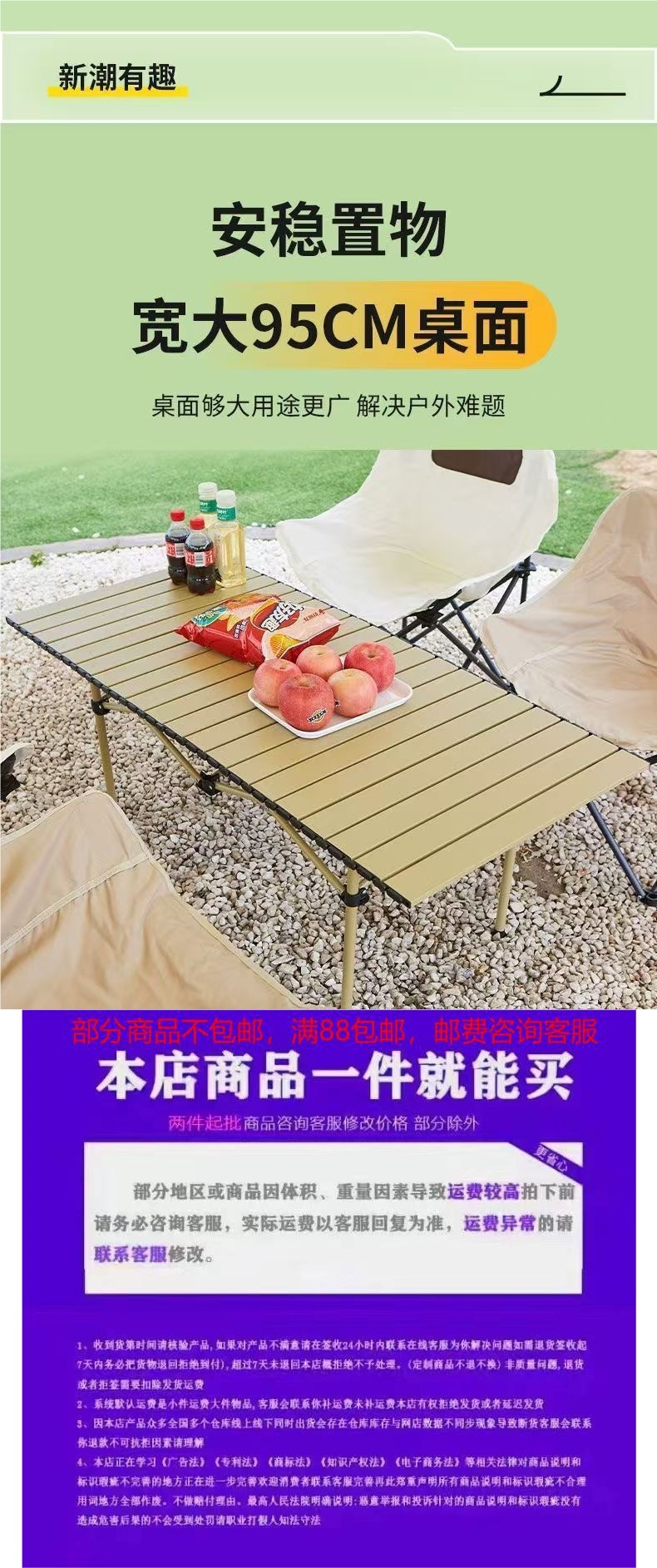 새로운 계란말이 접이식 편리한 테이블 야외 자율주행 바베큐 캠핑 피크닉 테이블 가볍고 내구성이 뛰어난 금속 사각형 테이블 없음스토어 가기