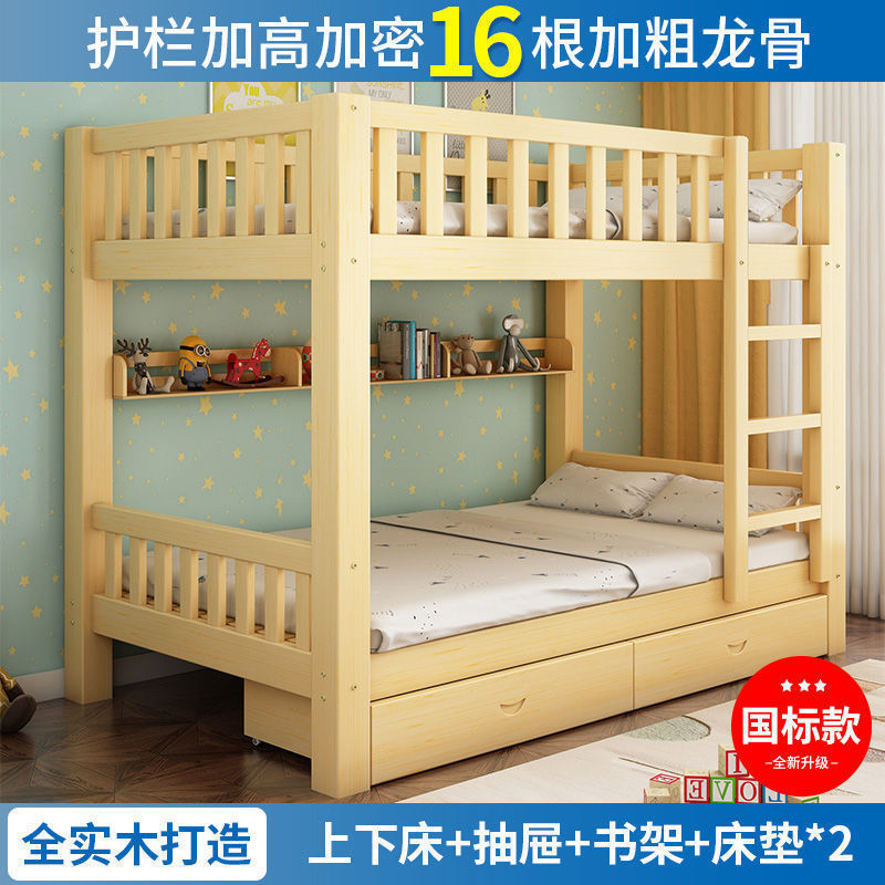 모든 원목 국가 표준 이층 침대, 소형 가정용 이층 침대, 높낮이가 다른 성인 및 어린이 이층 침대, 어린이 침대, 나무 침대스토어 가기