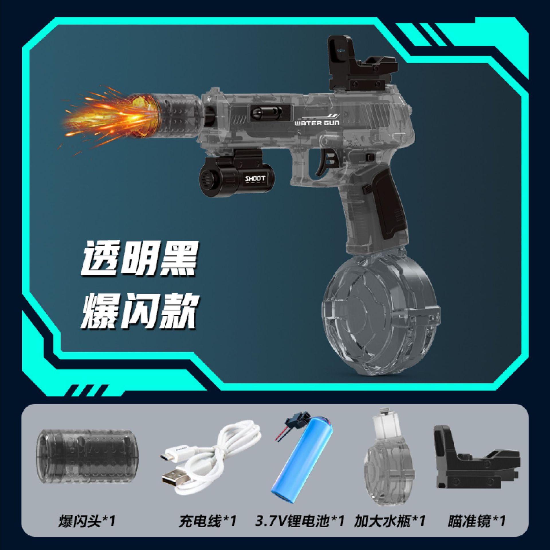 • 폭발형 모델 [투명 블랙] 전기 버스트 물총