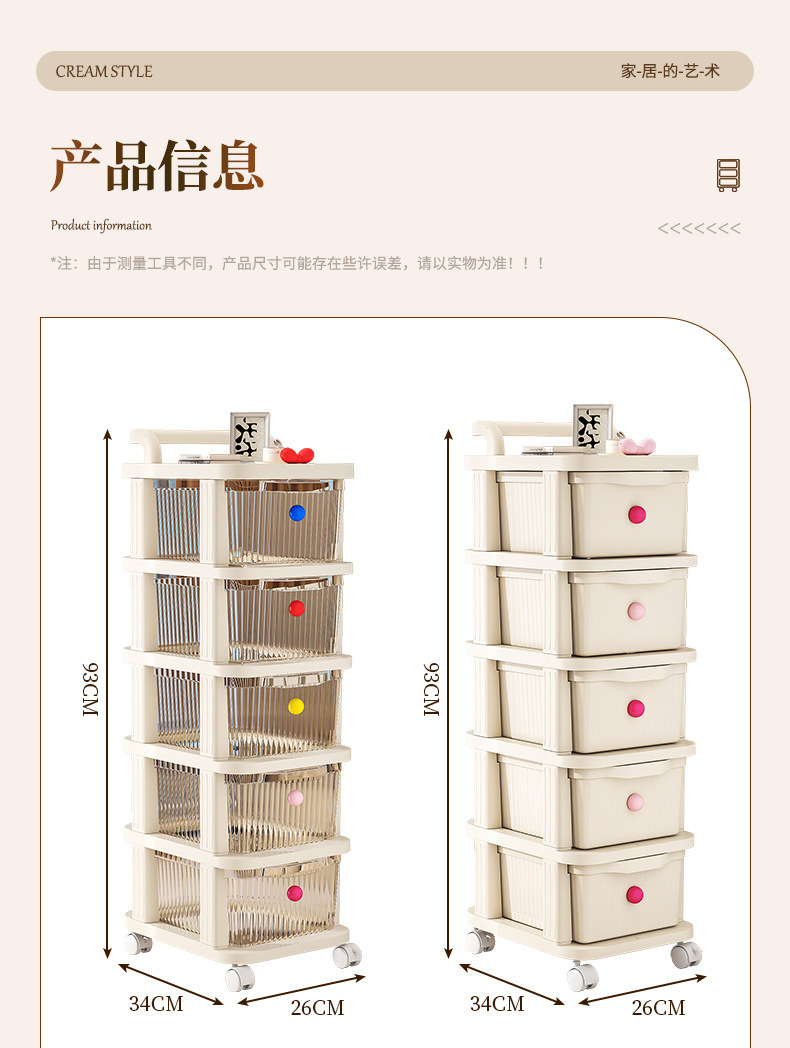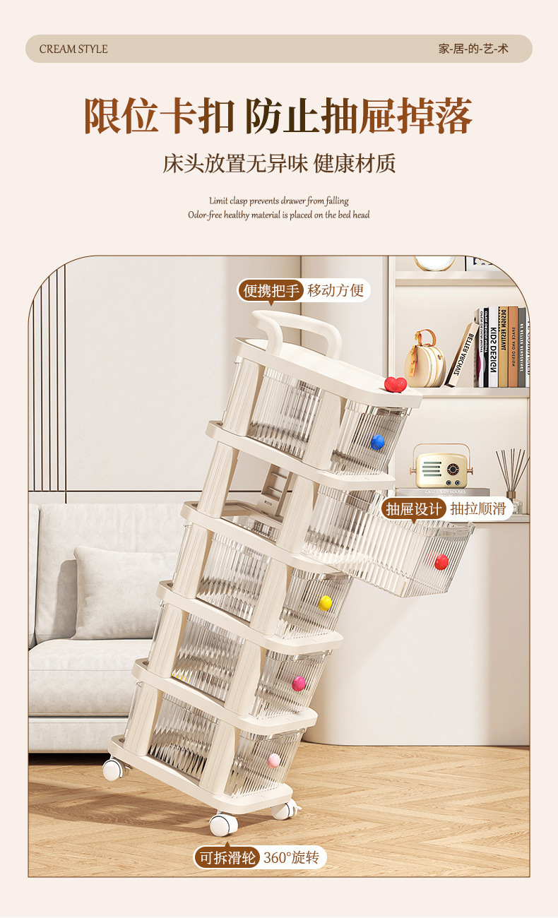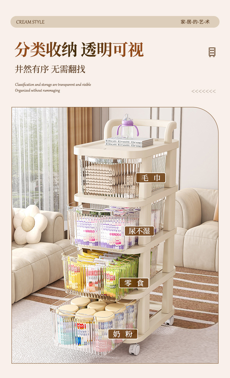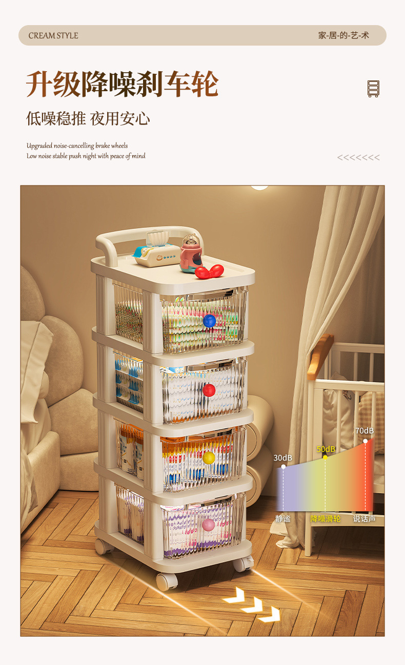 트롤리 스낵 보관함 크림 스타일 바닥에서 천장까지 이동식 아기 장난감 보관함 아기 용품 보관 캐비닛