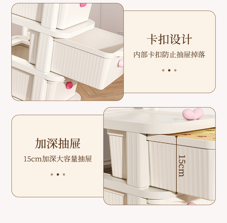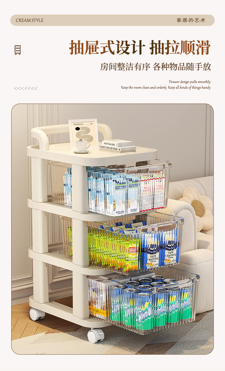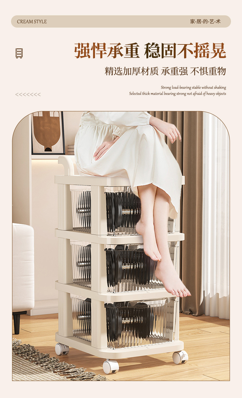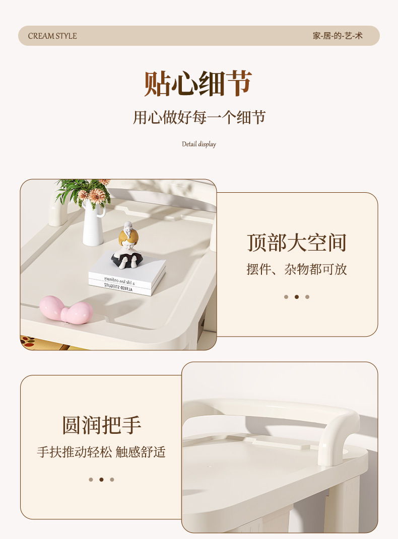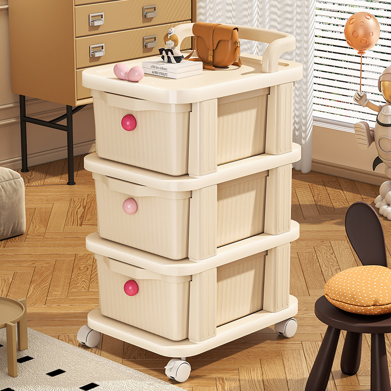 트롤리 스낵 보관함 크림 스타일 바닥에서 천장까지 이동식 아기 장난감 보관함 아기 용품 보관 캐비닛