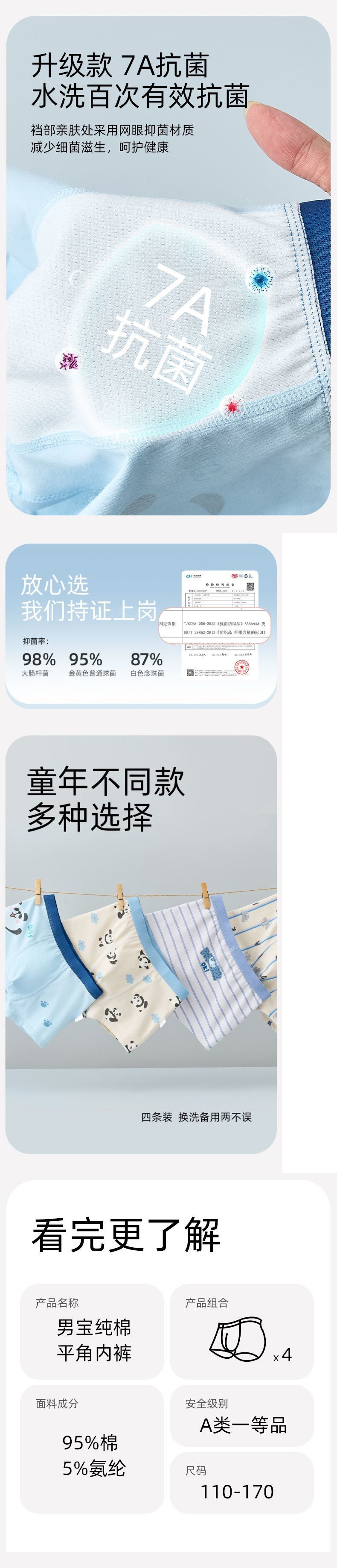 소년 클래스 A 순면 속옷, 아동용 사각 팬티, 소년용 베이비 면 사각 팬티, 중대형 아동용 속옷스토어 가기