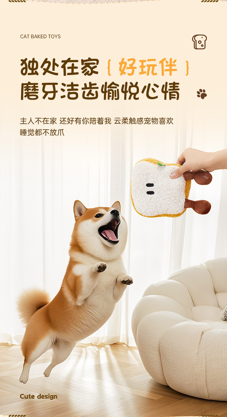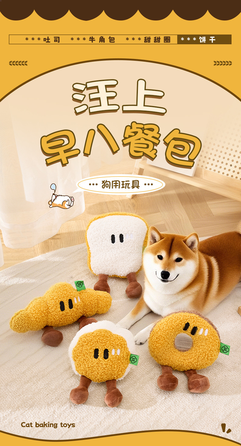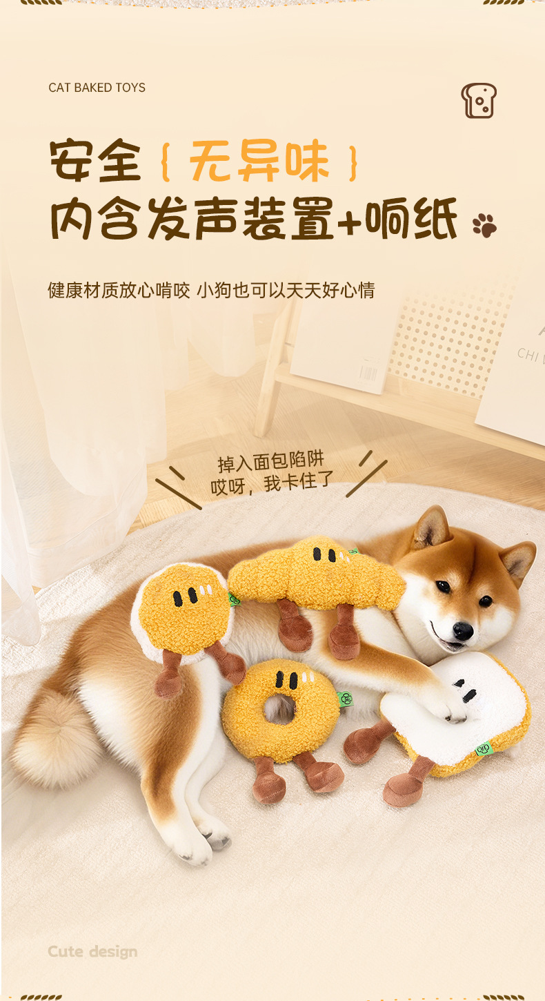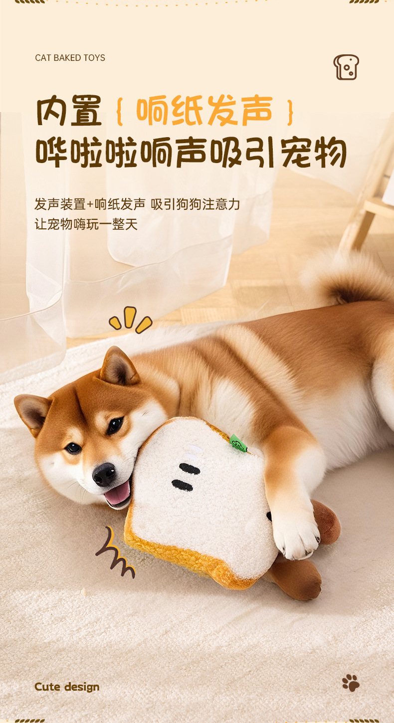 아침 식사 빵 시리즈 개 장난감 자기 자극 및 지루함 소리 장난감 소리 나는 종이 빵 고양이 장난감 개 장난감 어금니스토어 가기