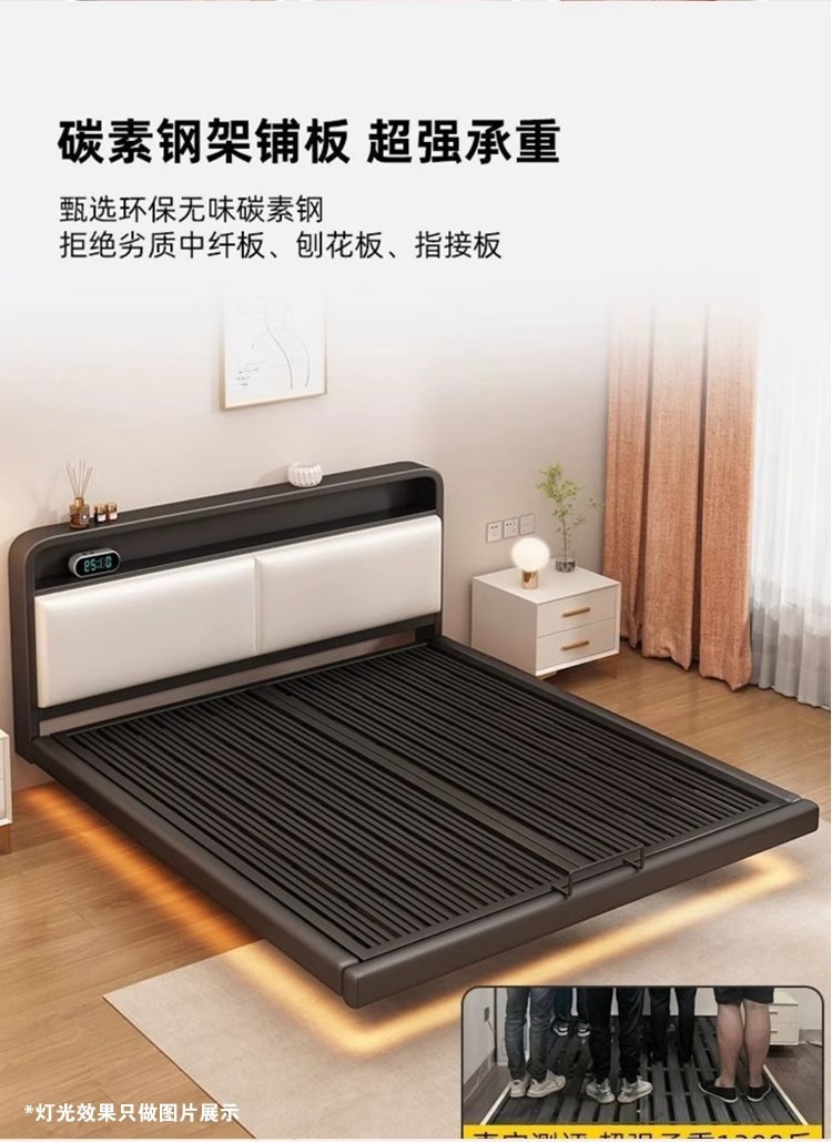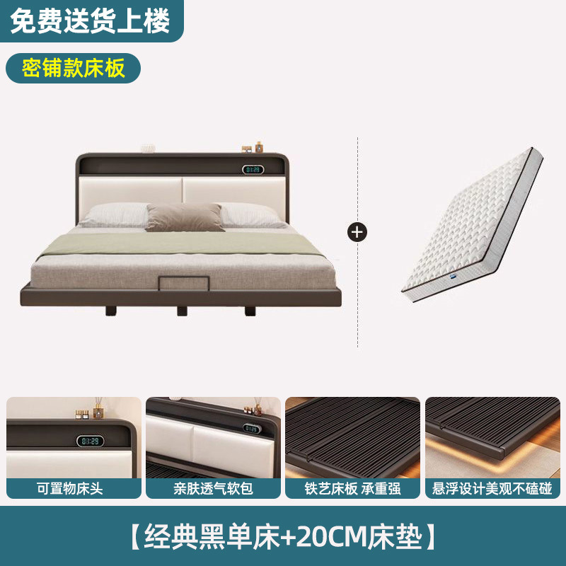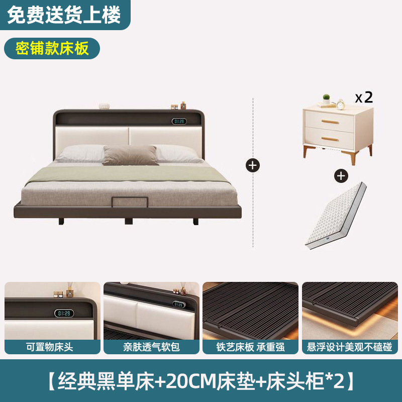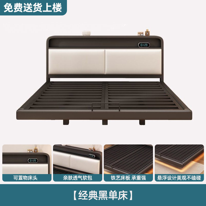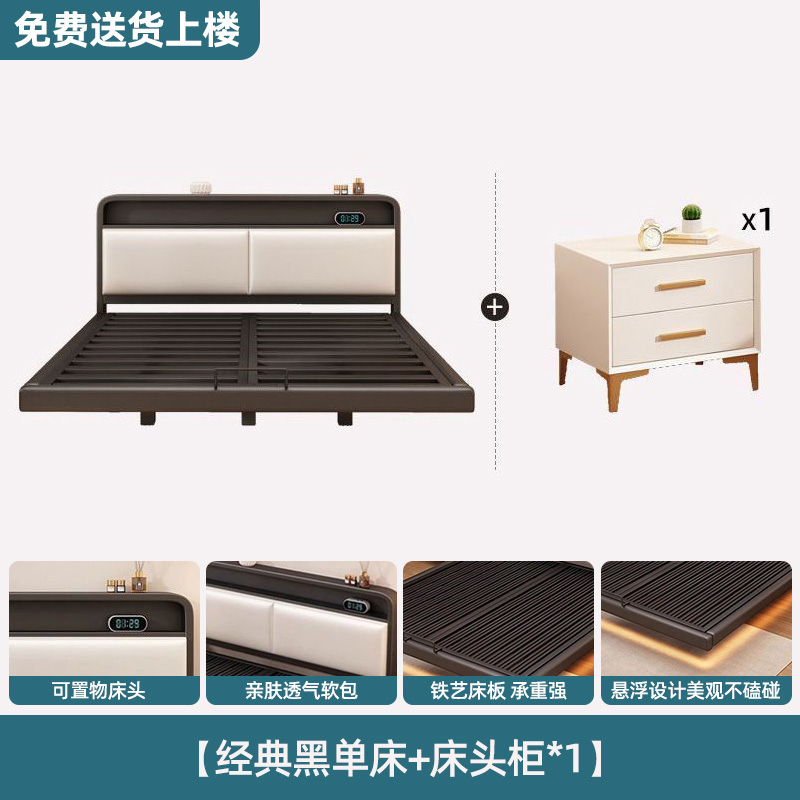 • 클래식한 검정색 행 프레임(라이트 스트립 및 미끄럼 방지 지지대 포함)(침대 옆에 물건 보관 가능)