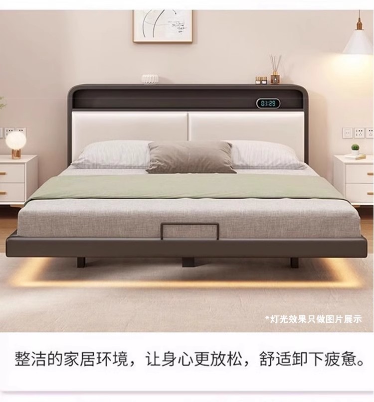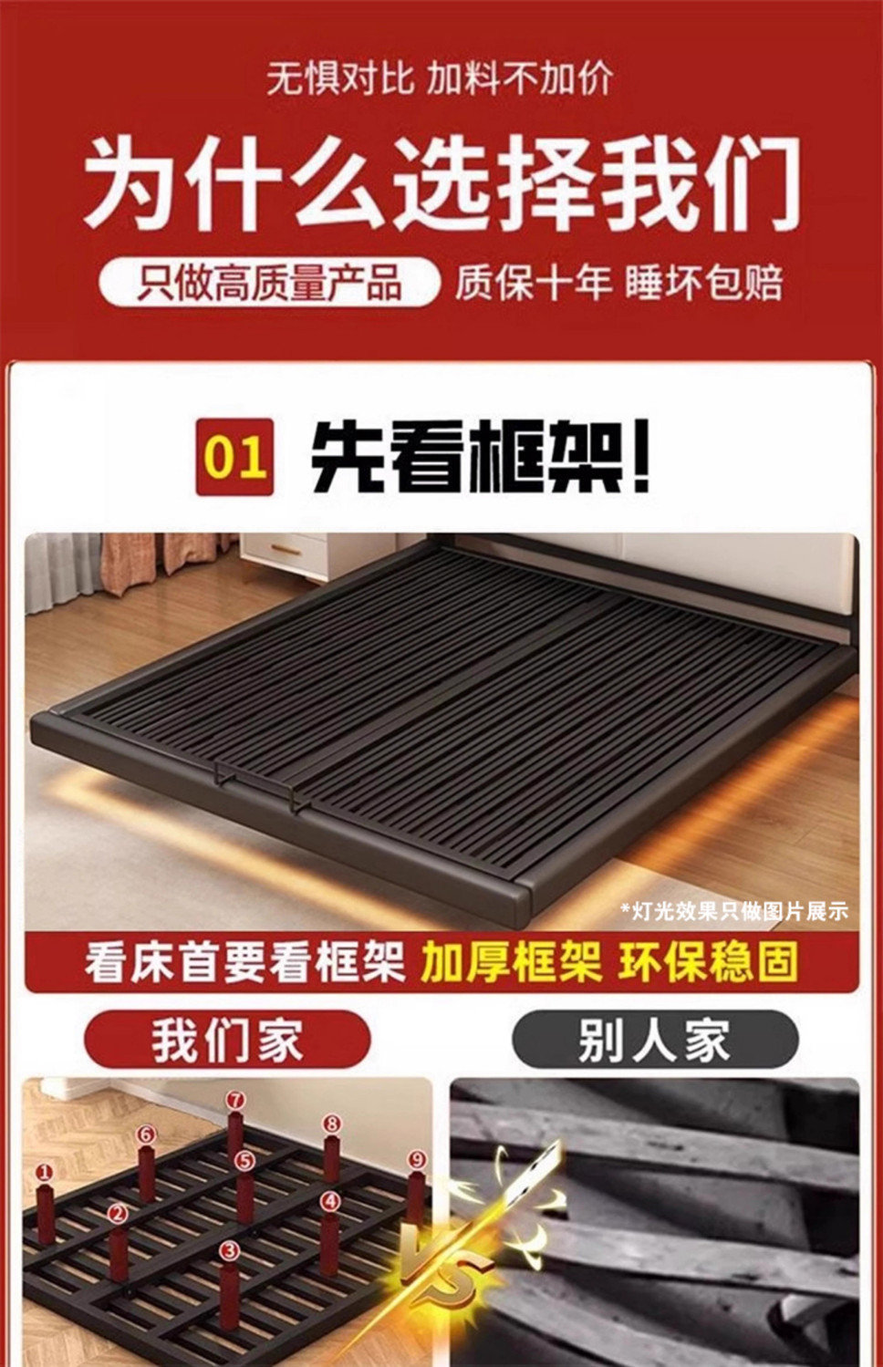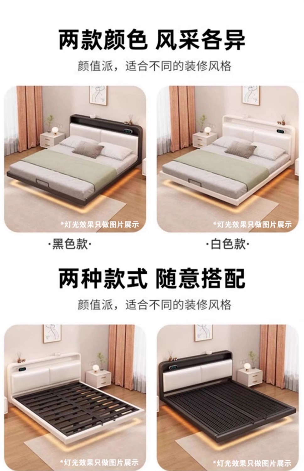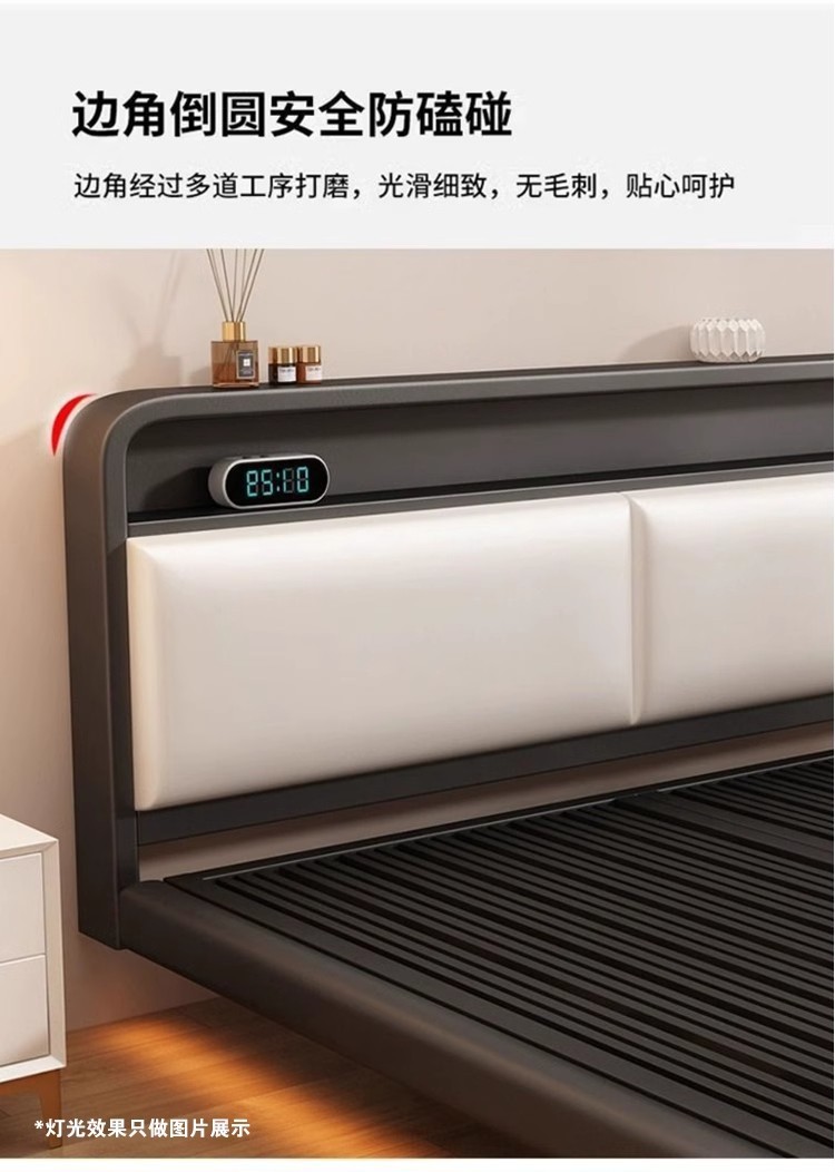 • 클래식한 검정색 행 프레임(라이트 스트립 및 미끄럼 방지 지지대 포함)(침대 옆에 물건 보관 가능)