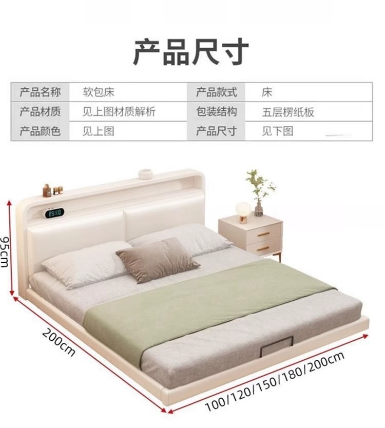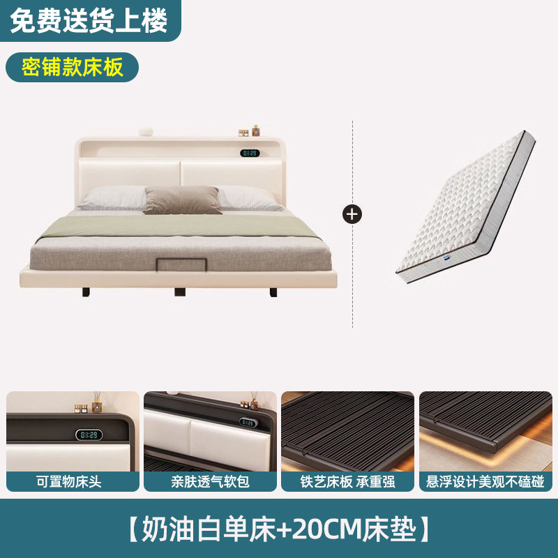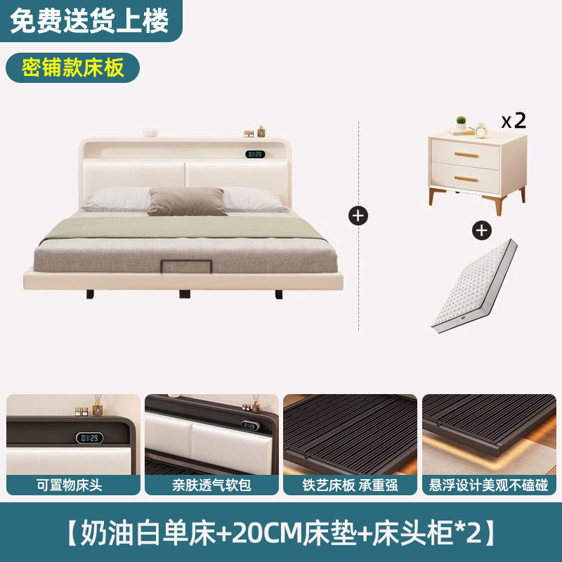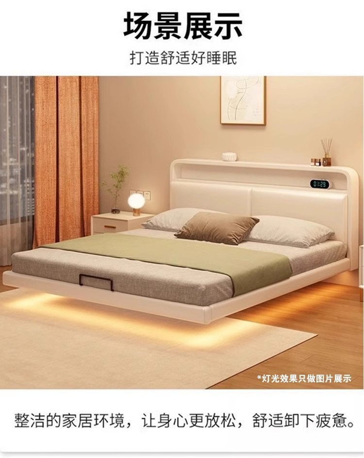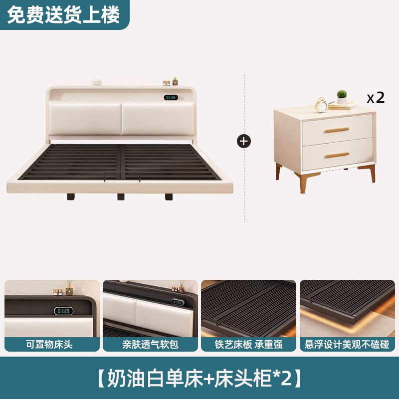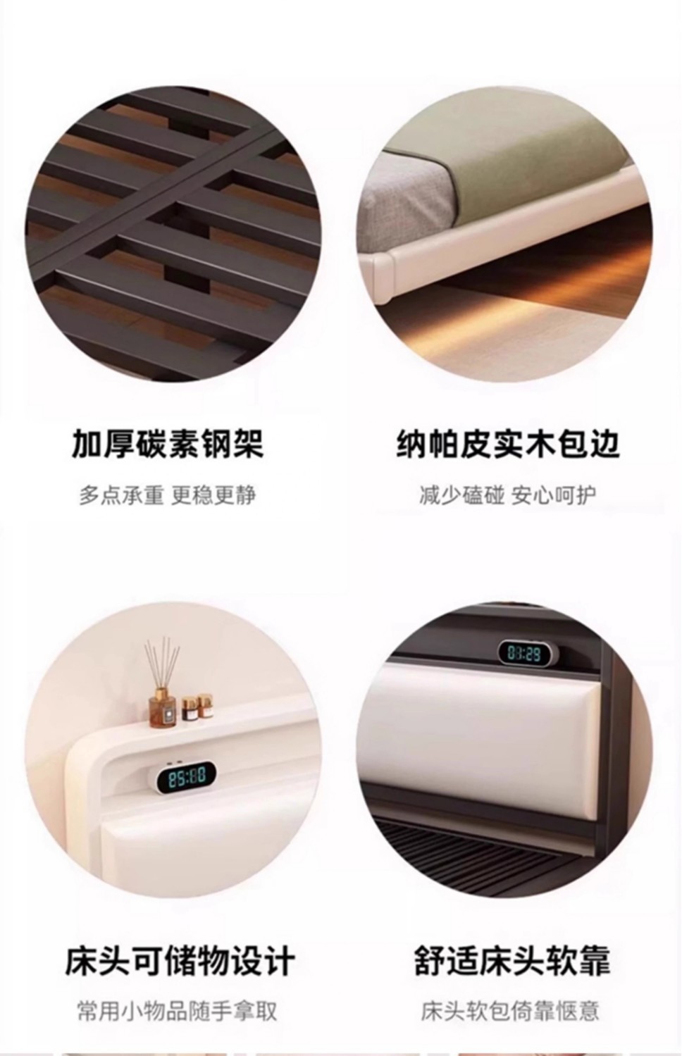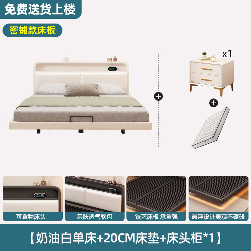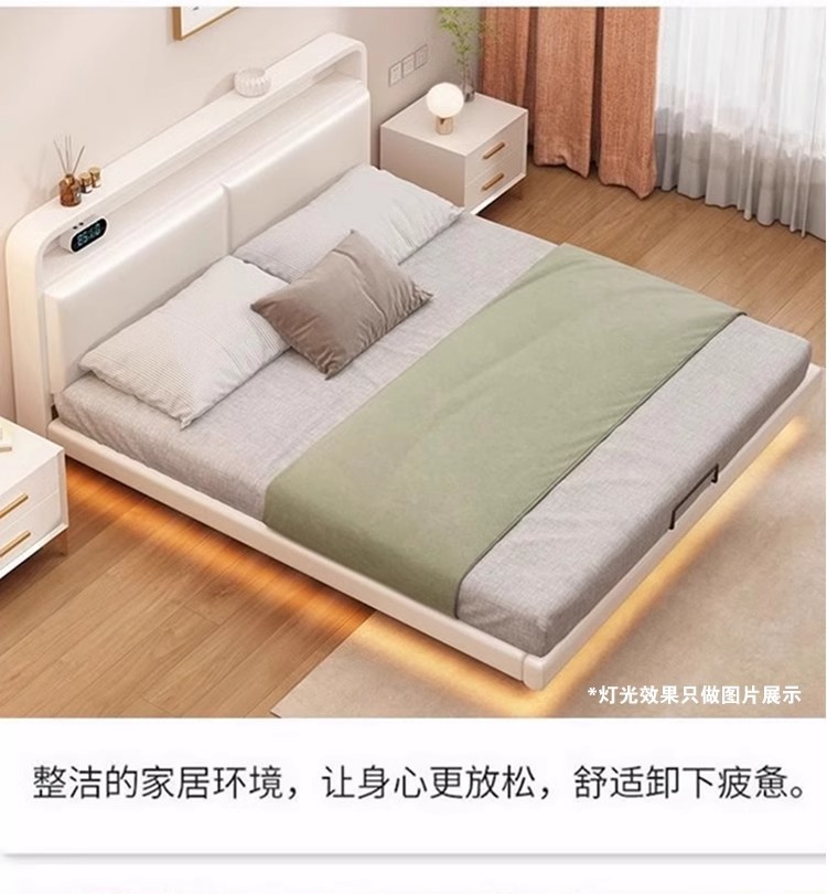 • 크림색 흰색 촘촘한 포장 모델(라이트 스트립 및 미끄럼 방지 지지대 포함)(침대 옆에 물건을 보관할 수 있음)