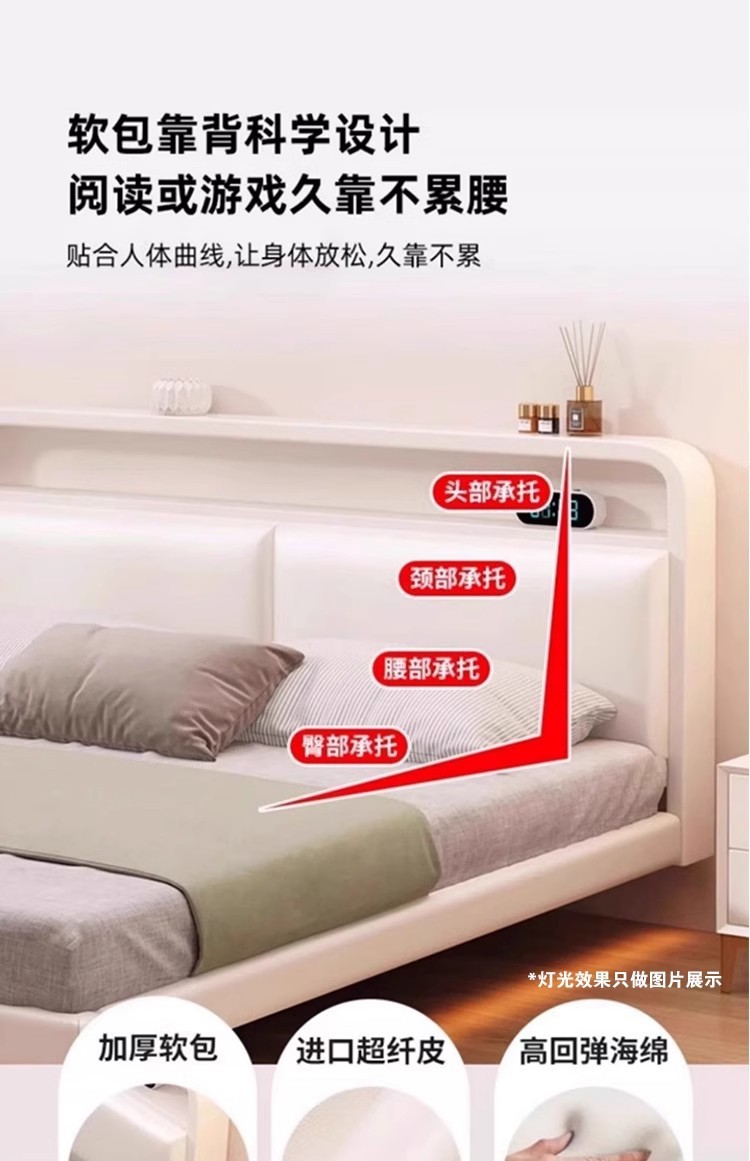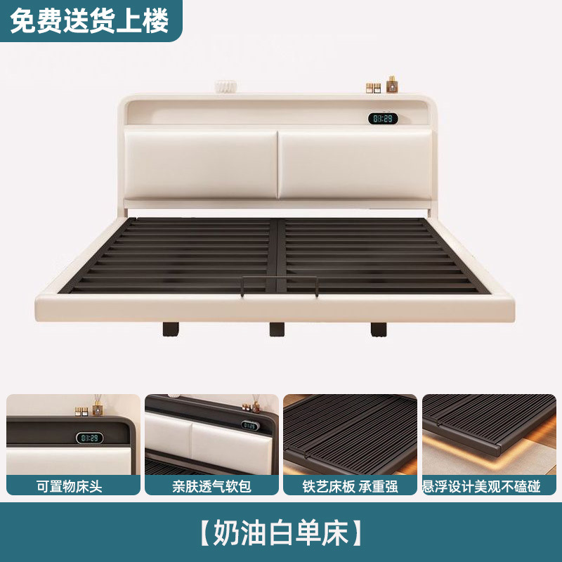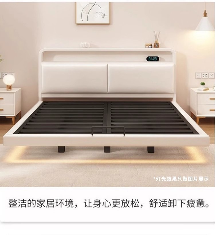 • 크림색 흰색 랙 프레임(라이트 스트립 및 미끄럼 방지 지지대 포함)(침대 옆에 물건 보관 가능)