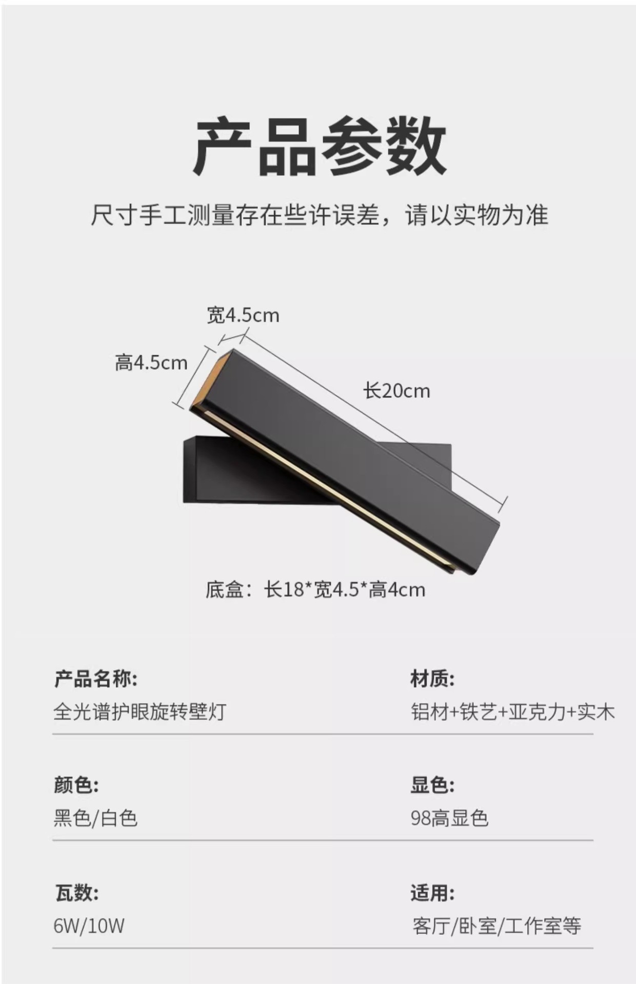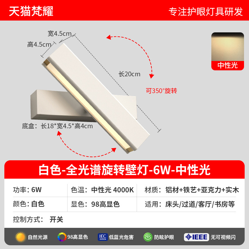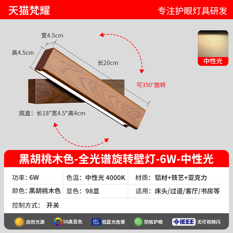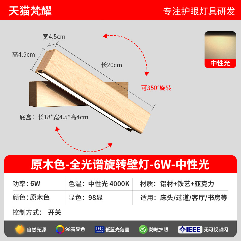 • 오리지널 나뭇결 [풀 스펙트럼 눈 보호 Ra98 디스플레이] 6W-4000K 중성광