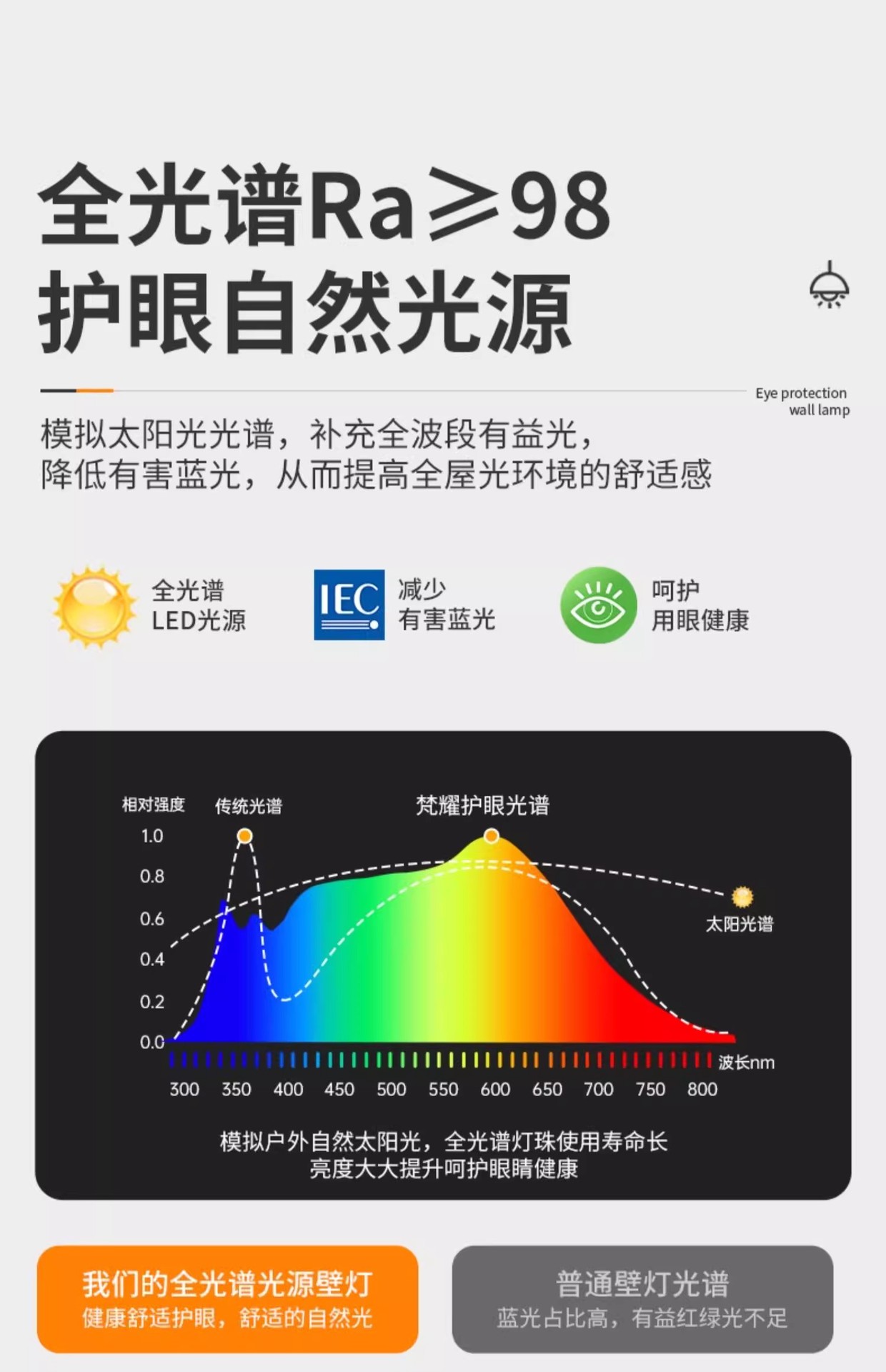 • 오리지널 나뭇결 [풀 스펙트럼 눈 보호 Ra98 디스플레이] 6W-3000K 따뜻한 빛