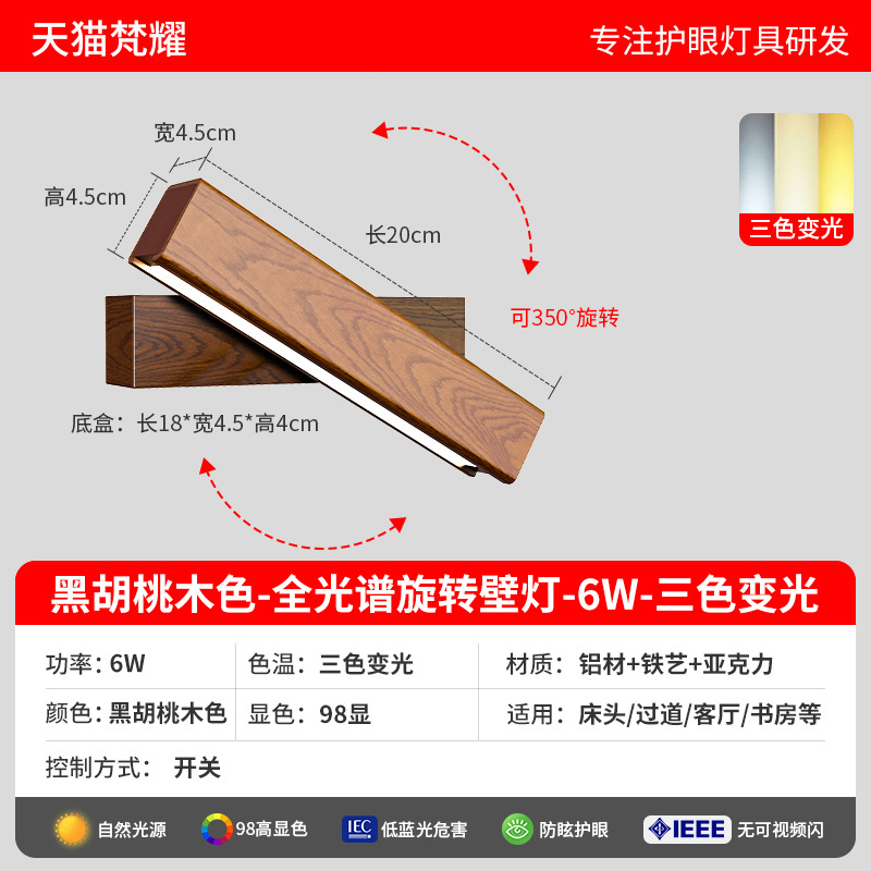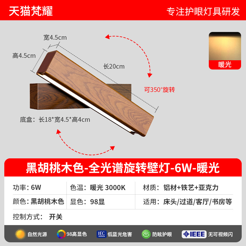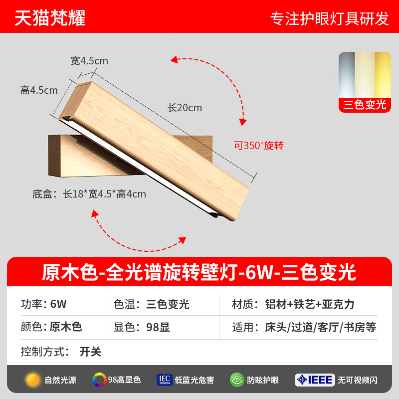 • 오리지널 나뭇결 [풀 스펙트럼 눈 보호 Ra98 디스플레이] 6W-3색 디밍