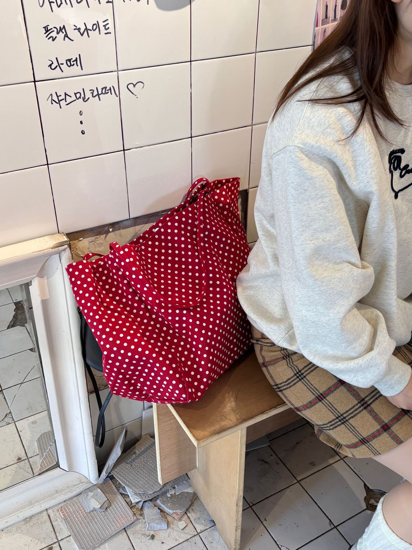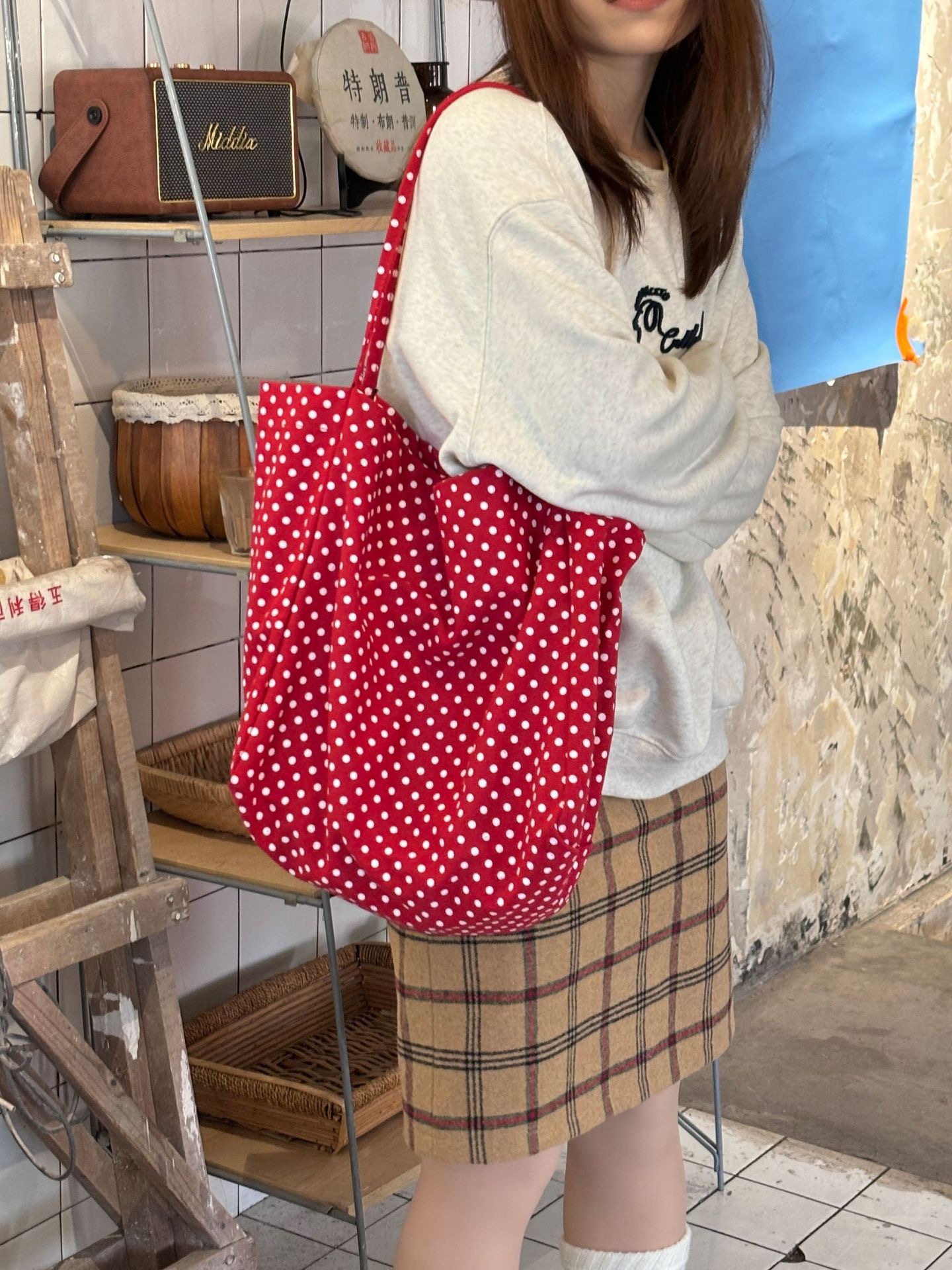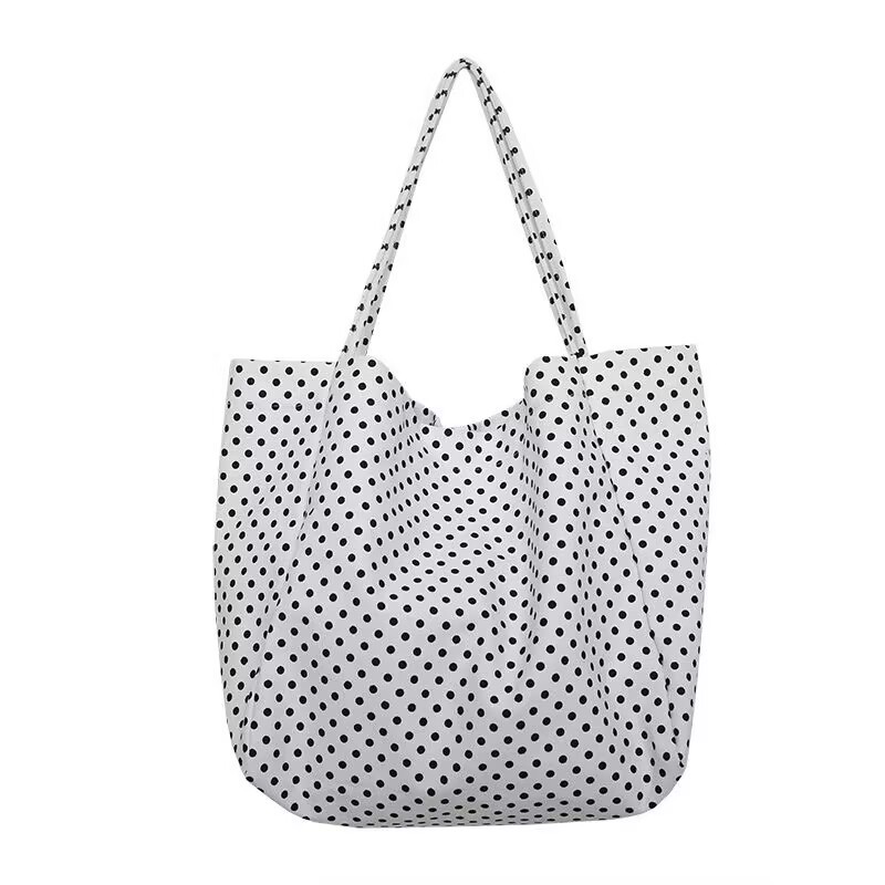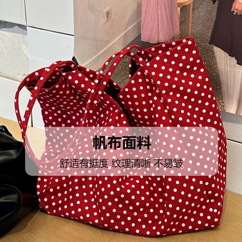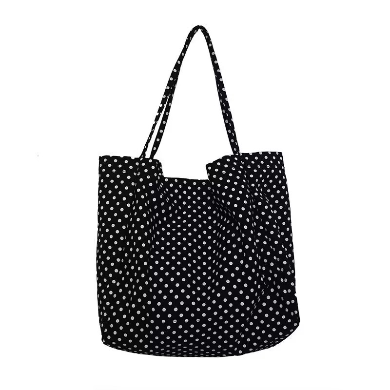 한국 스타일 복고풍 폴카 도트 캔버스 가방 대용량 어깨 크로스 바디 백 겨드랑이 가방 대학생 클래스 통근 가방