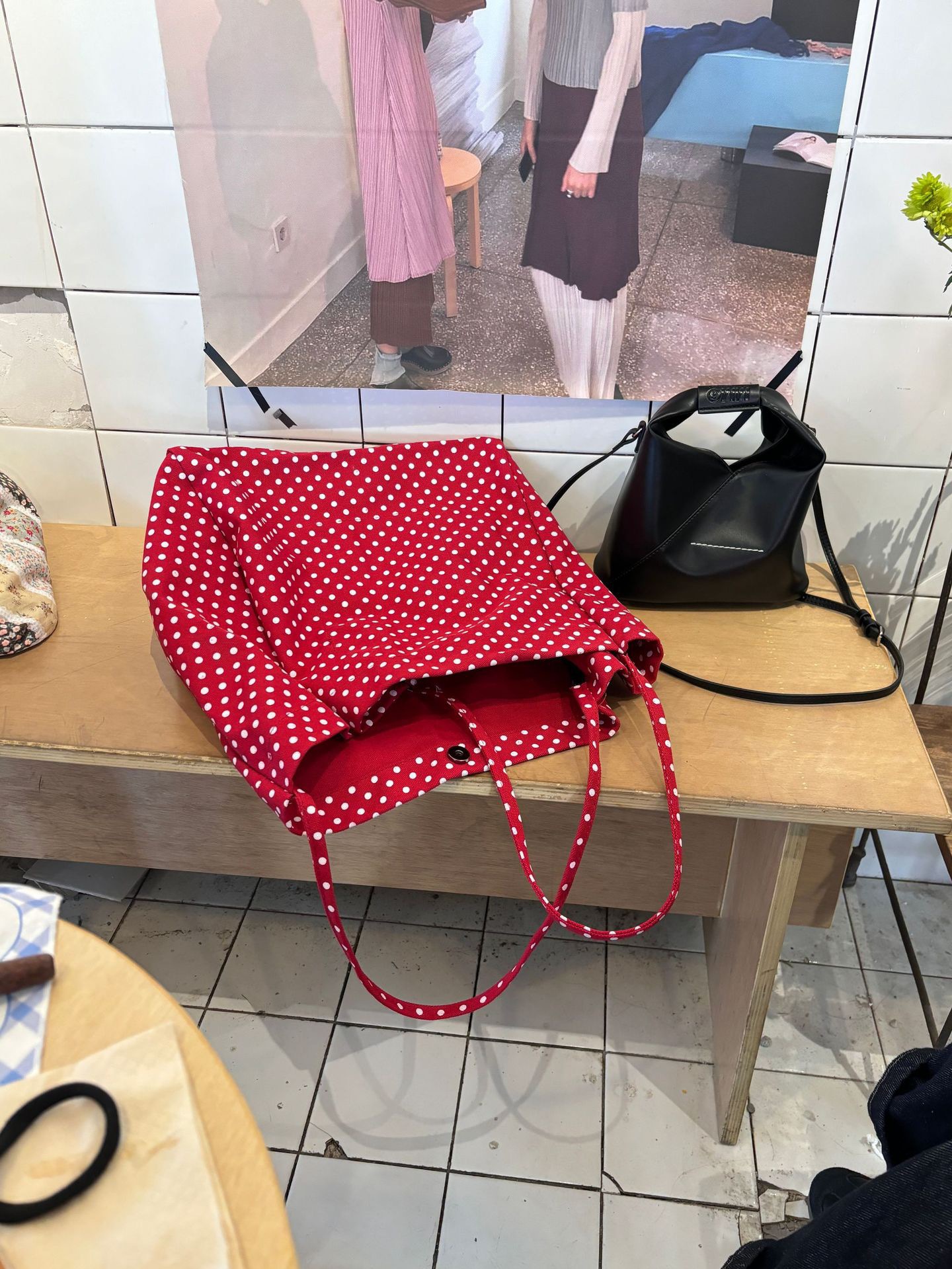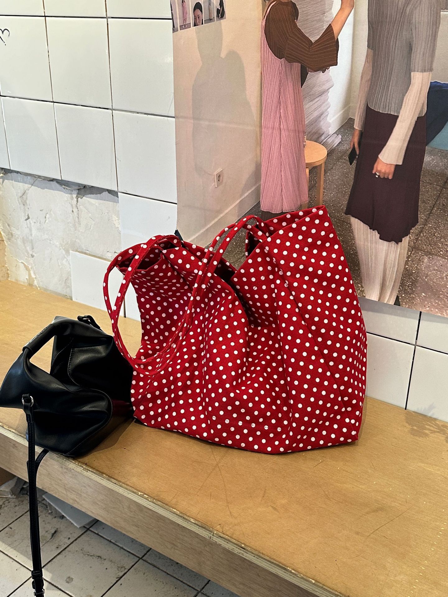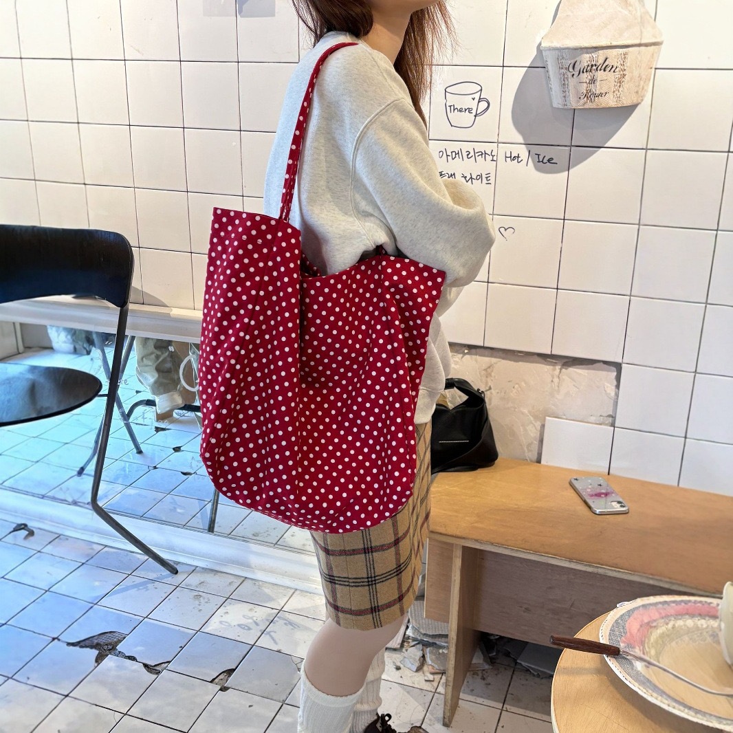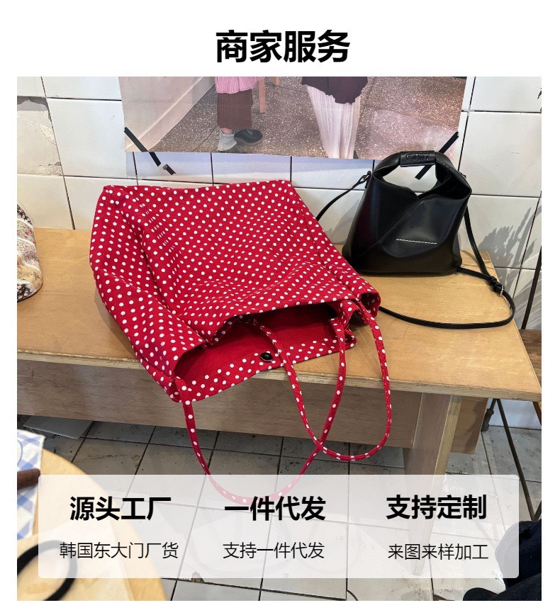 한국 스타일 복고풍 폴카 도트 캔버스 가방 대용량 어깨 크로스 바디 백 겨드랑이 가방 대학생 클래스 통근 가방스토어 가기
