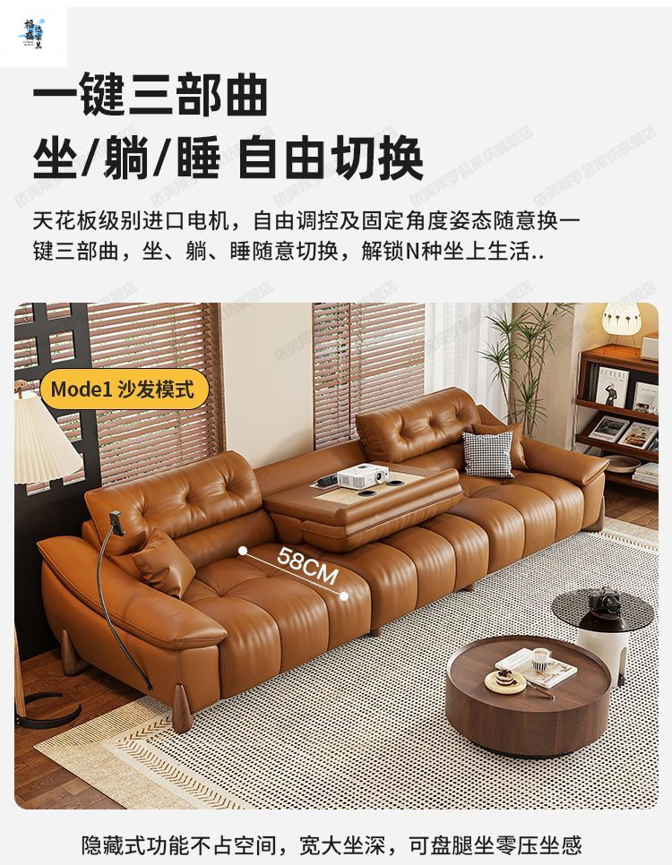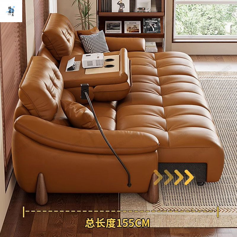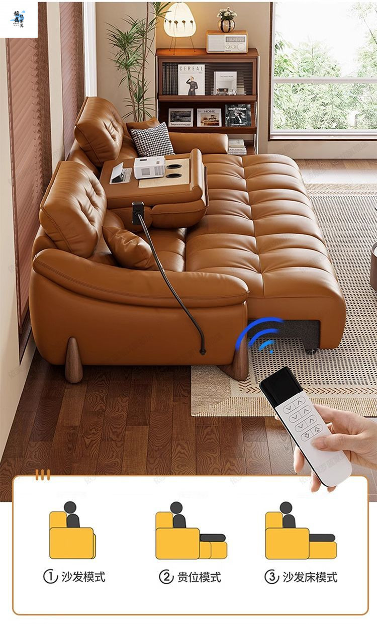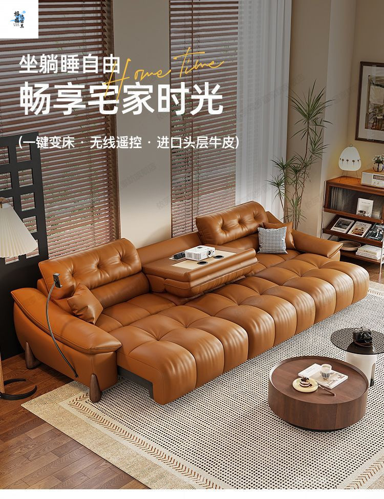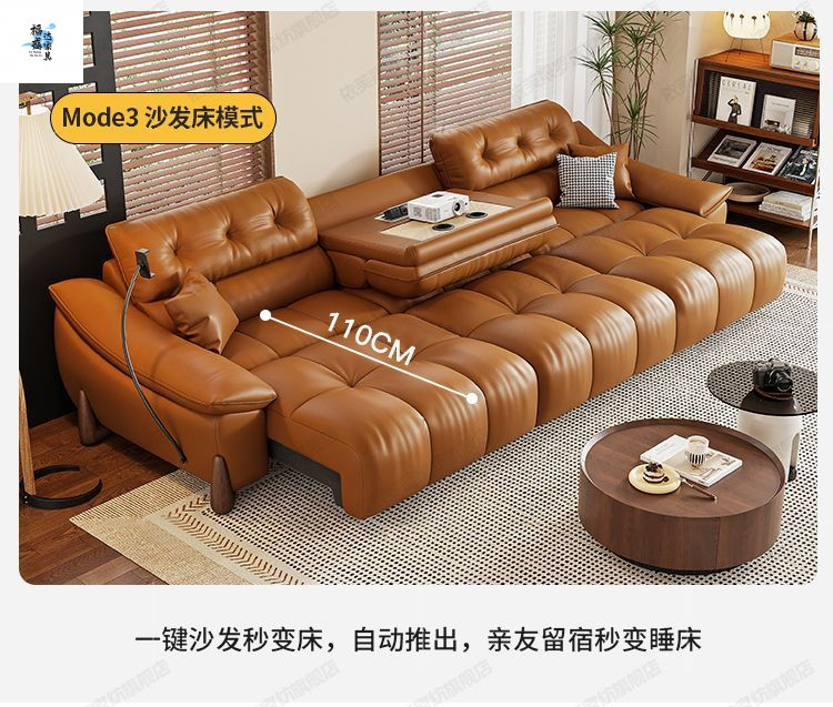 이탈리아 전기 가죽 소파 베드 이중 목적 단순 현대 스마트 개폐식 다기능 1층 소가죽 직선 소파스토어 가기