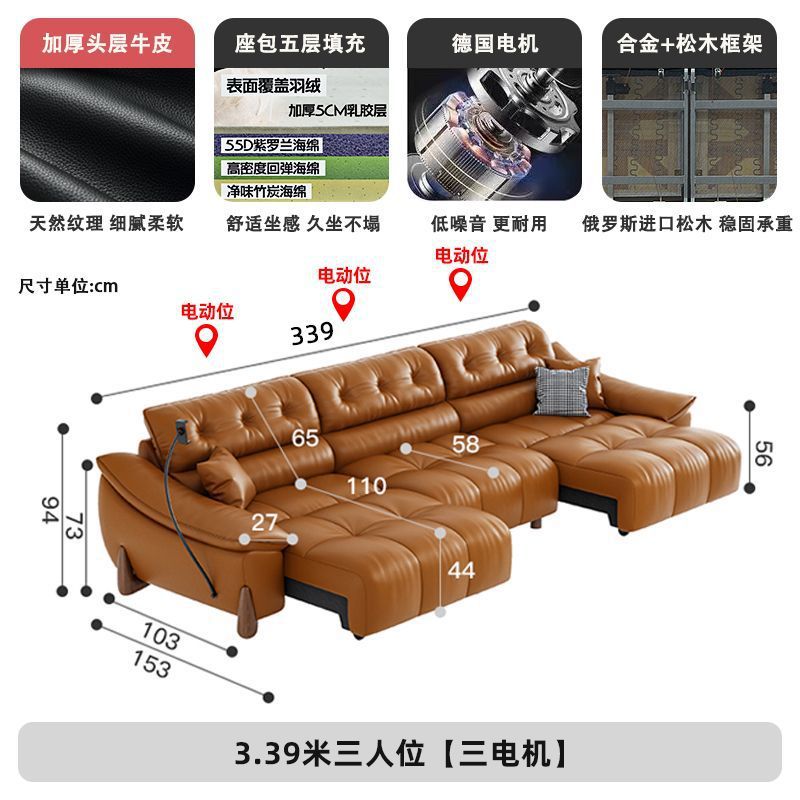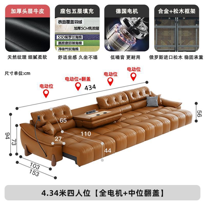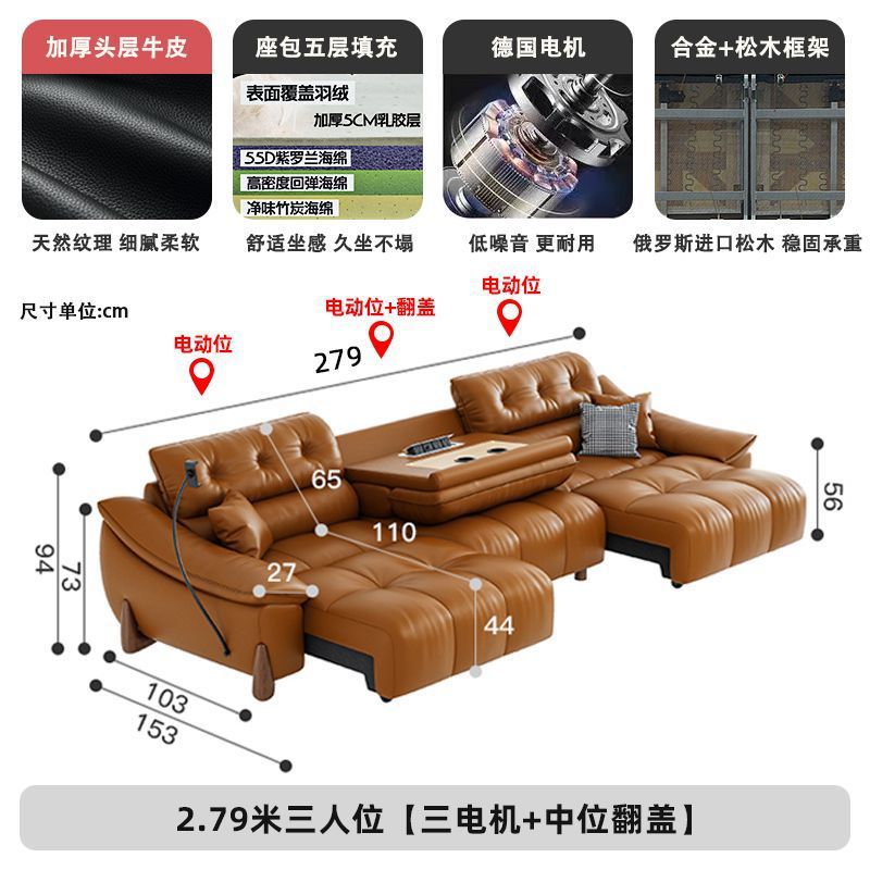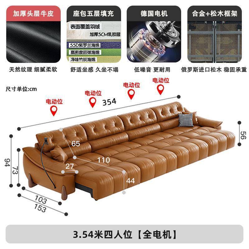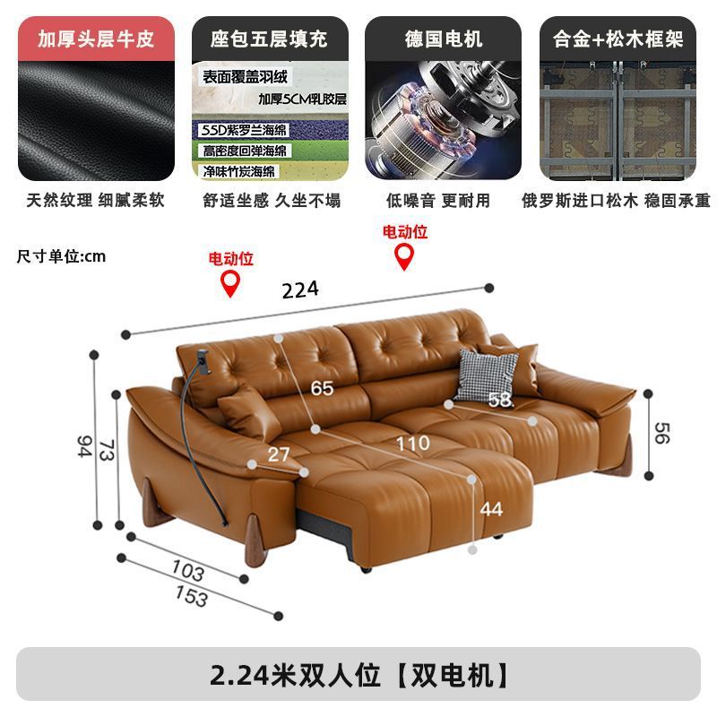 이탈리아 전기 가죽 소파 베드 이중 목적 단순 현대 스마트 개폐식 다기능 1층 소가죽 직선 소파스토어 가기