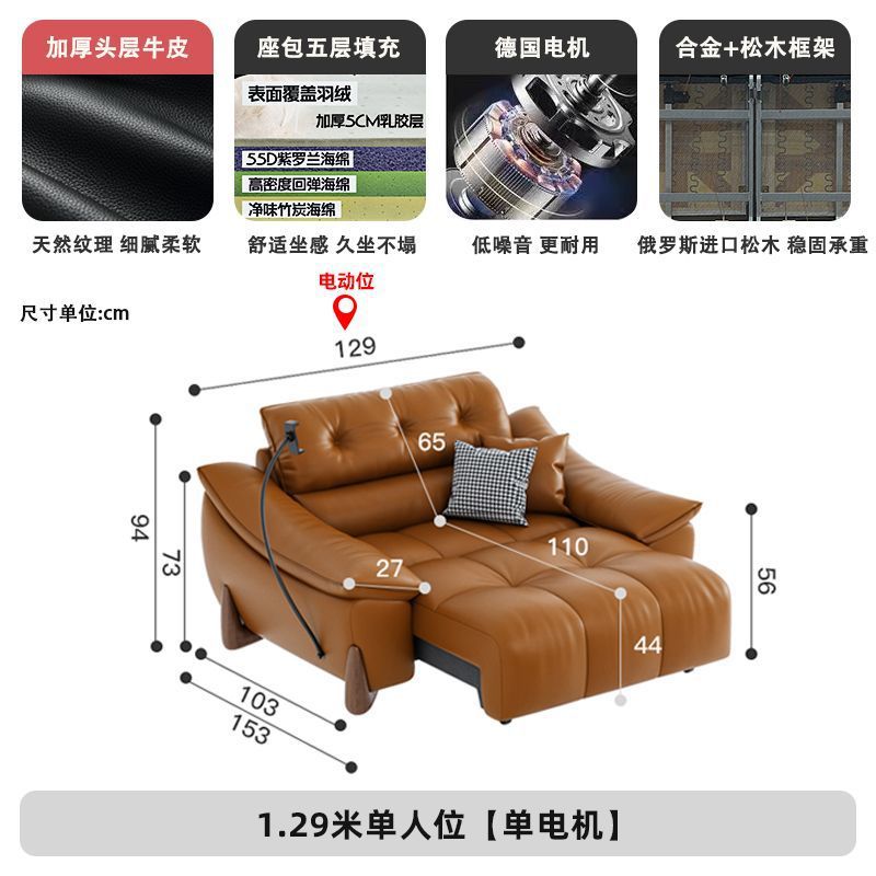 이탈리아 전기 가죽 소파 베드 이중 목적 단순 현대 스마트 개폐식 다기능 1층 소가죽 직선 소파