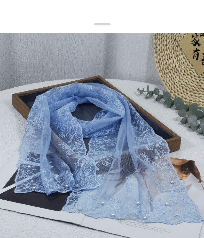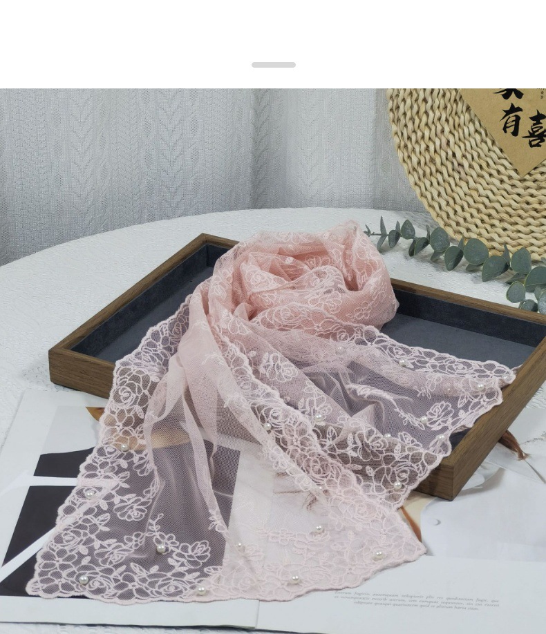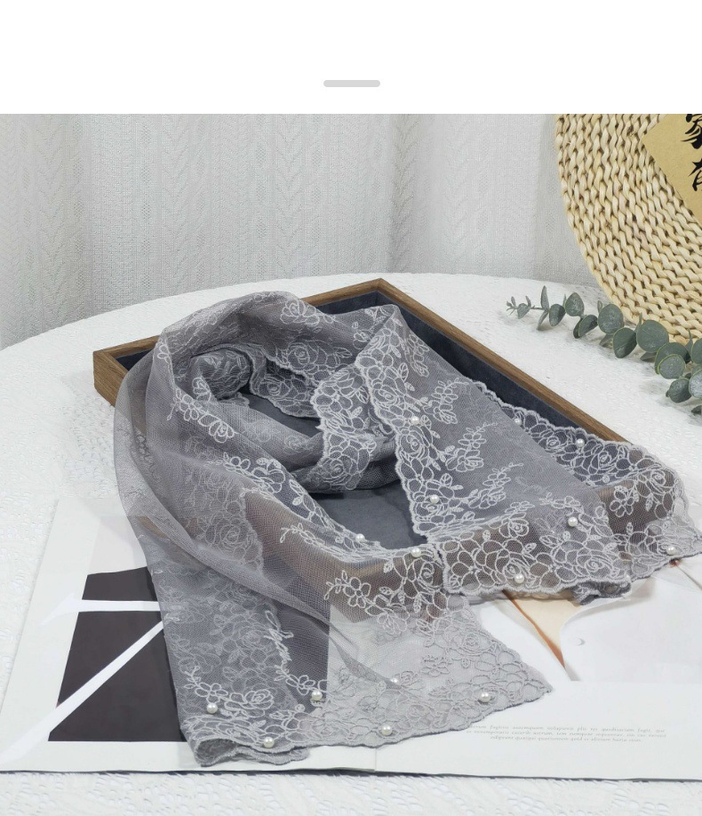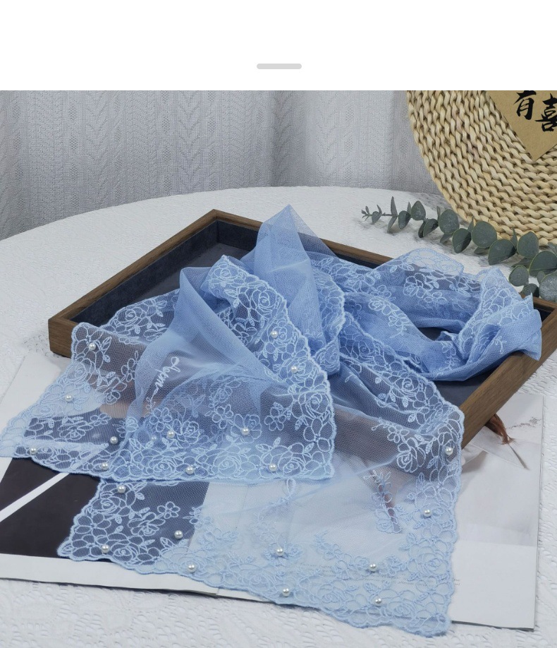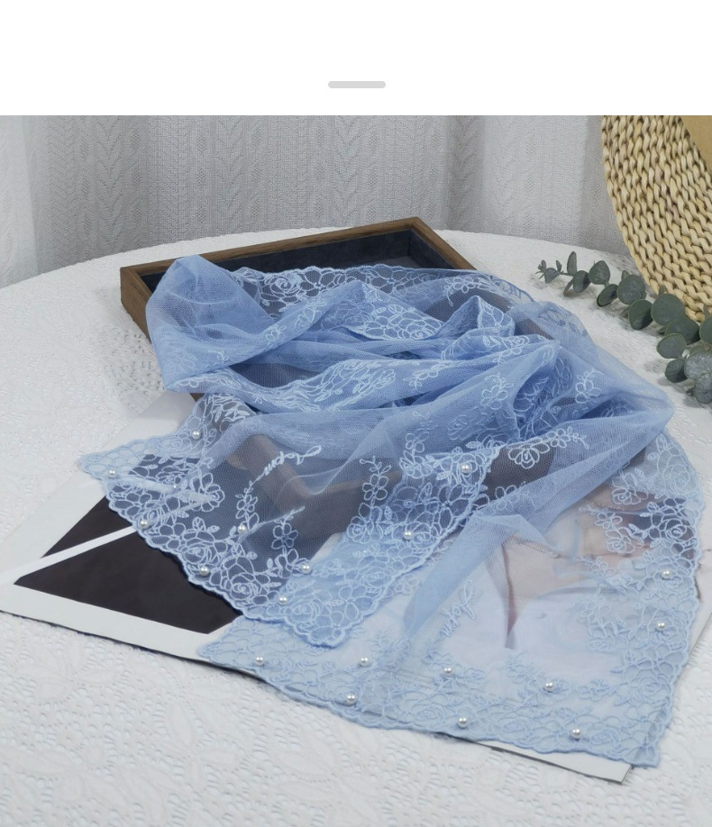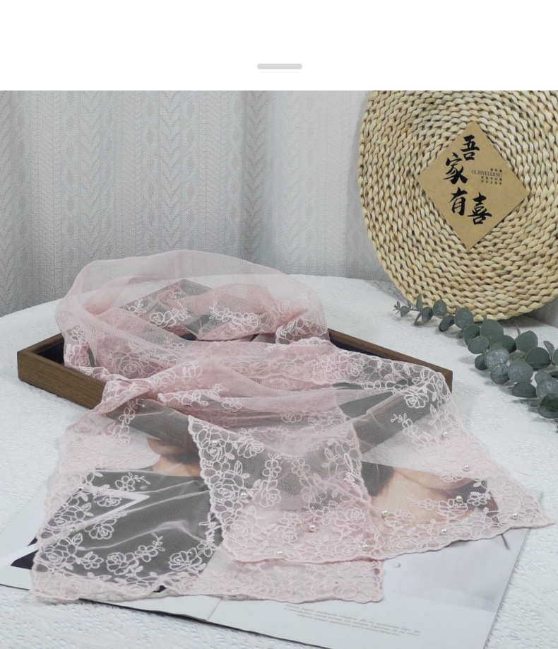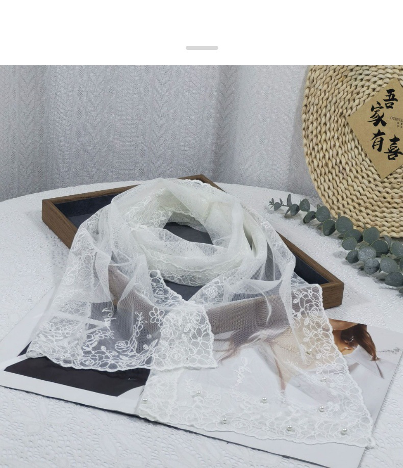 세련된 외부 스카프 리본 얇은 메쉬 실크 스카프 여성 다용도 예술적 입체 자수 진주 레이스 숄 트렌디스토어 가기