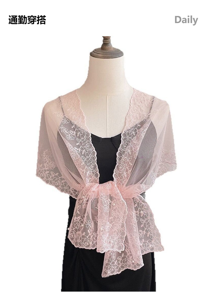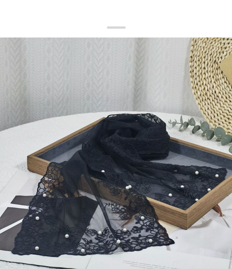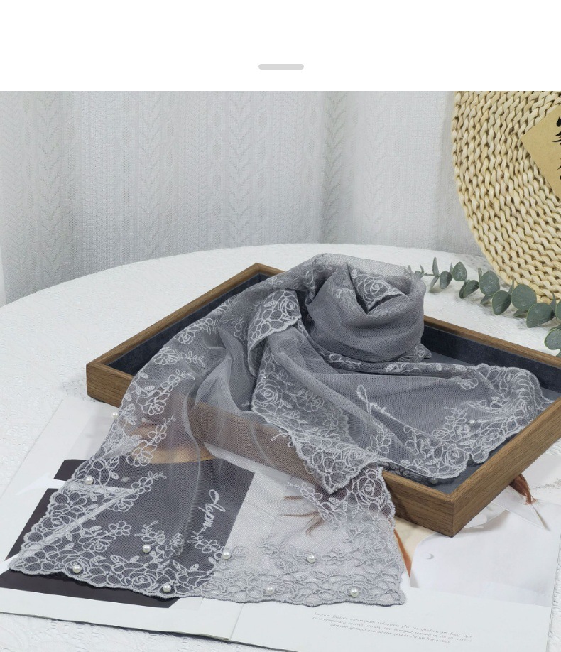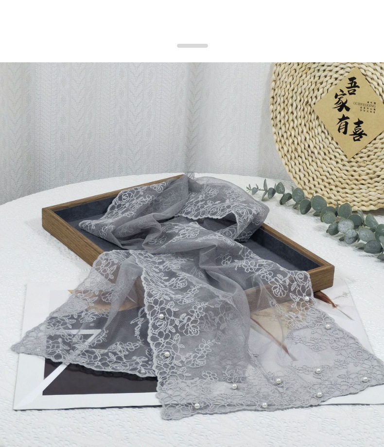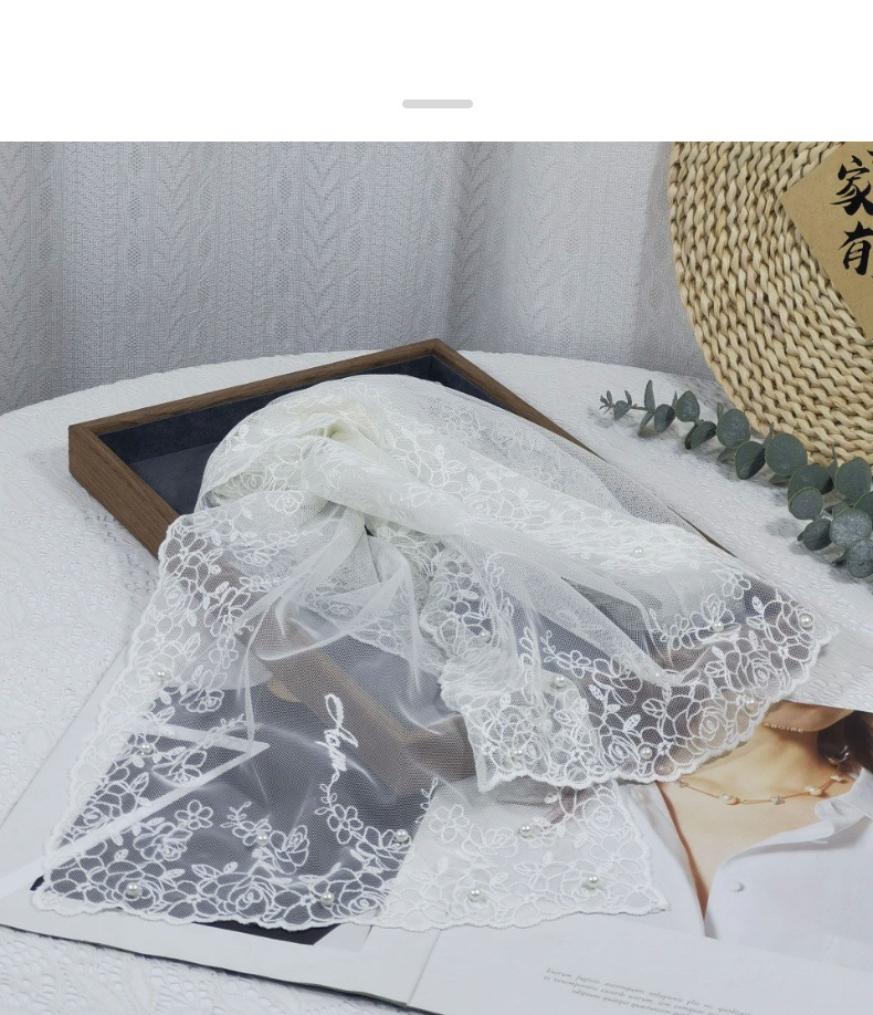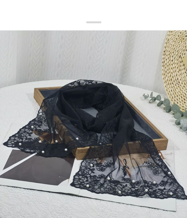 세련된 외부 스카프 리본 얇은 메쉬 실크 스카프 여성 다용도 예술적 입체 자수 진주 레이스 숄 트렌디스토어 가기