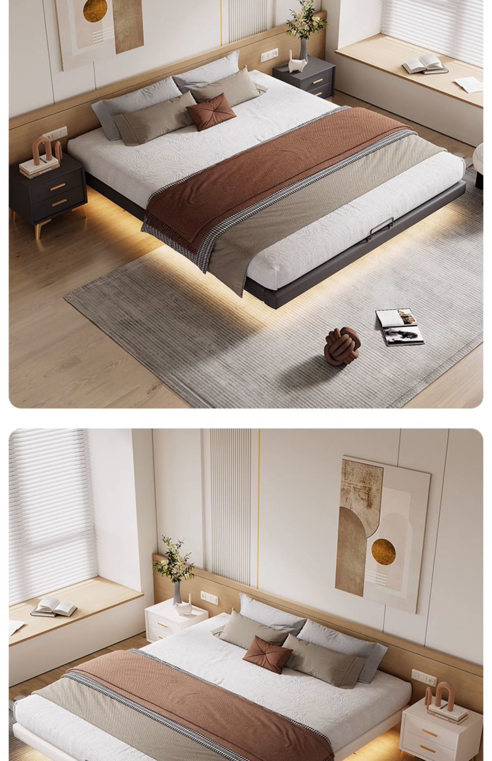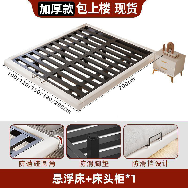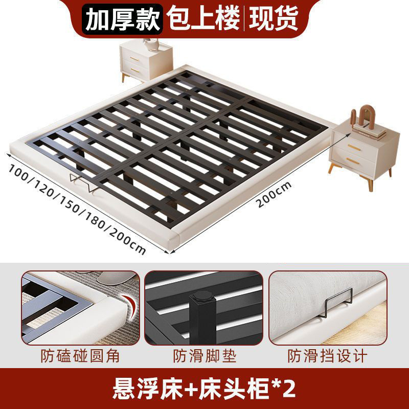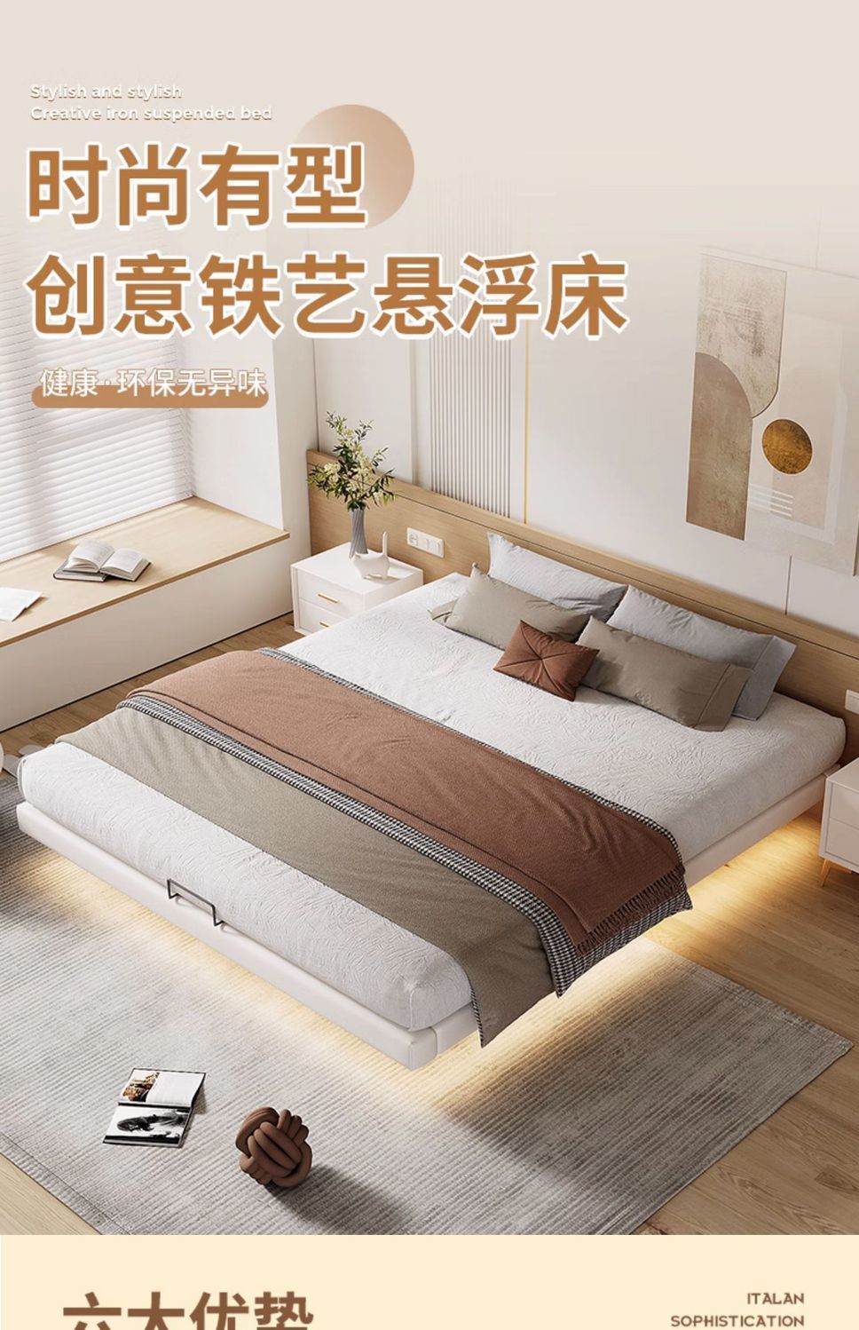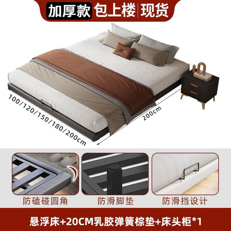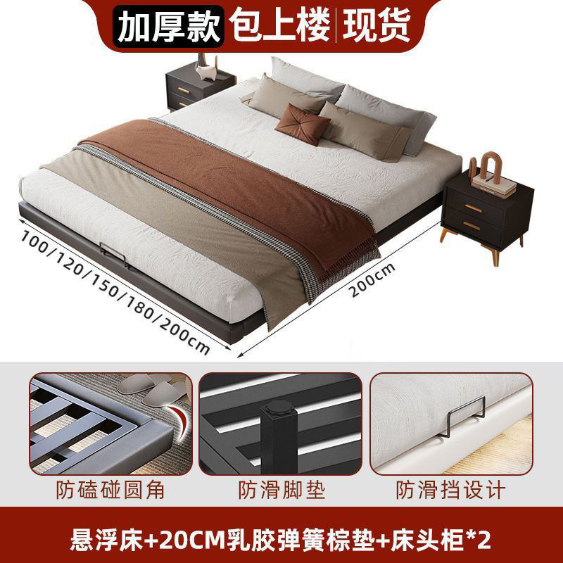 서스펜션 침대, 모던하고 심플한 침대 없는 이탈리안 미니멀리스트 서스펜션 침대, 철제 마스터 침실 더블 침대, 다다미 랙스토어 가기