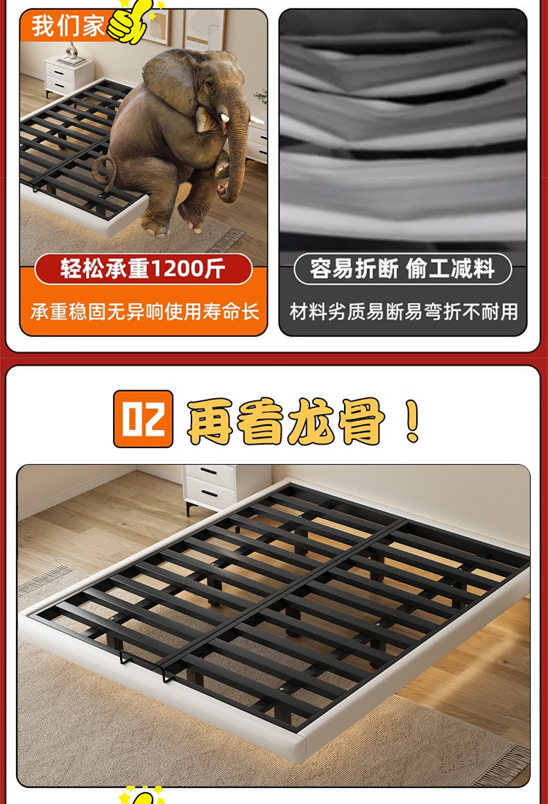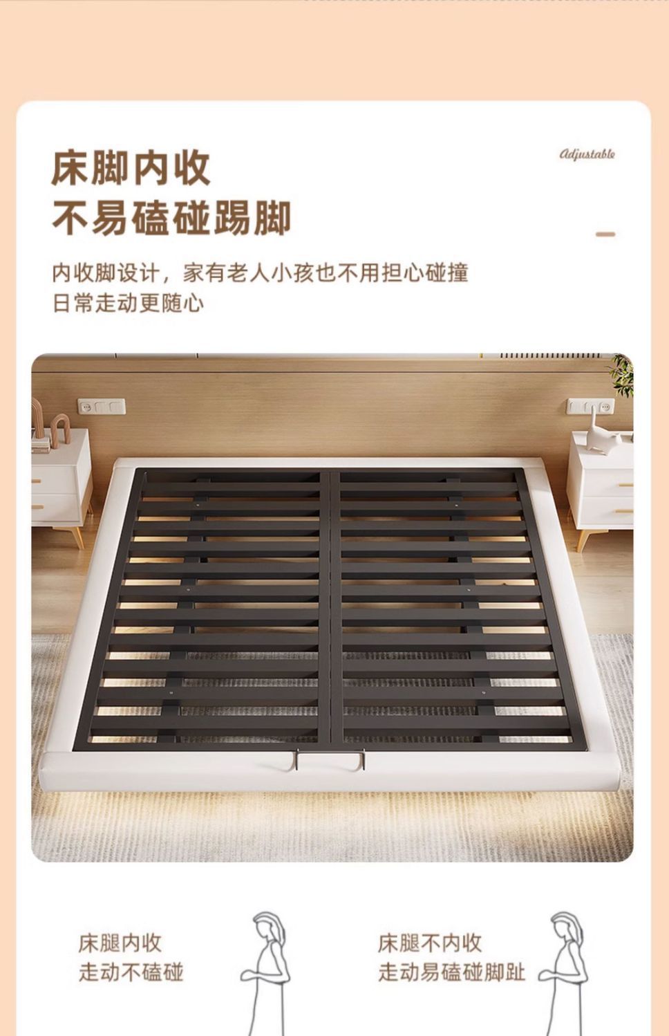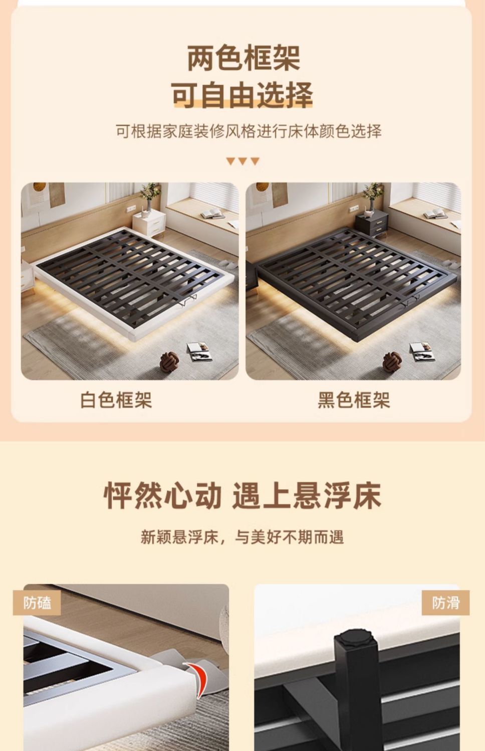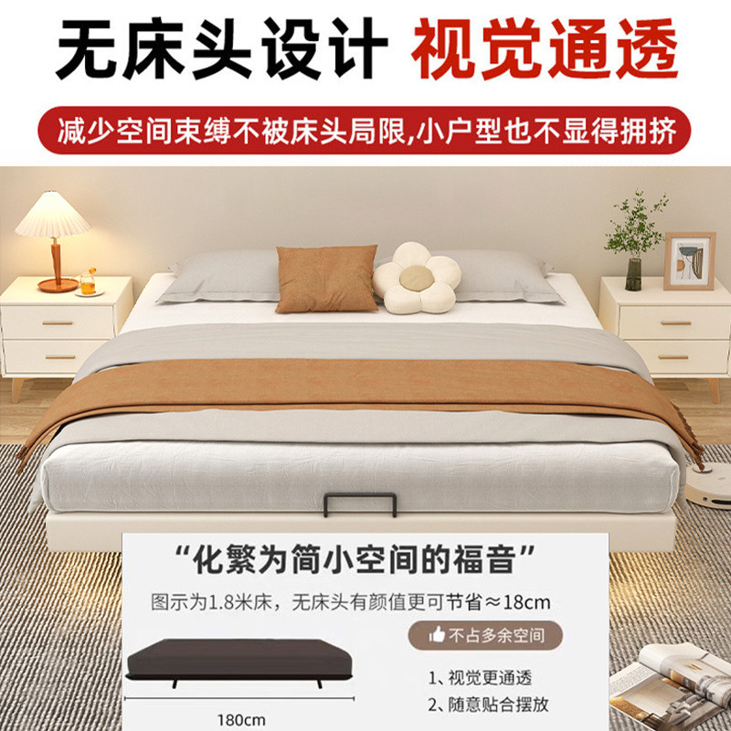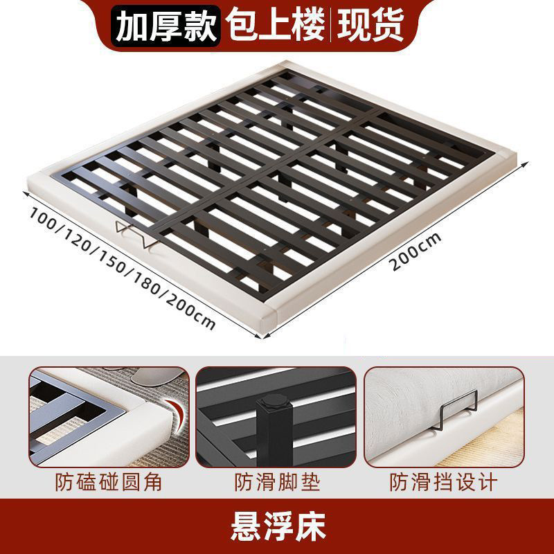 서스펜션 침대, 모던하고 심플한 침대 없는 이탈리안 미니멀리스트 서스펜션 침대, 철제 마스터 침실 더블 침대, 다다미 랙스토어 가기
