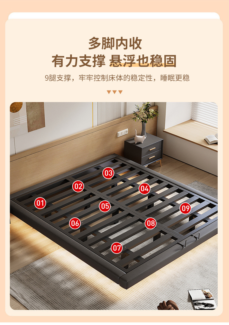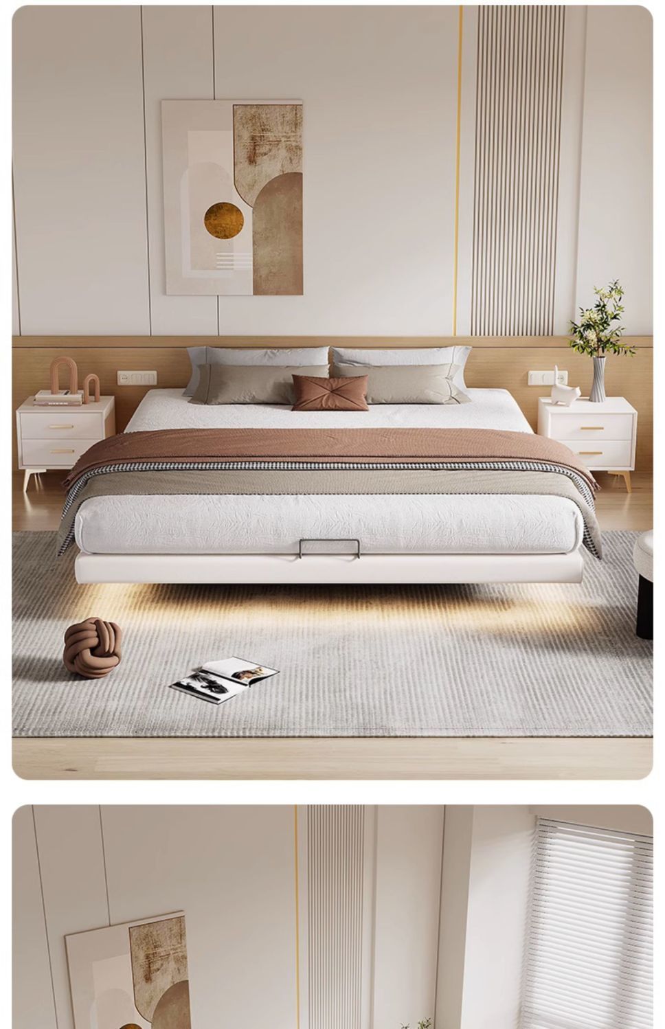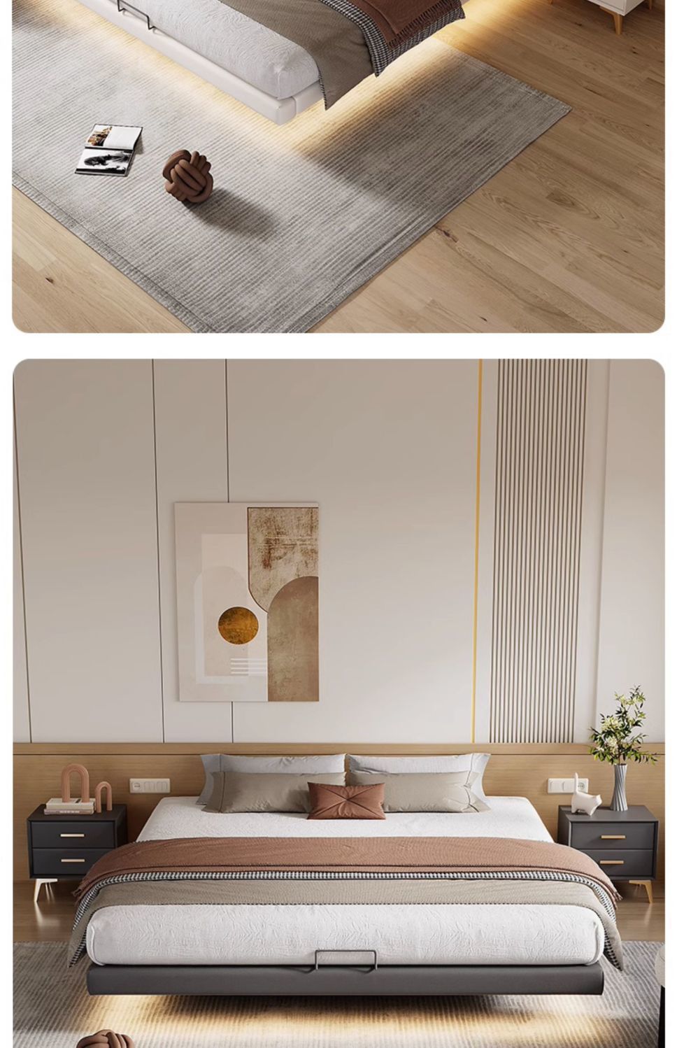 서스펜션 침대, 모던하고 심플한 침대 없는 이탈리안 미니멀리스트 서스펜션 침대, 철제 마스터 침실 더블 침대, 다다미 랙
