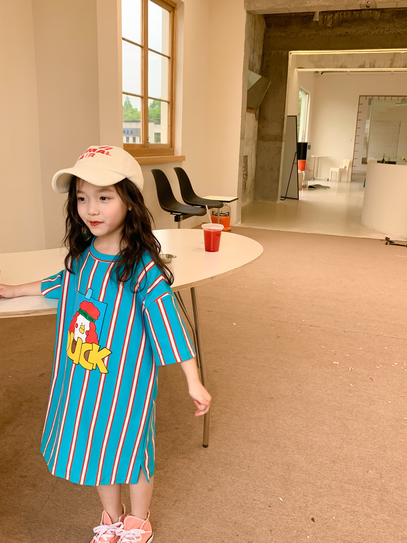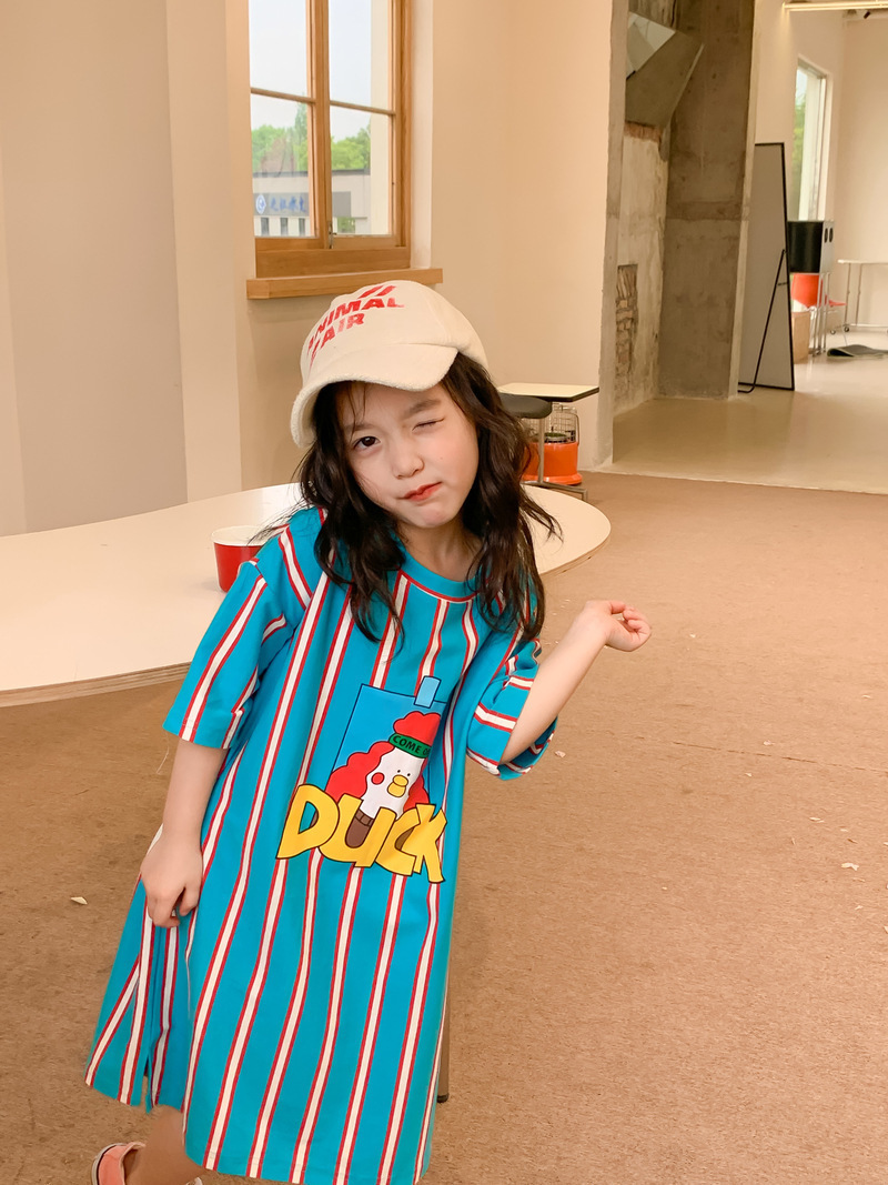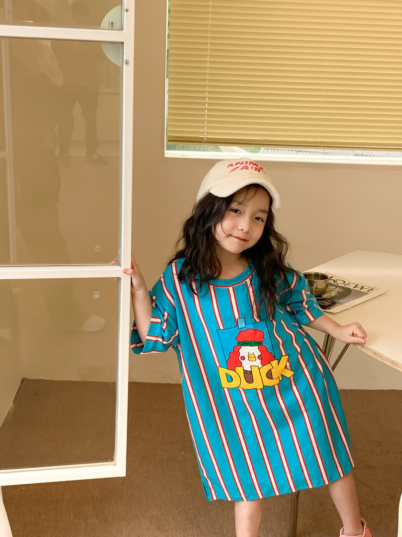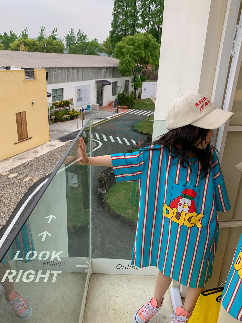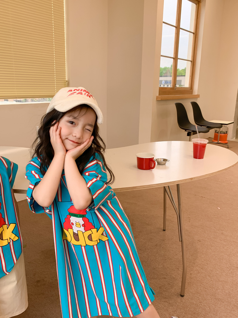 어린이 티셔츠 2025 여름 스타일 소년과 소녀 한국어 버전 만화 프린트 티셔츠 어린이 캐주얼 조끼 드레스 형제와 자매 의상스토어 가기