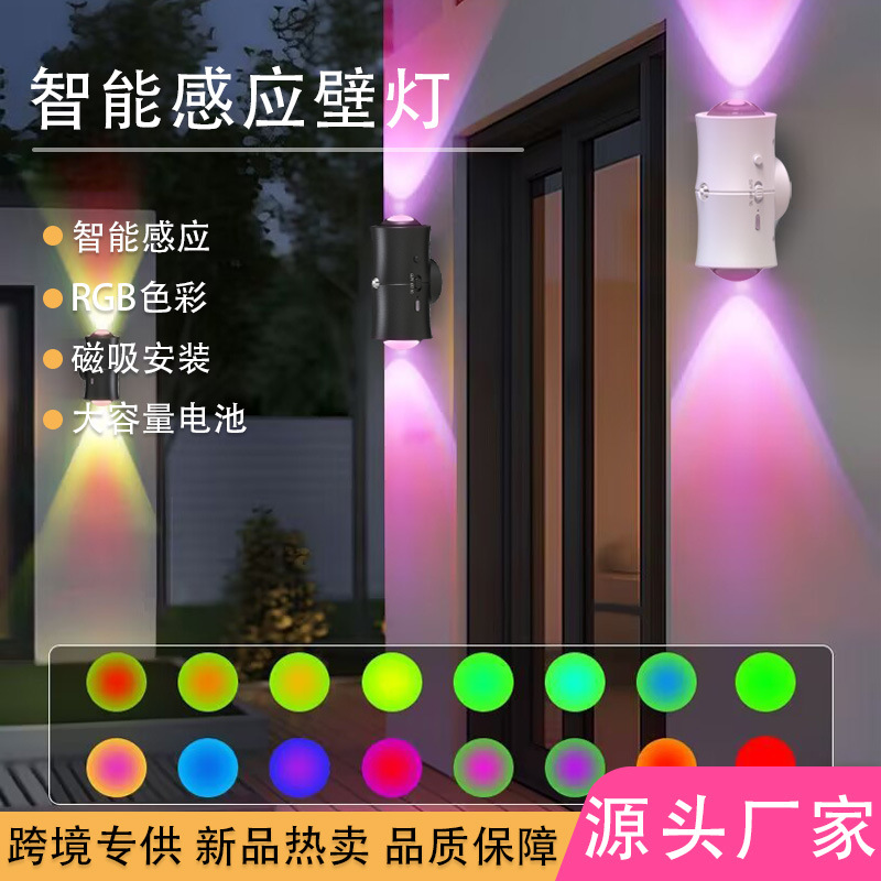 국경 간 분위기 야간 조명 충전식 rgb 심포니 실내 벽 램프 배선이 필요없는 자기 흡입 침대 옆 인체 유도 야간 조명