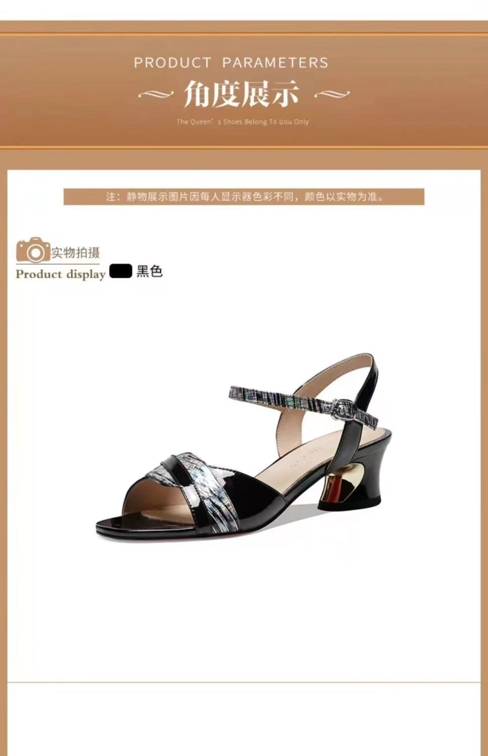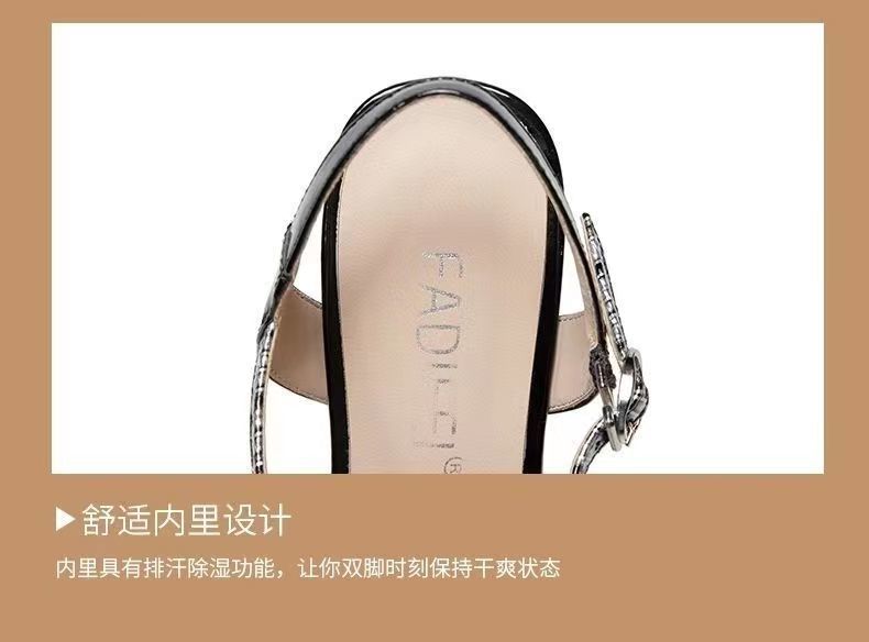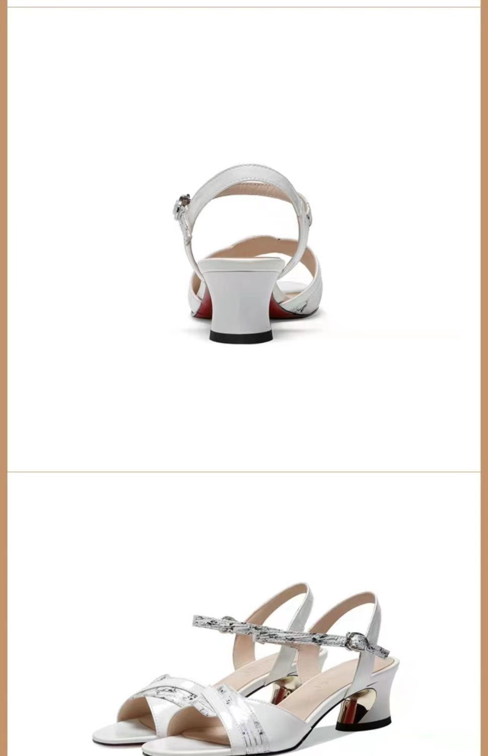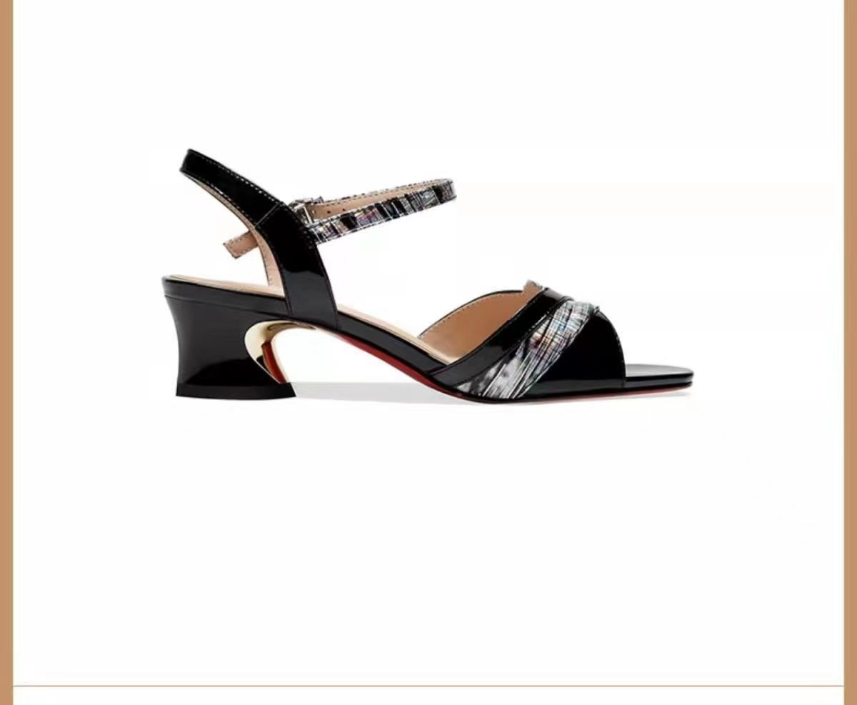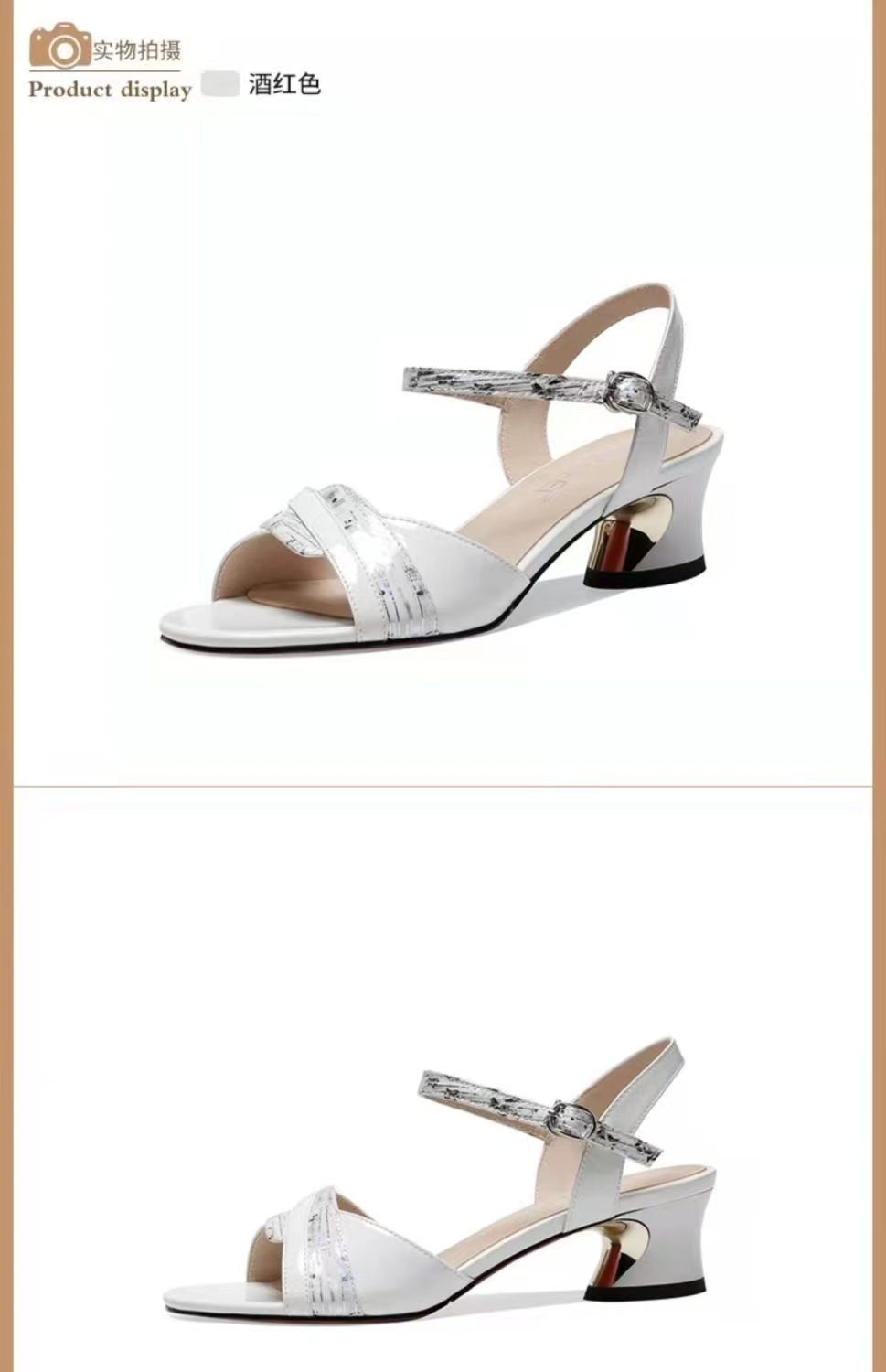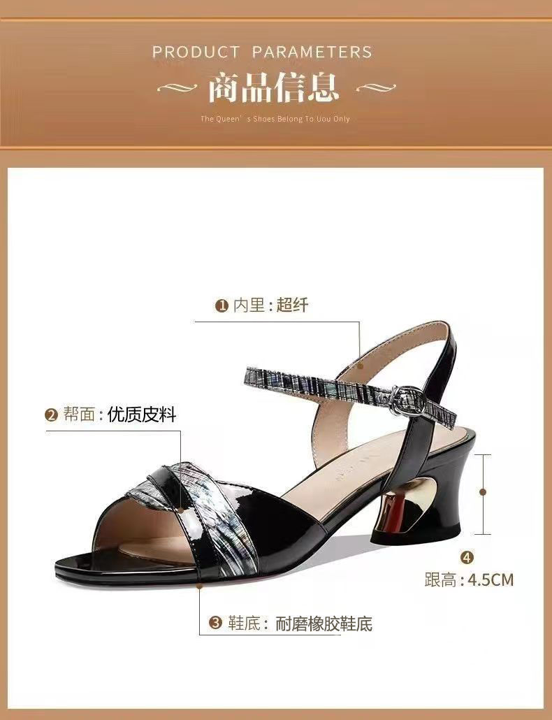 2022 여름 신상 여성용 두꺼운 굽 샌들, 미디엄 굽, 패셔너블한 라운드 토 오픈 토, 원라인 스트랩, 천연 가죽, 다용도 여성화스토어 가기