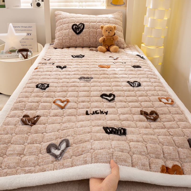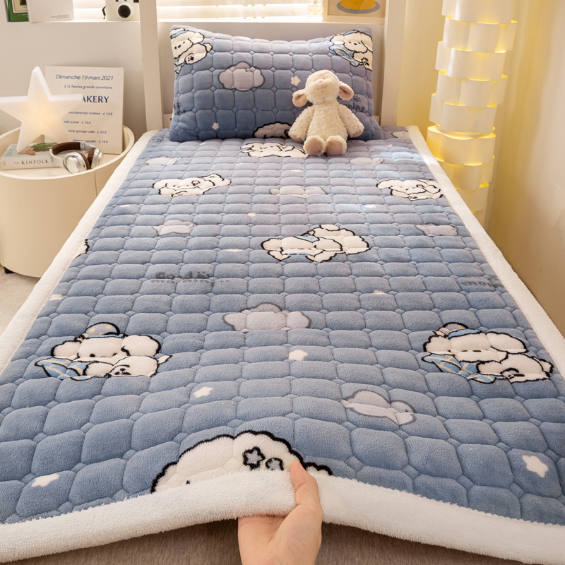밀크 벨벳 매트리스, 부드러운 쿠션, 가정용 두꺼운 기숙사 학생 싱글 겨울 벨벳 침대 커버 담요, 매트리스 패드 및 이불스토어 가기