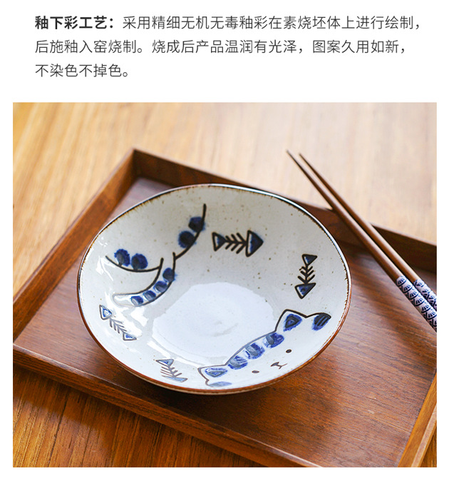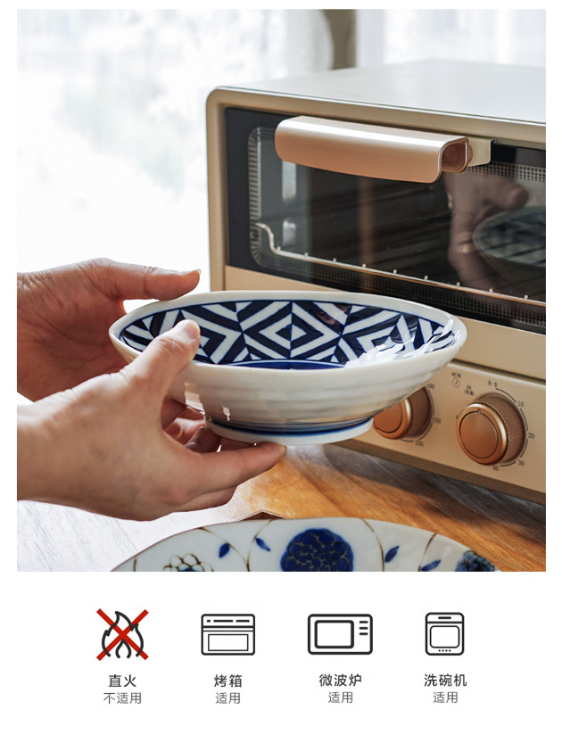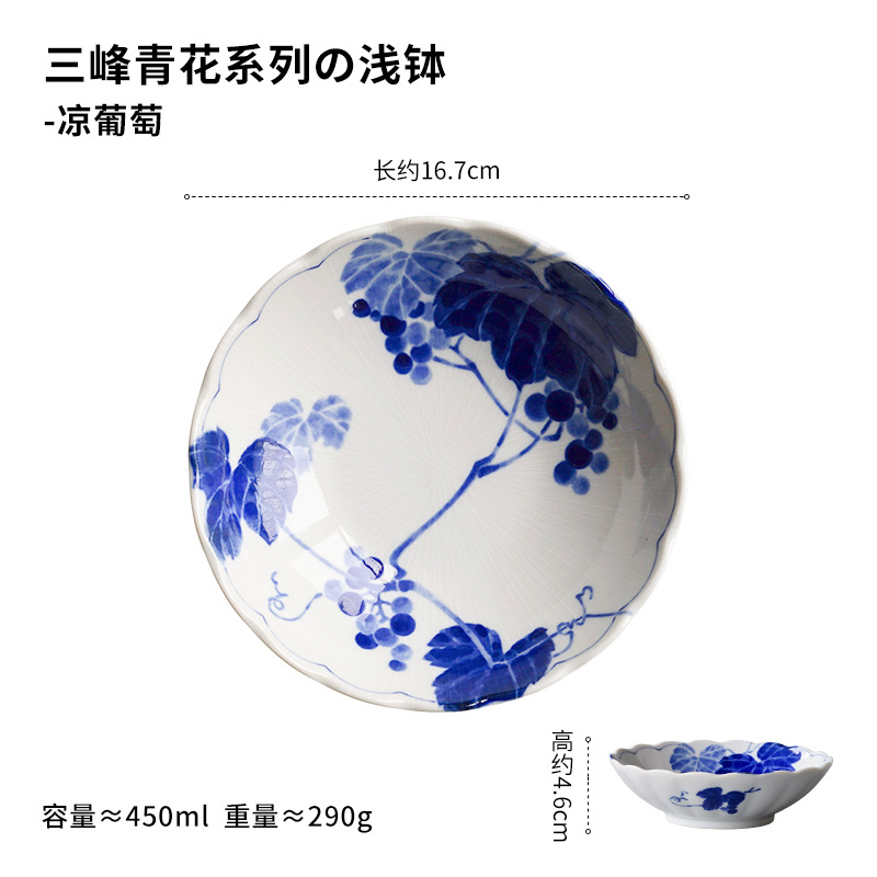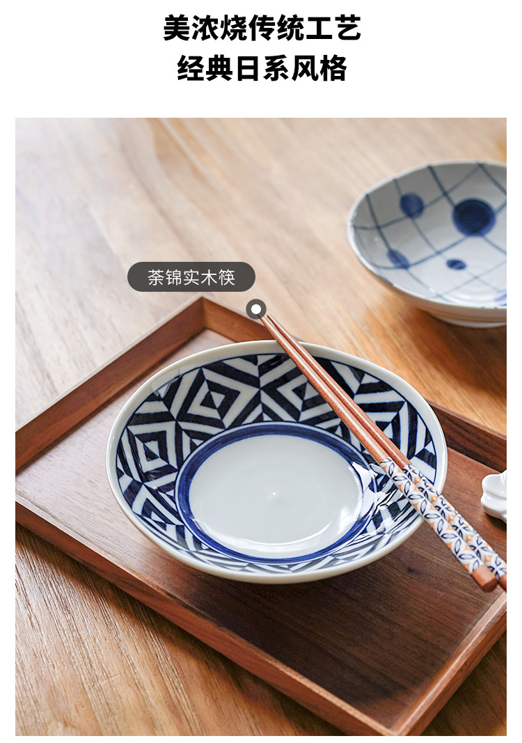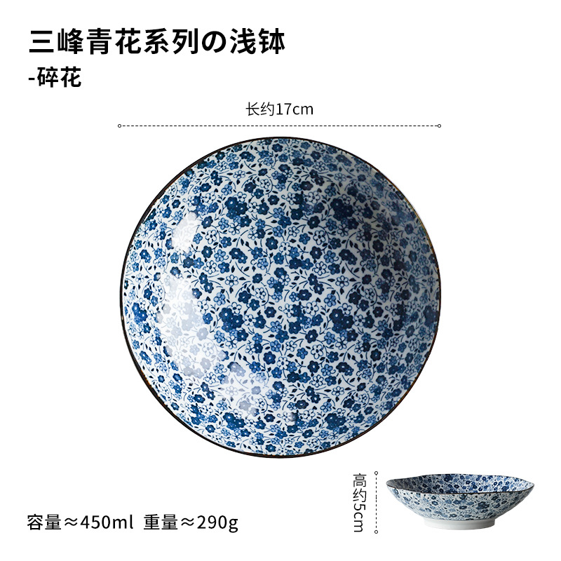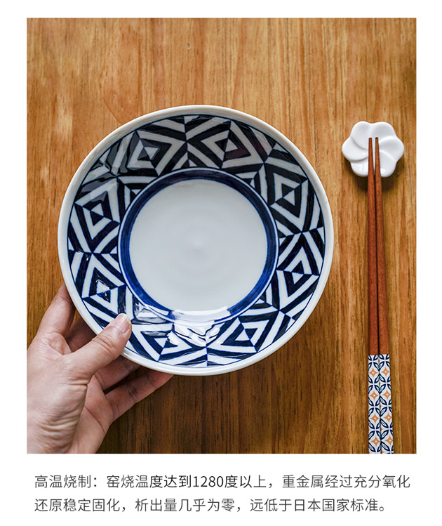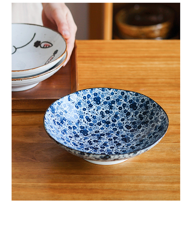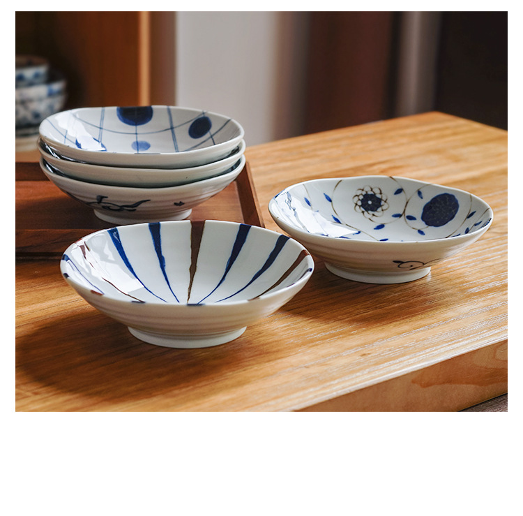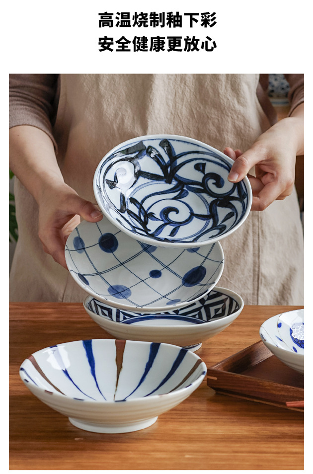 일본 수입 Sanfeng 파란색과 흰색 얕은 그릇 복고풍 세라믹 유약 컬러 식기 가정용 깊은 접시 다목적 접시 작은 접시