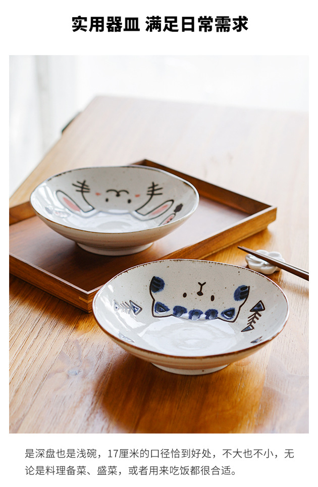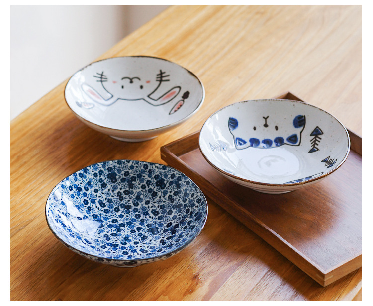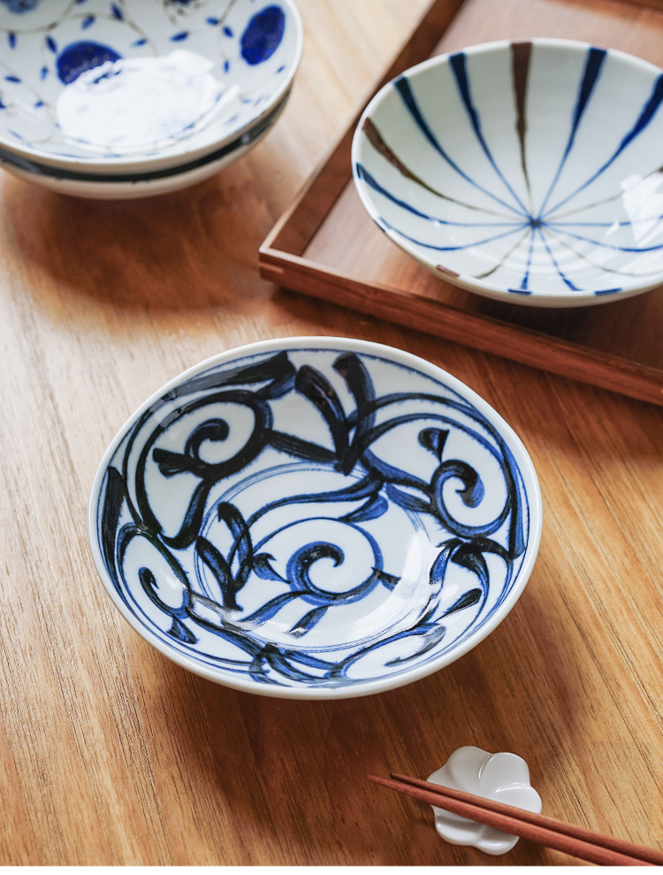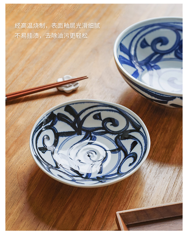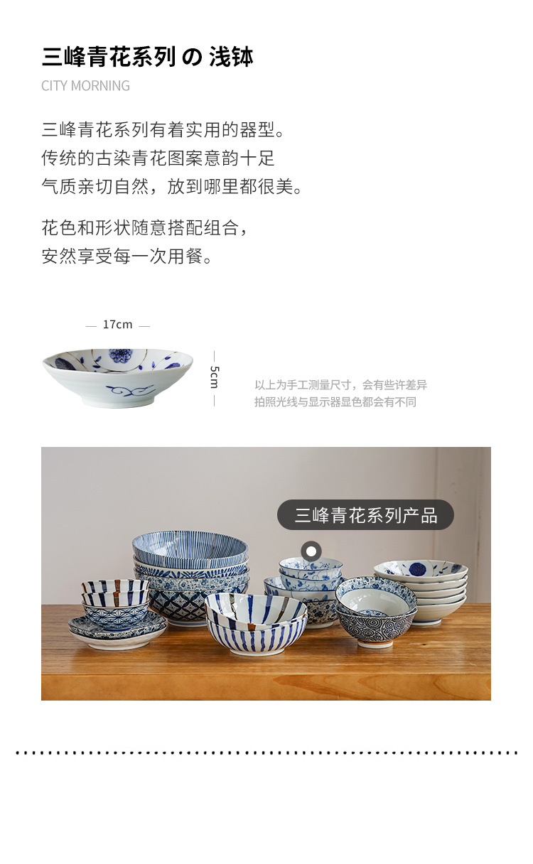 일본 수입 Sanfeng 파란색과 흰색 얕은 그릇 복고풍 세라믹 유약 컬러 식기 가정용 깊은 접시 다목적 접시 작은 접시스토어 가기