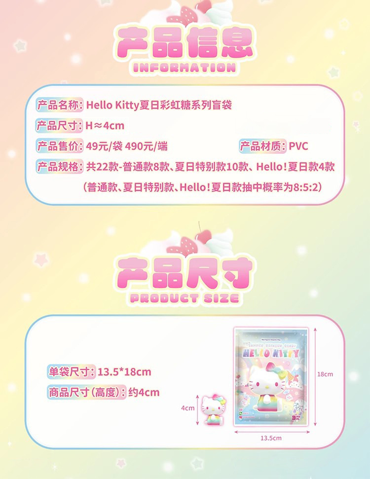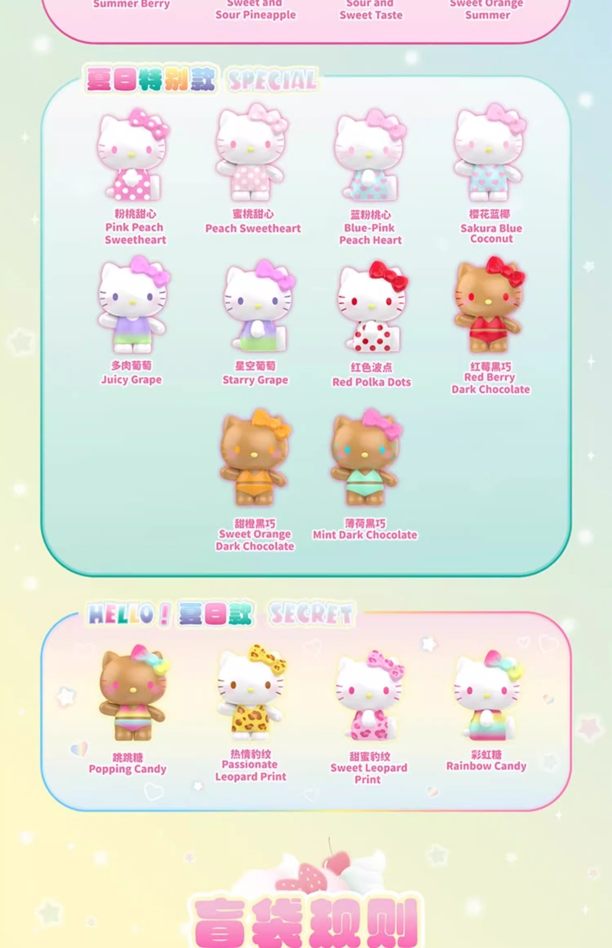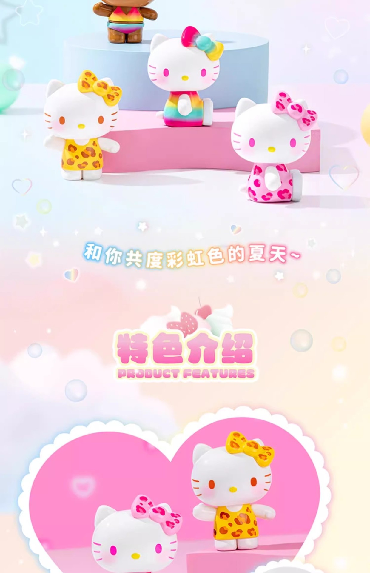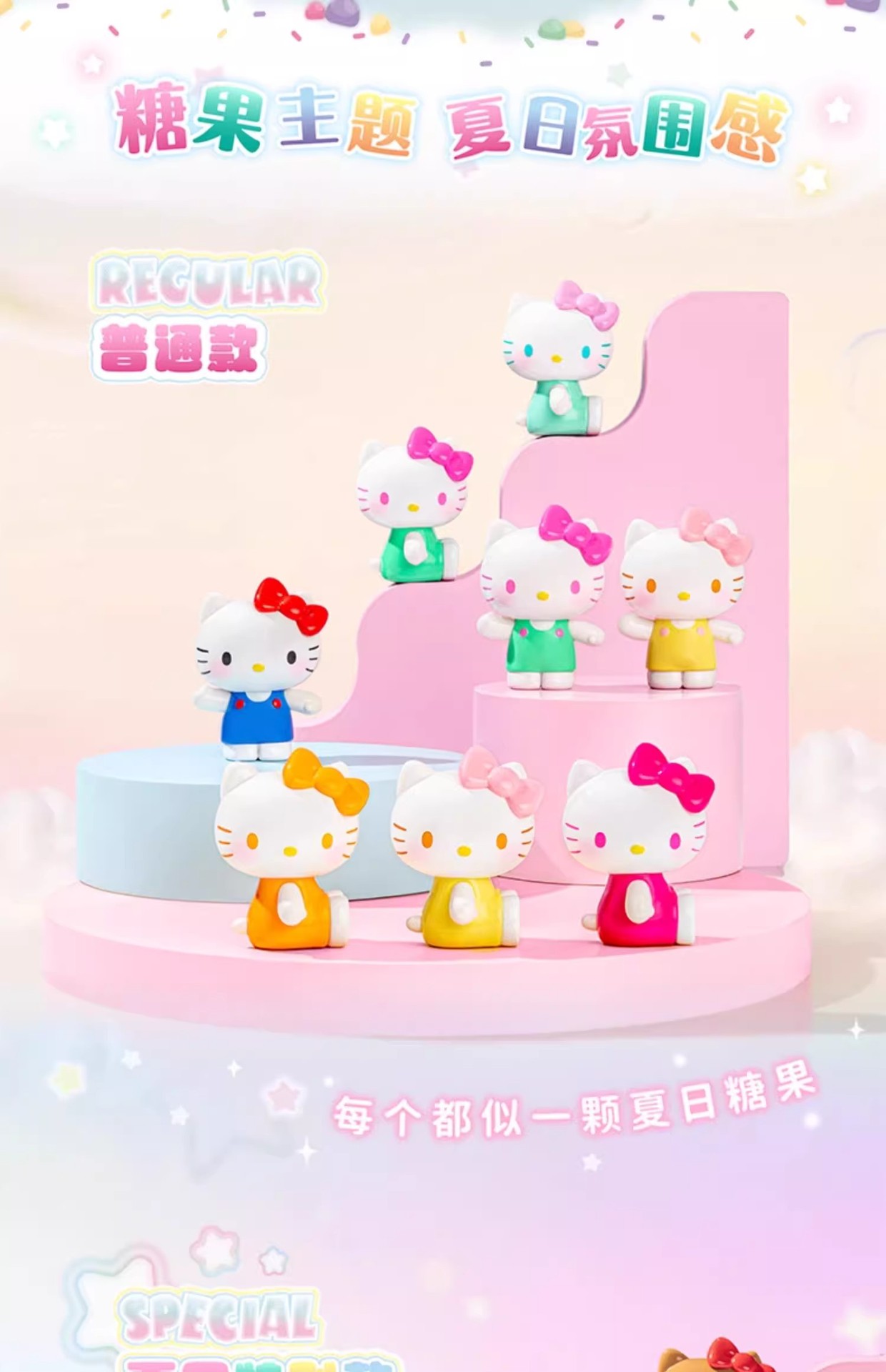 정품 산리오 헬로 키티 여름 무지개 사탕 시리즈 블라인드 백 유행 장난감 그림 주변 장치 귀여운 장식품 도매 선물스토어 가기
