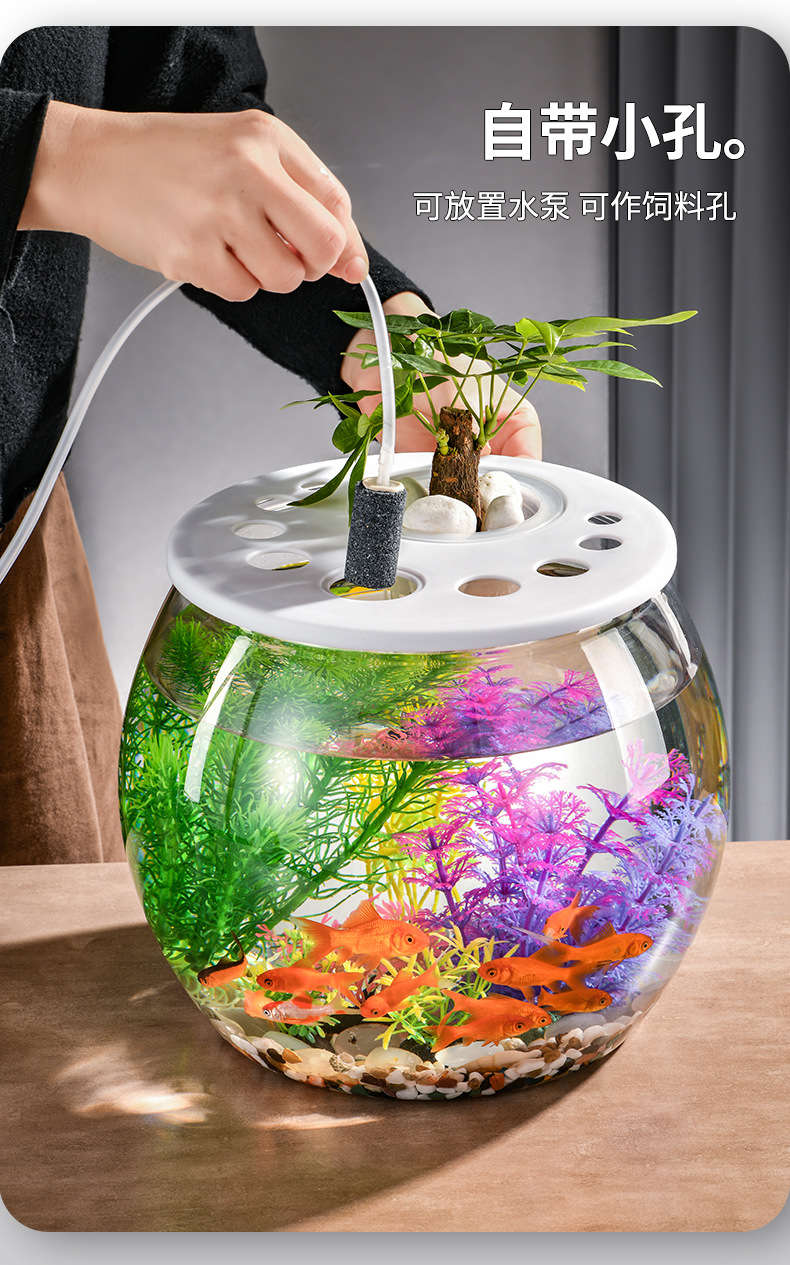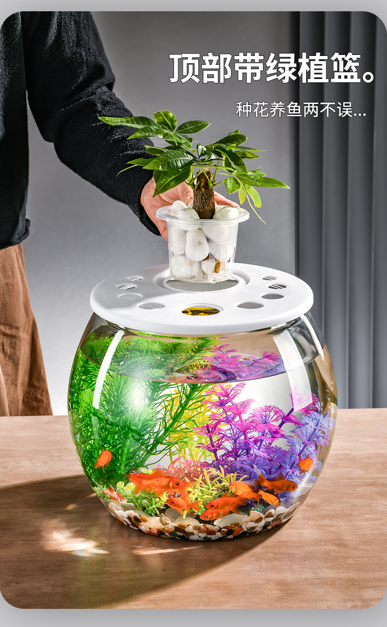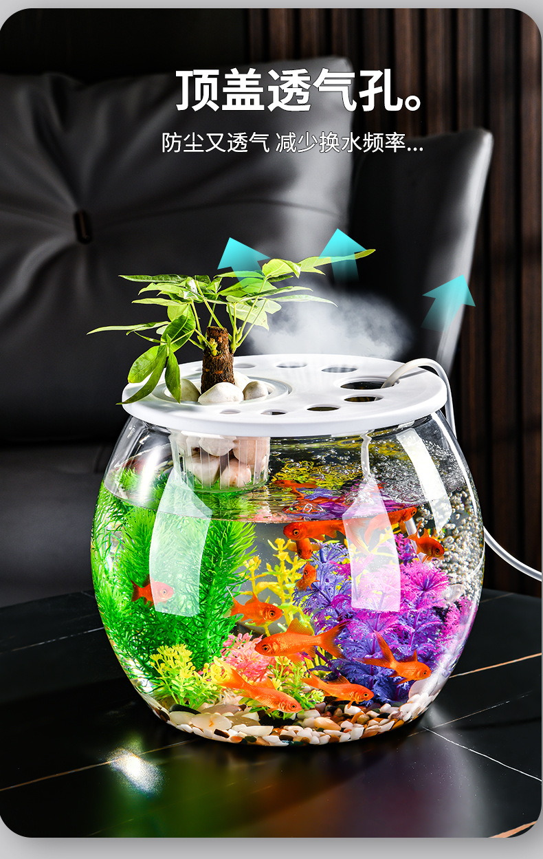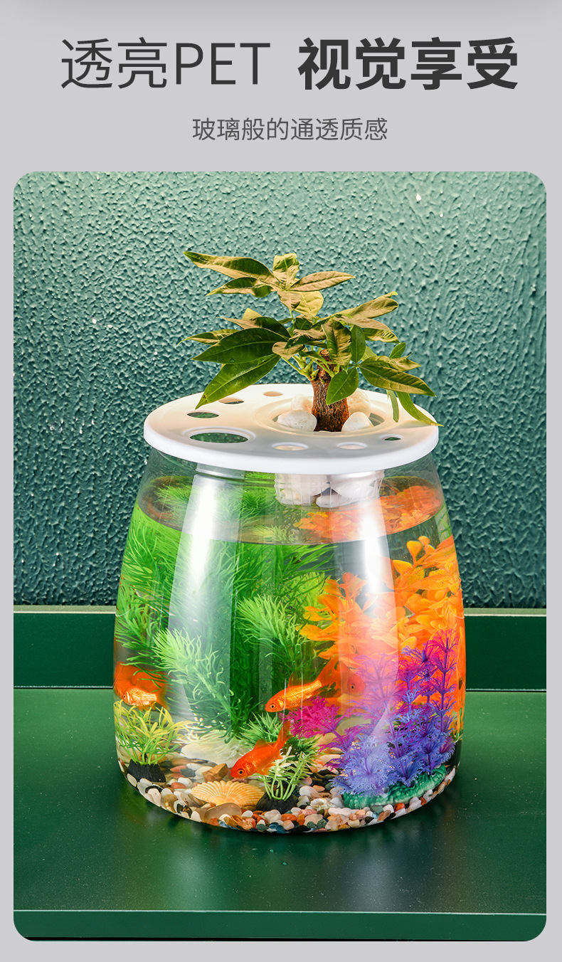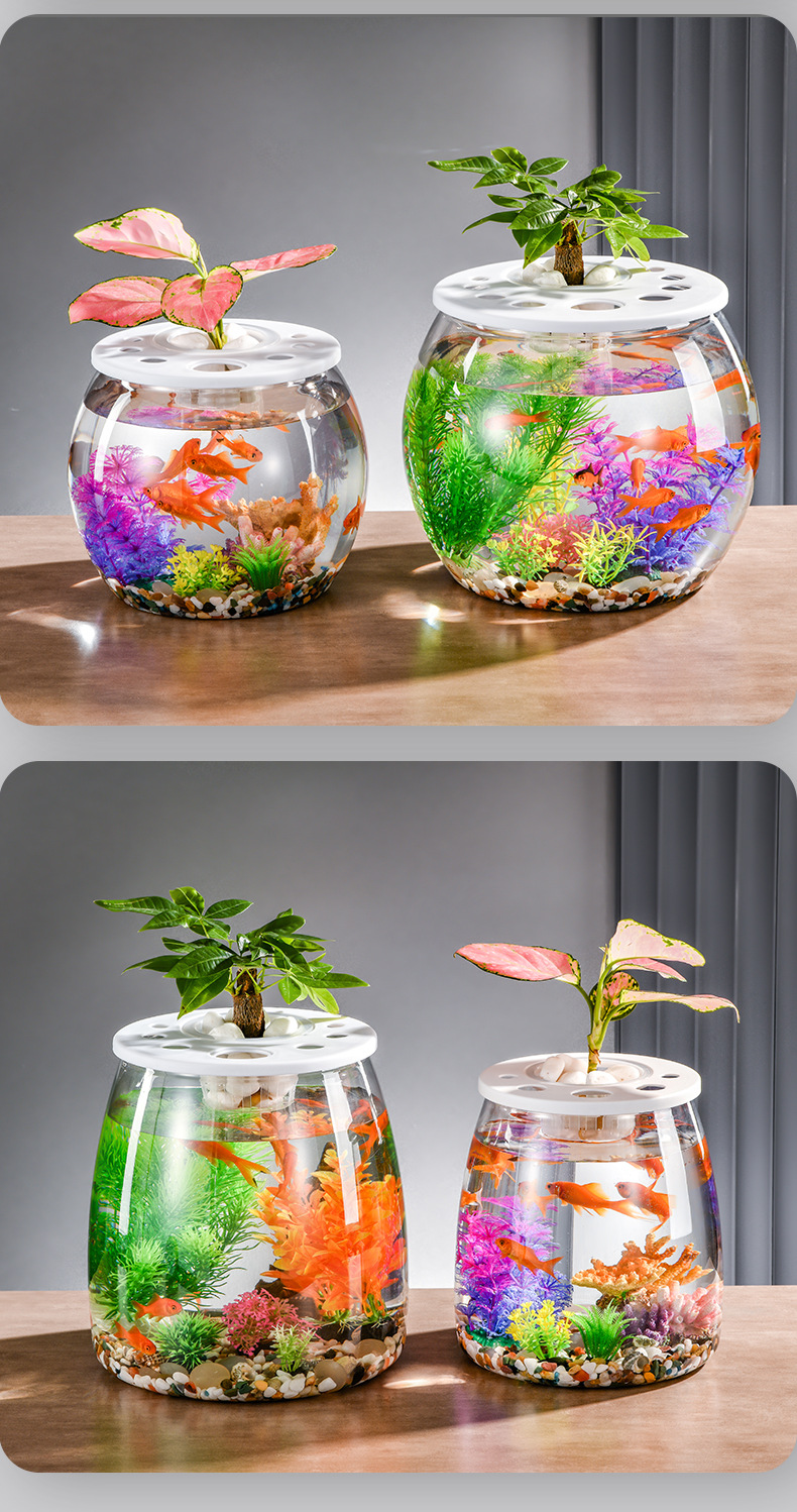 뚜껑이 있는 둥근 플라스틱 작은 어항, 가정 거실용 투명, 소형 데스크탑 투명 생태 탱크, 마이크로 조경 수족관스토어 가기