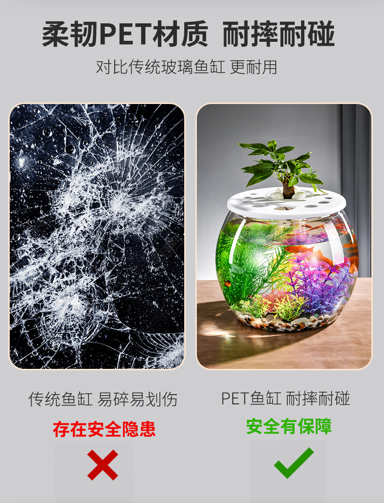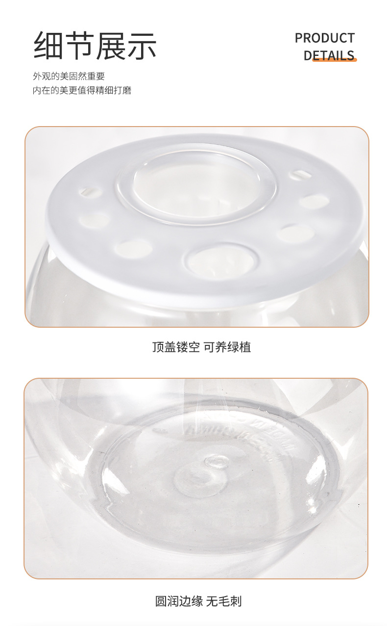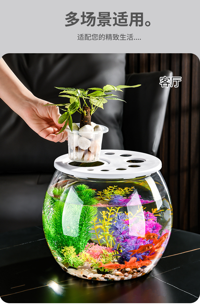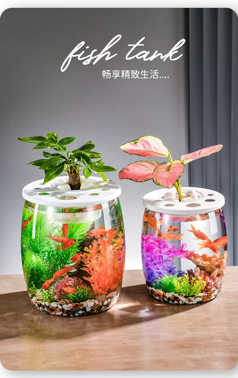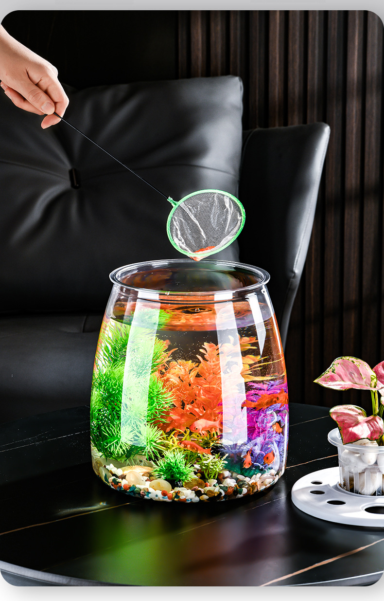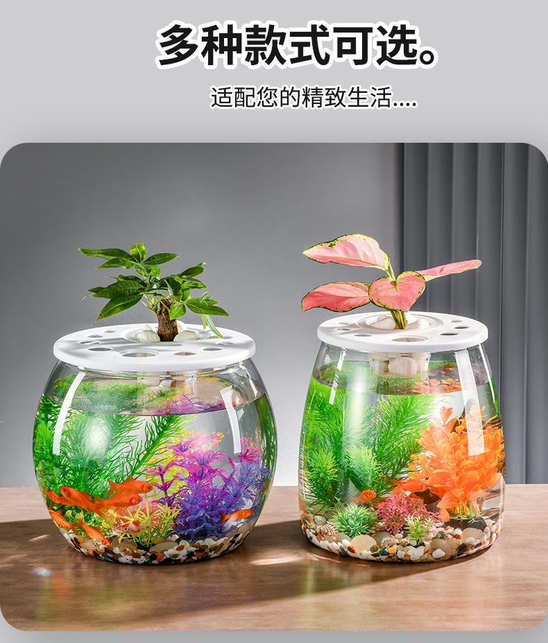 뚜껑이 있는 둥근 플라스틱 작은 어항, 가정 거실용 투명, 소형 데스크탑 투명 생태 탱크, 마이크로 조경 수족관스토어 가기