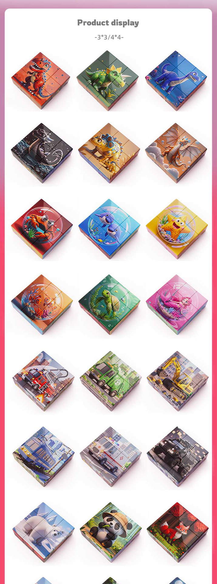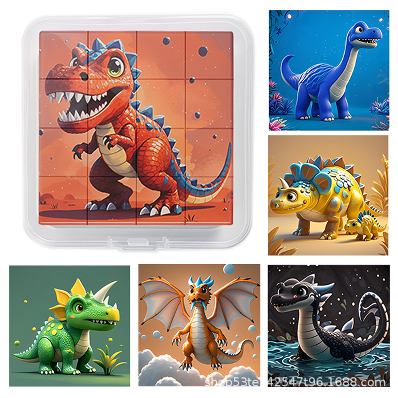 풀 박스 3D 스타일 자기 퍼즐 어린이 교육 장난감 공룡 자동차 동물 패턴 PP 보관 상자 상자 포장스토어 가기
