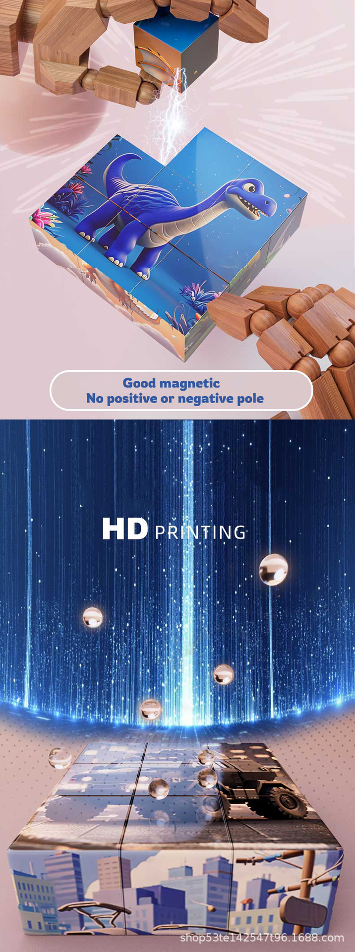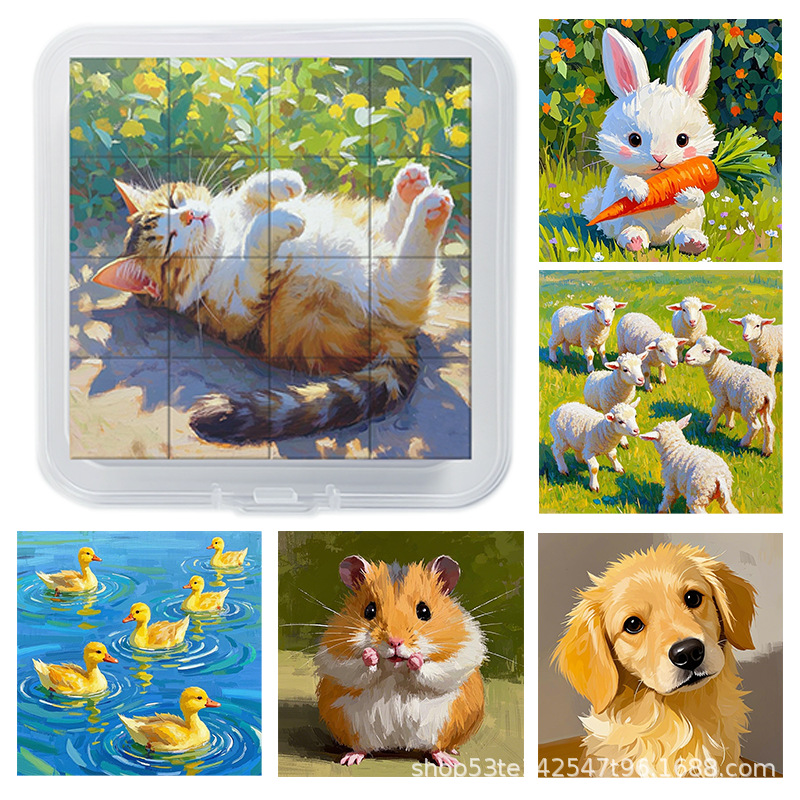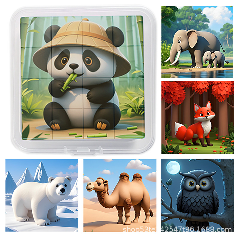 풀 박스 3D 스타일 자기 퍼즐 어린이 교육 장난감 공룡 자동차 동물 패턴 PP 보관 상자 상자 포장