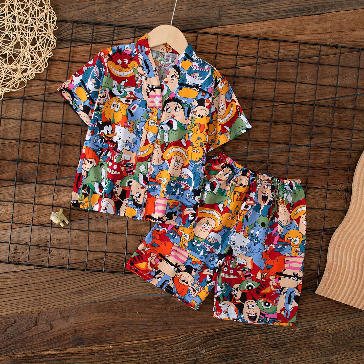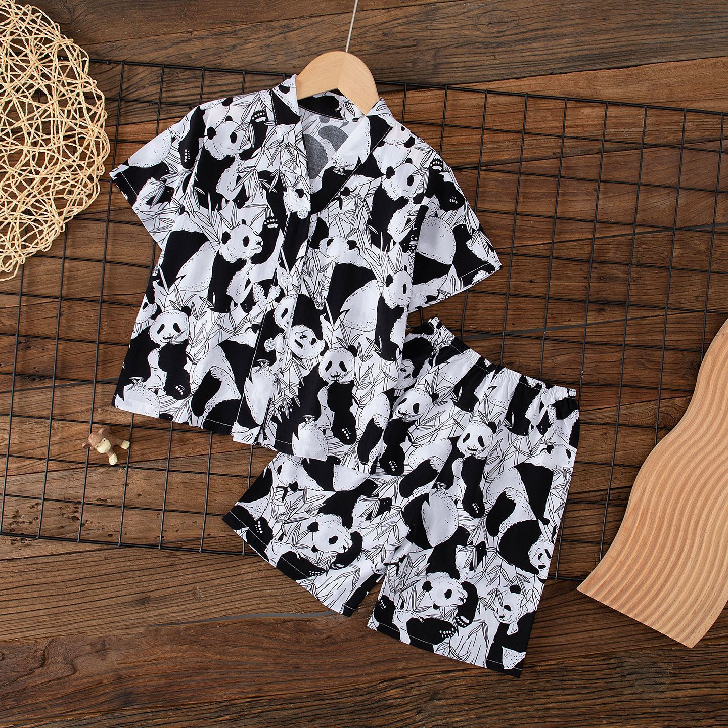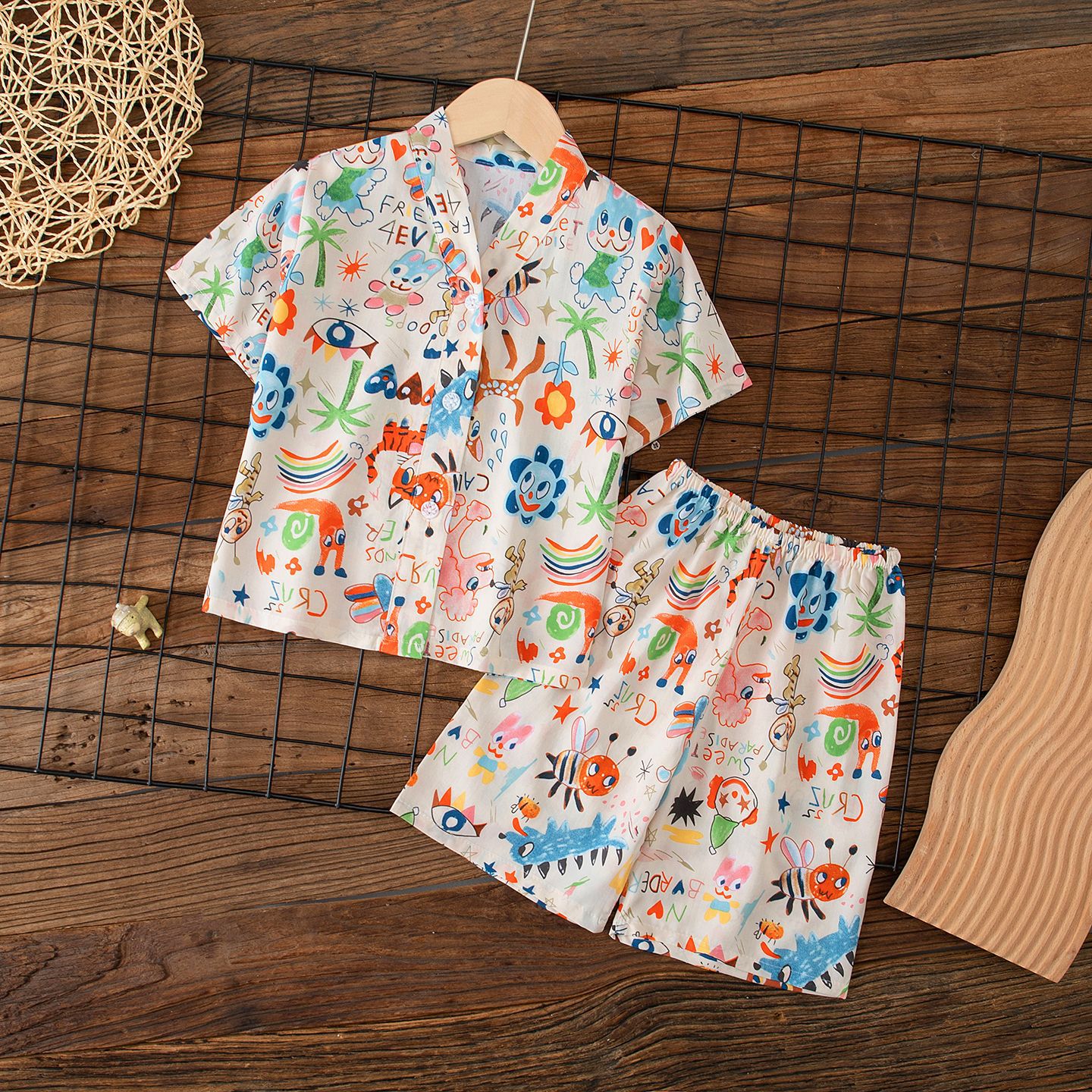 여름 어린이 카디건 잠옷 반팔 면 실크 중대형 어린이 소년 소녀 에어컨 의류 가정 의류 부모-자식 얇은 스타일