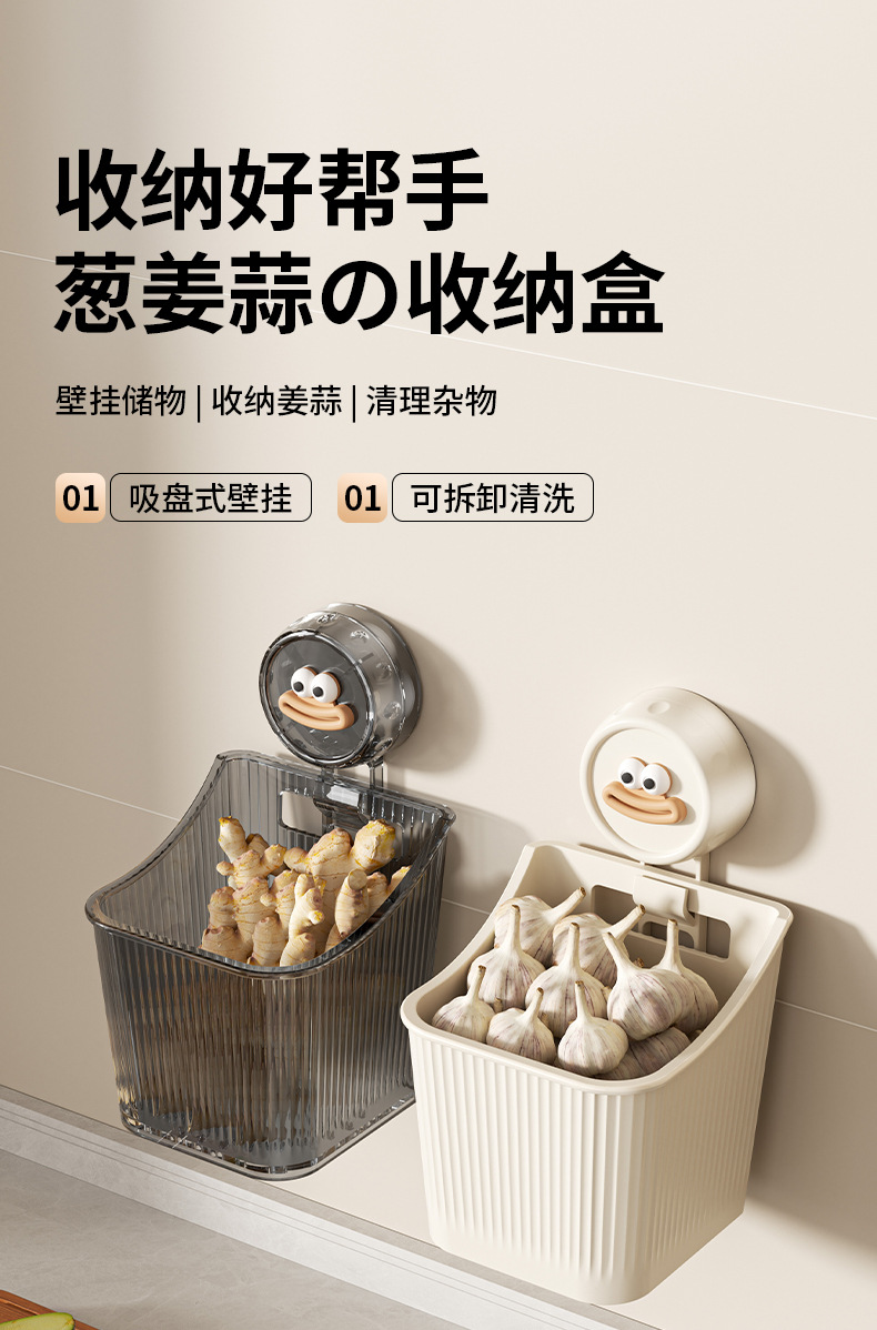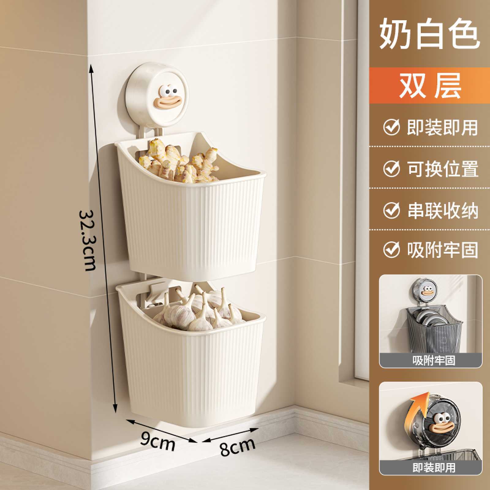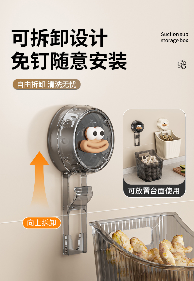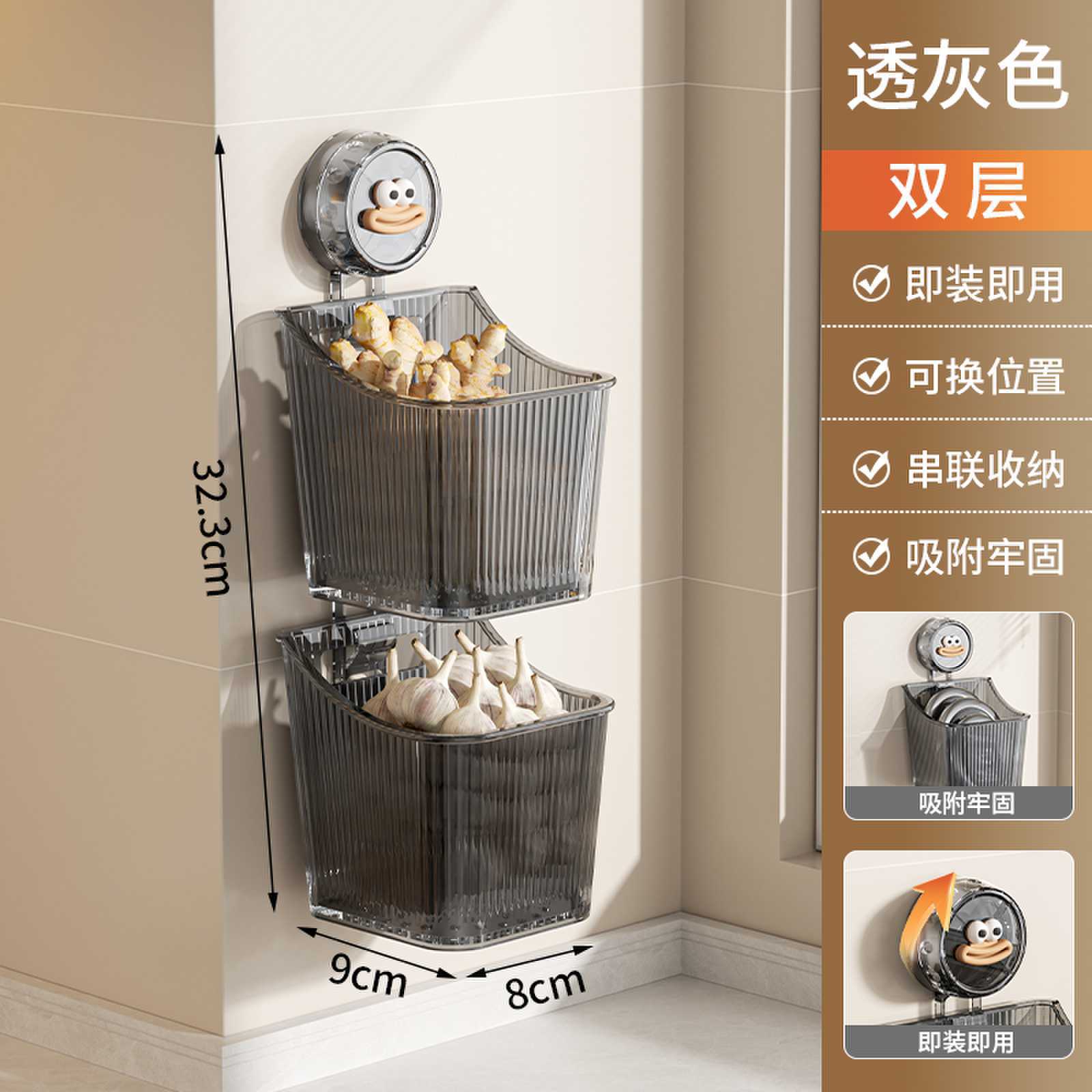 주방 흡입컵 양파, 생강, 마늘 보관함, 벽걸이형 생강 마늘 걸이 바구니, 펀치 없는 마늘 보관함